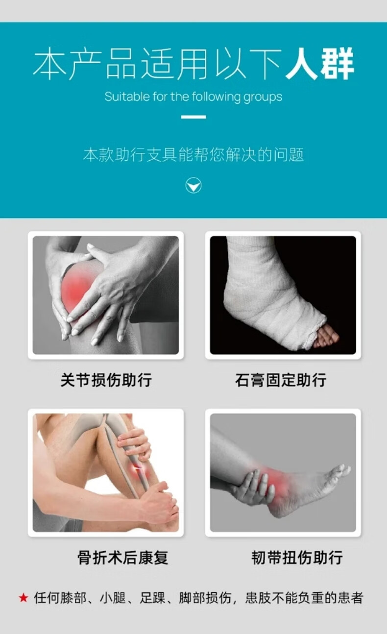 博云瑞医用拐杖助力行走器小腿骨折助行器脚踝脚伤康复训练器代步神器 黑色