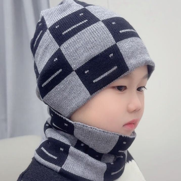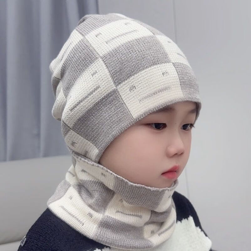 迪士尼(Disney)2-12儿童护耳帽秋冬男童帽子围巾2件套男孩帅气套头帽超酷高品质 灰色【帽子+脖套】 适用3-12岁儿童弹性很好