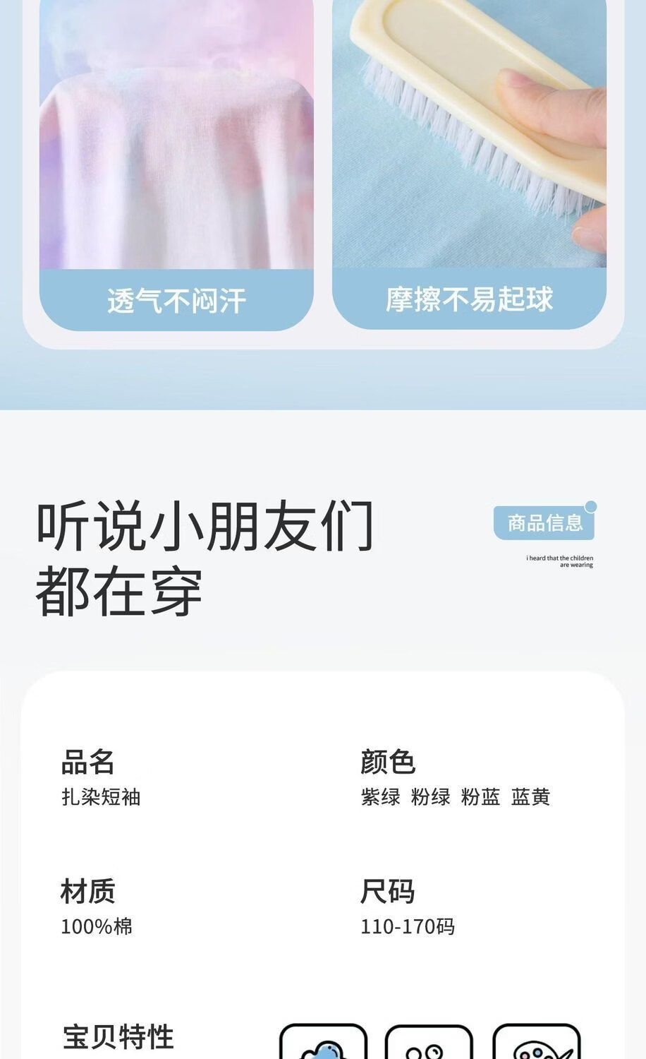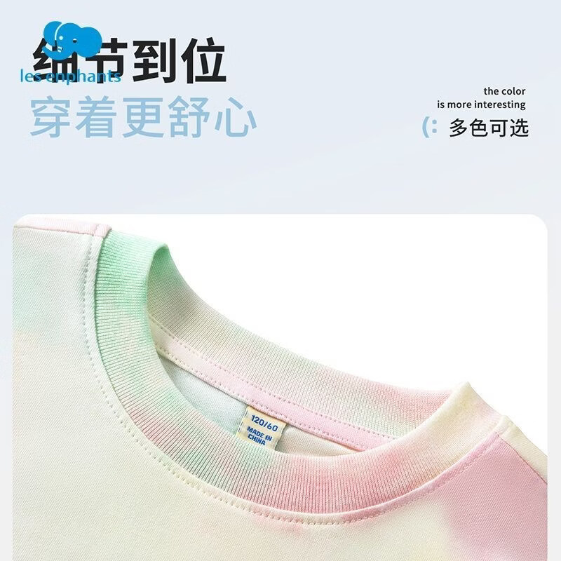 唐狮童装扎染短袖女童夏季款儿童夏款纯棉t恤扎染非遗上衣大童亲子k 粉蓝100%棉 110