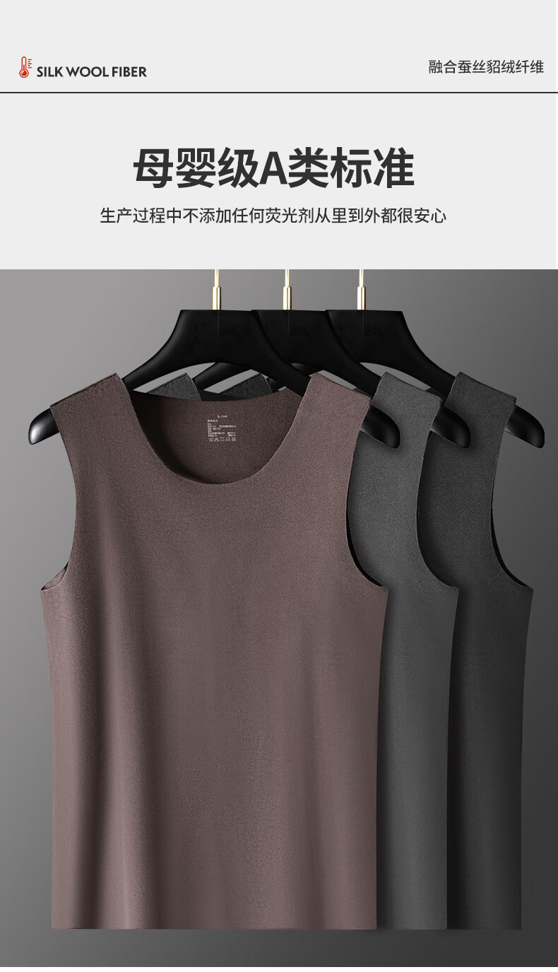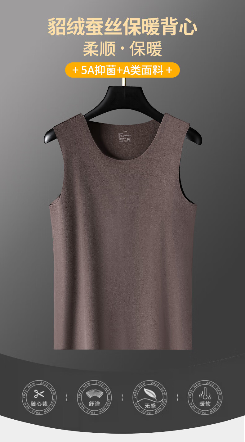 猫人(MiiOW)貂绒蚕丝无痕保暖背心男士加厚秋冬季内穿打底衫德绒琐温坎肩上衣 黑色套装 XXXL (175-200斤)
