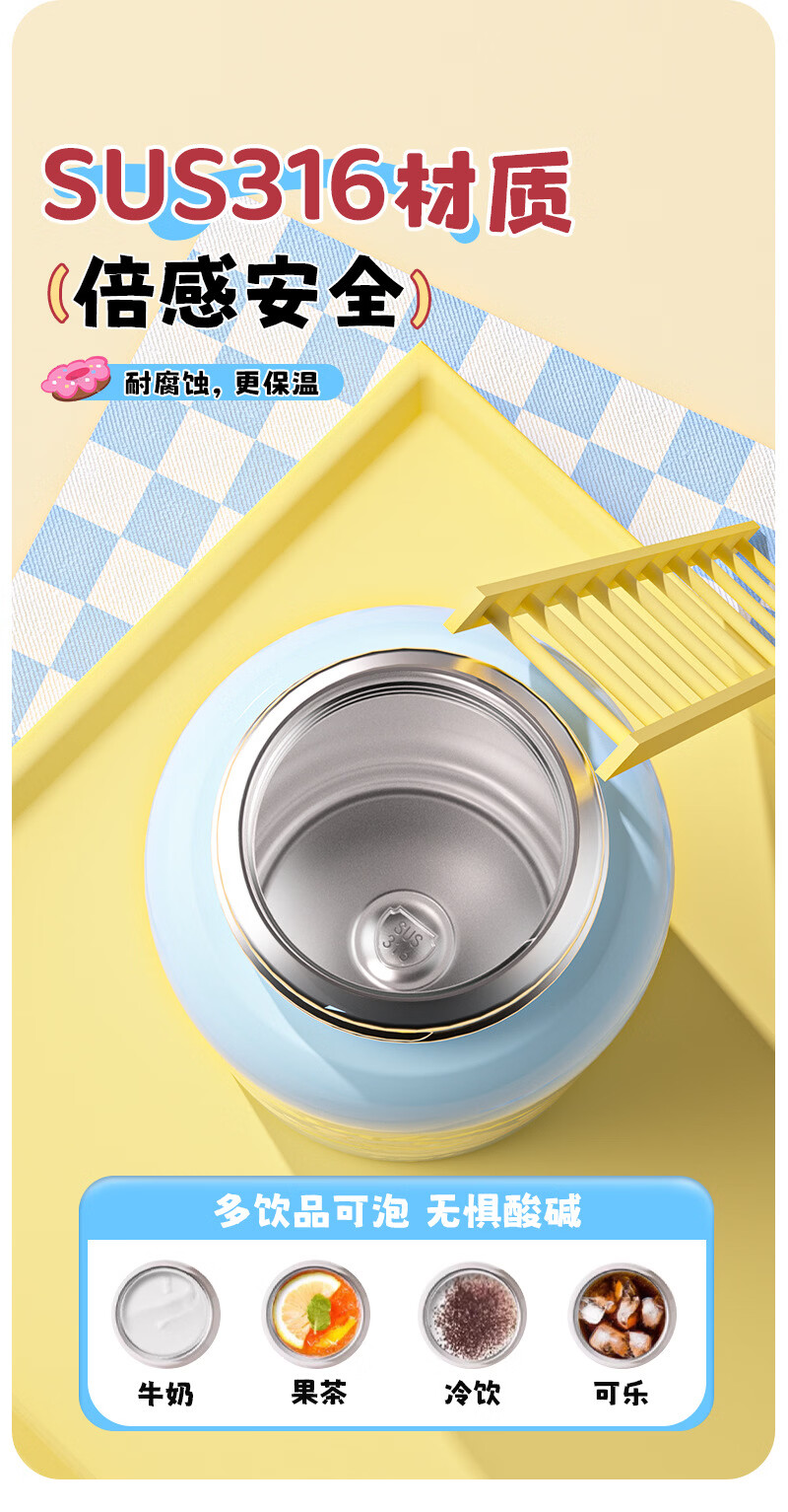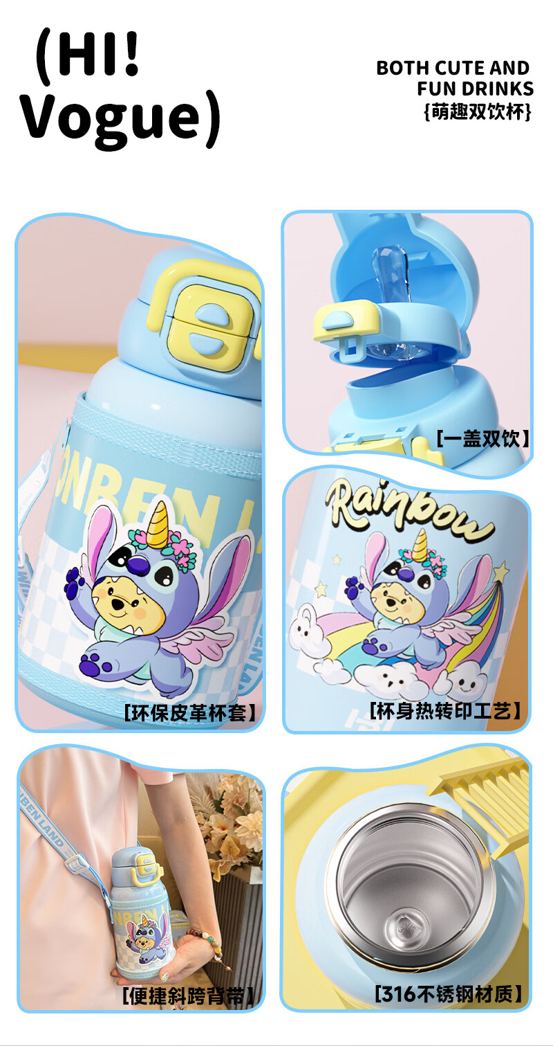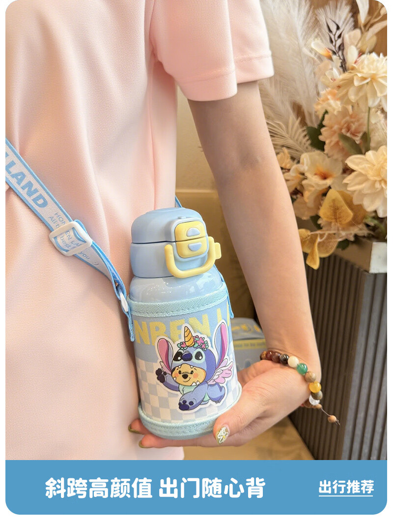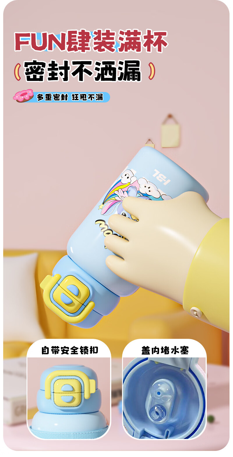 可爱吸管弹跳杯保温杯双层不锈钢女生高颜值水杯便携学生斜挎杯子 粉色(玻璃内胆 450ml(送3D贴+背肩带