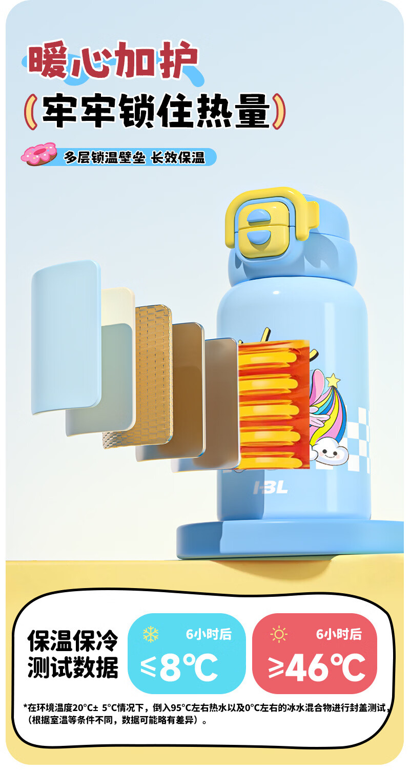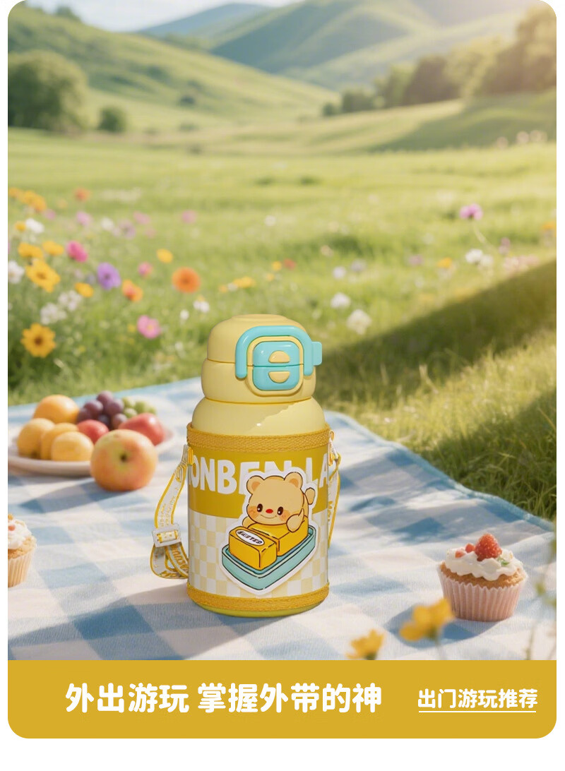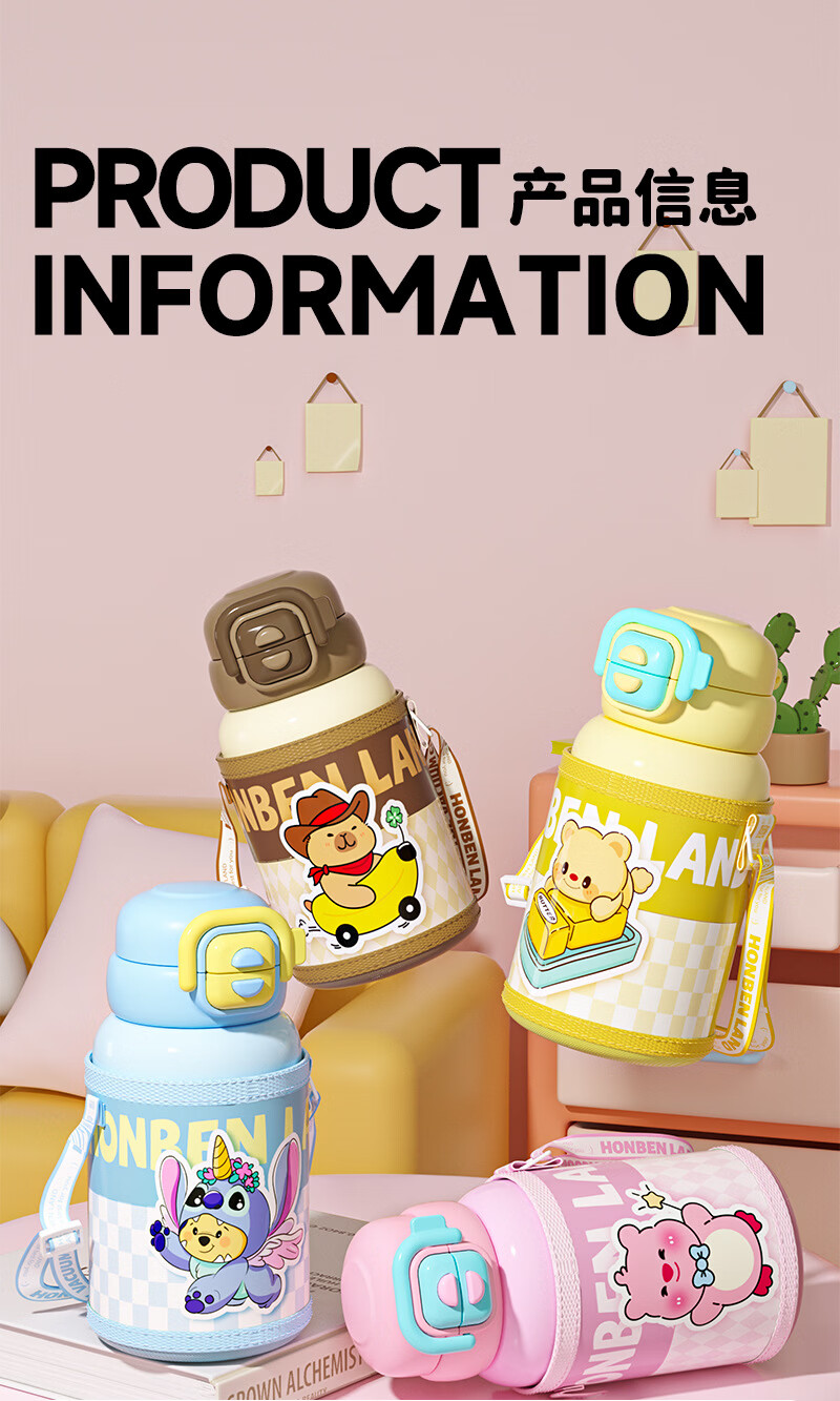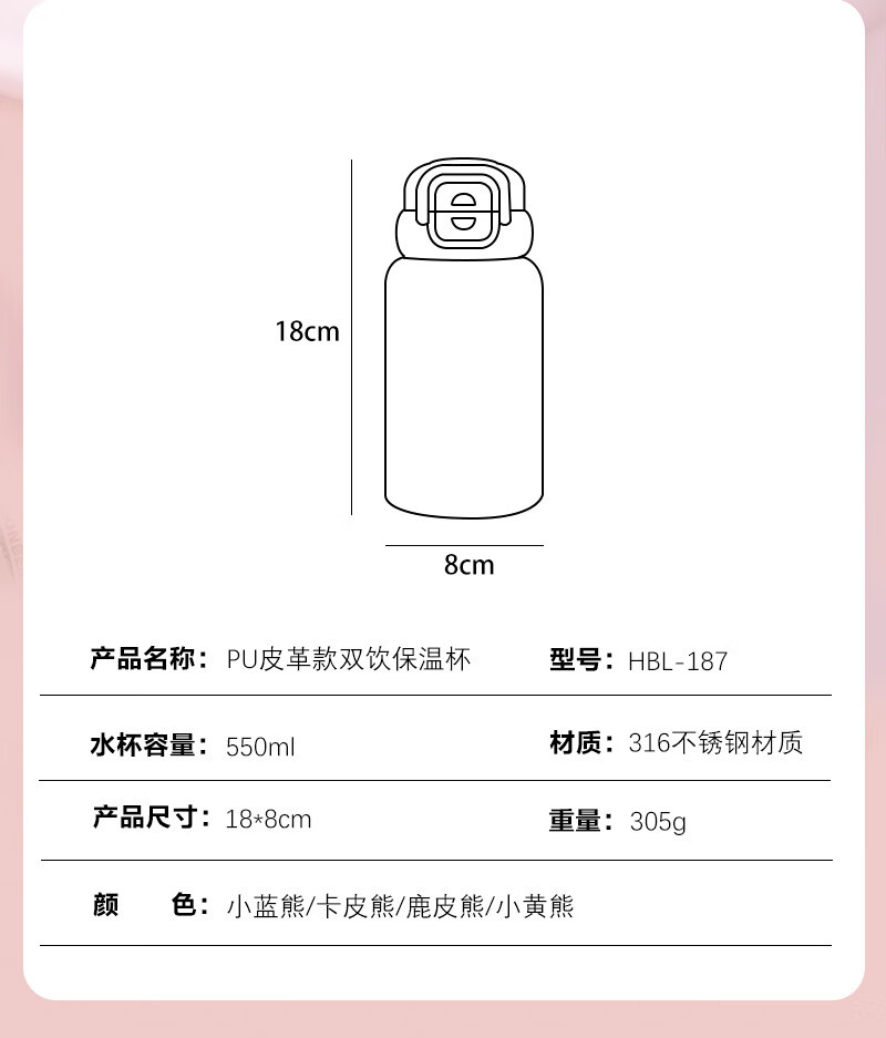 可爱吸管弹跳杯保温杯双层不锈钢女生高颜值水杯便携学生斜挎杯子 粉色(玻璃内胆 450ml(送3D贴+背肩带
