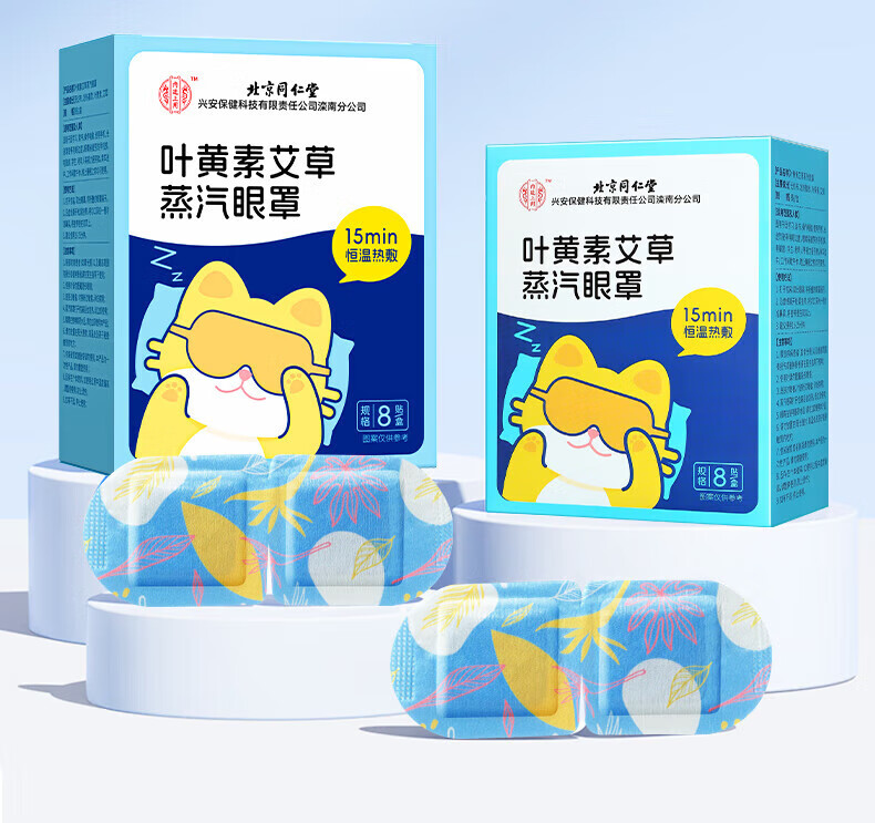 内廷上用北京同仁堂叶黄素艾草蒸汽眼罩儿童热敷眼睛助眠缓解疲劳男女通用 8贴/1盒