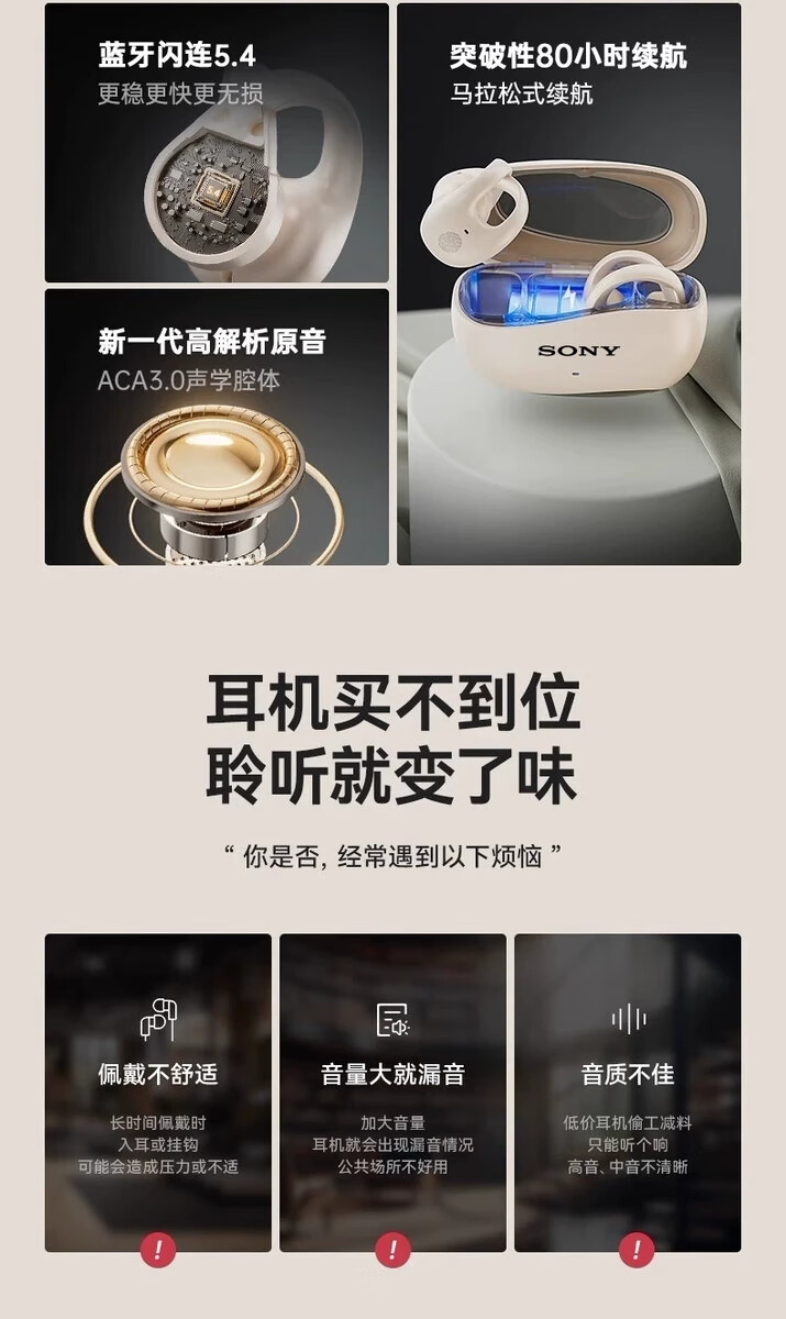 SONY AXSM蓝牙耳机耳夹式降噪运动重低音立体声户外跑步游戏无线耳机 黑色