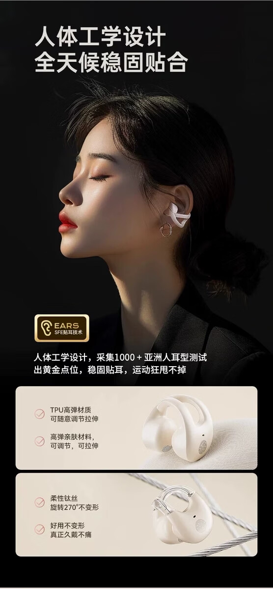 宇甸【柏林之声 顶配2025最新款】蓝牙耳机挂耳麦传导开放式适用苹果安卓无线运动降噪骑行跑步长续航 青春肤【官新顶配+超长续航】 【9D杜比音效-蓝牙5.4降噪】