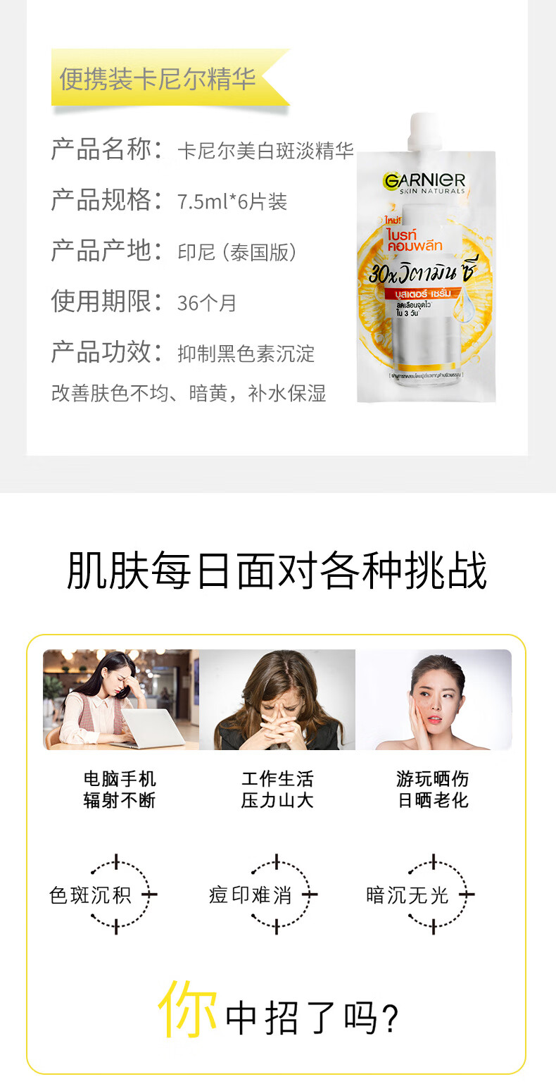 芃雲卡尼尔美白精华液泰国377嫩肤全效瞬白烟酰胺vc毛孔收缩提亮痘印 1瓶
