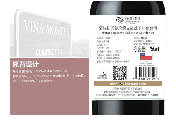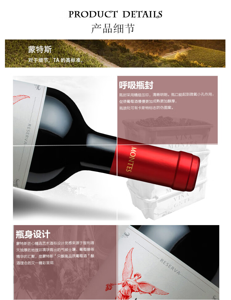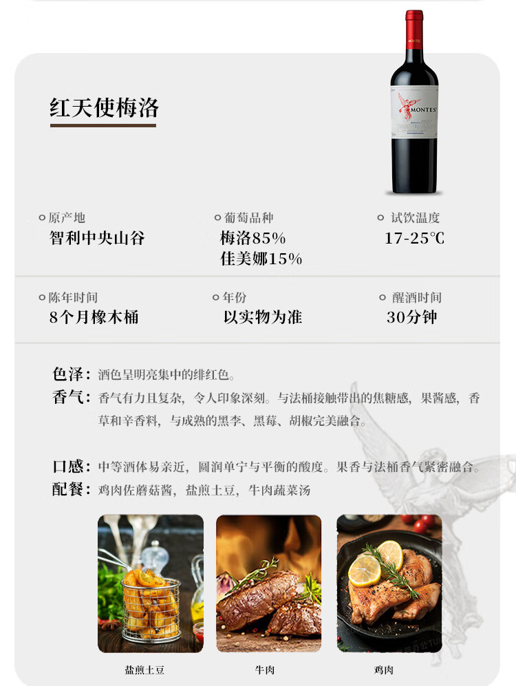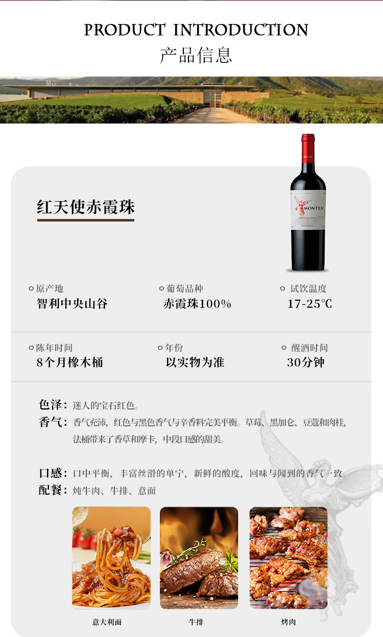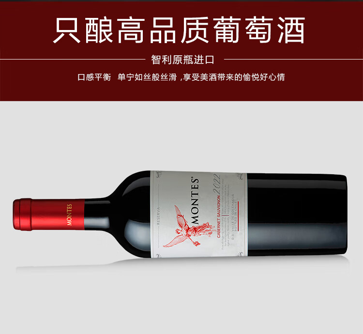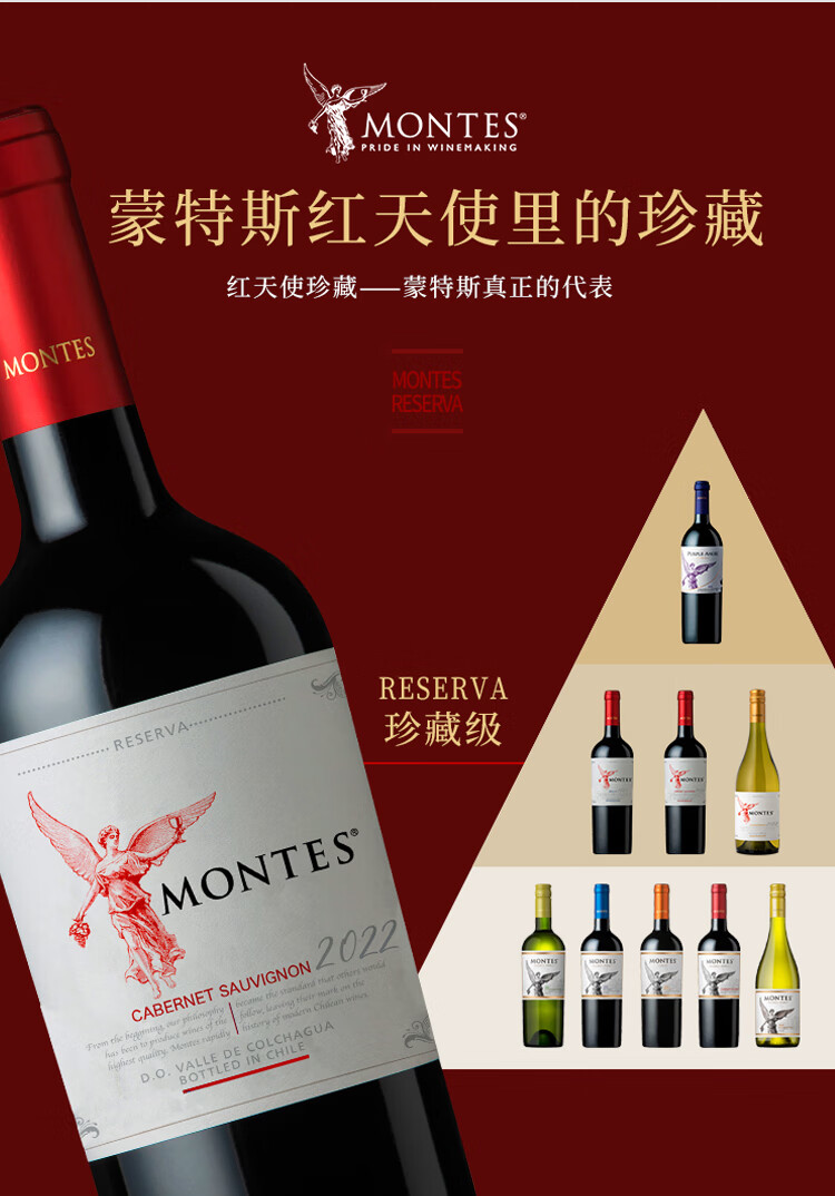 蒙特斯原瓶进口红天使珍藏赤霞珠干红葡萄酒 智利红酒750ml单支装 红天使珍藏赤霞珠(单支装)