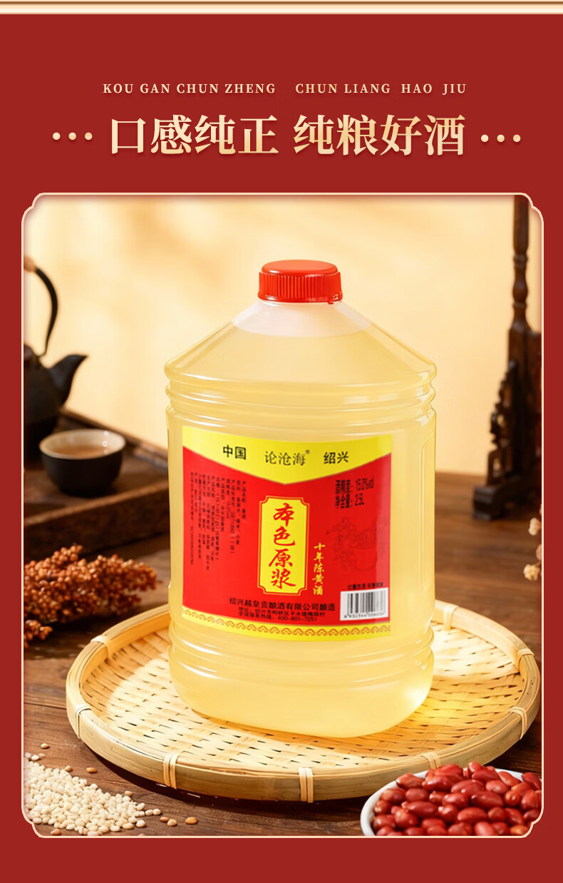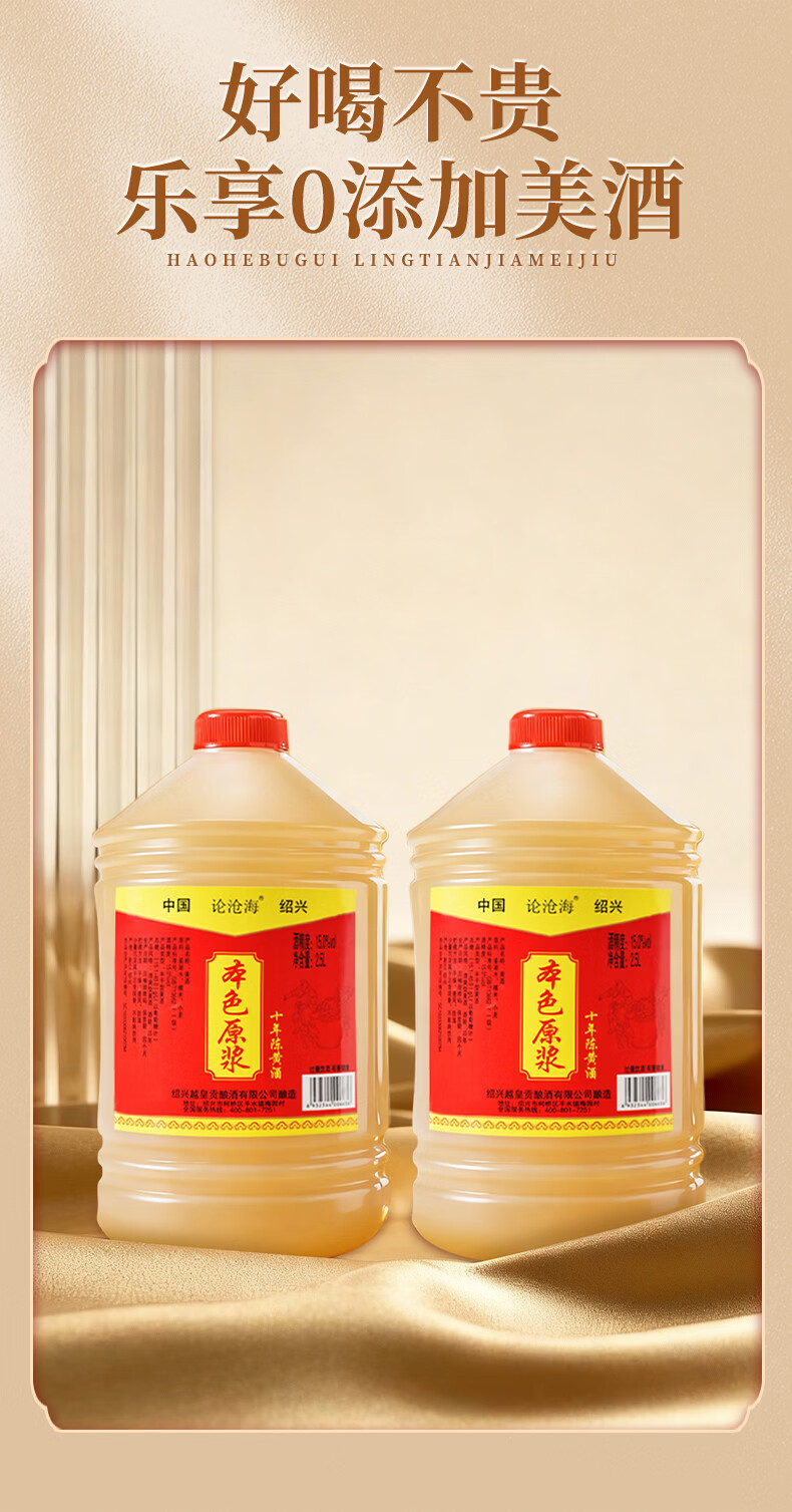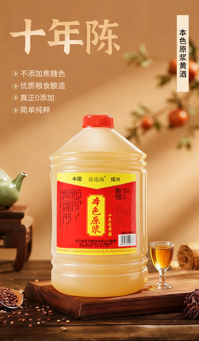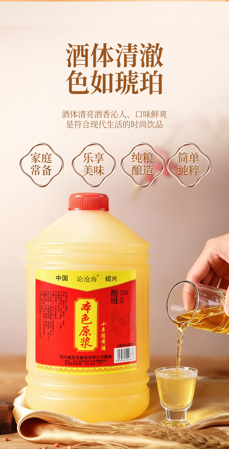 论沧海10年陈绍兴本色黄酒无添加花雕酒2500ML半干型加饭酒厨房用酒5斤 2.5L*1桶【5年陈】