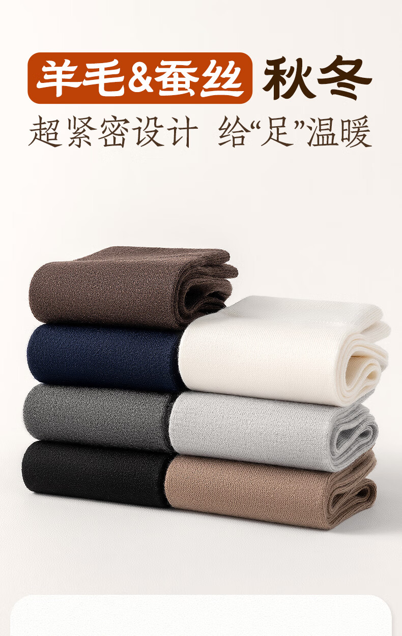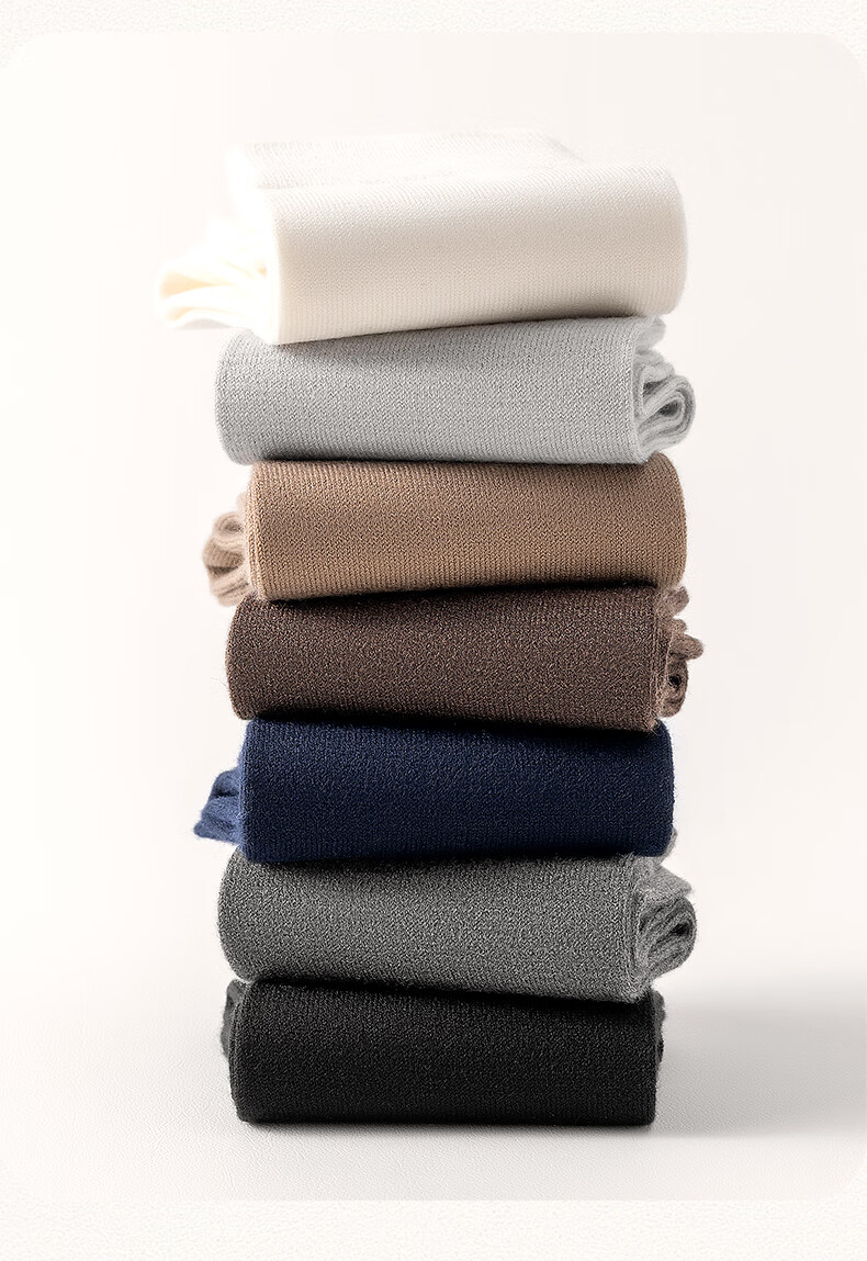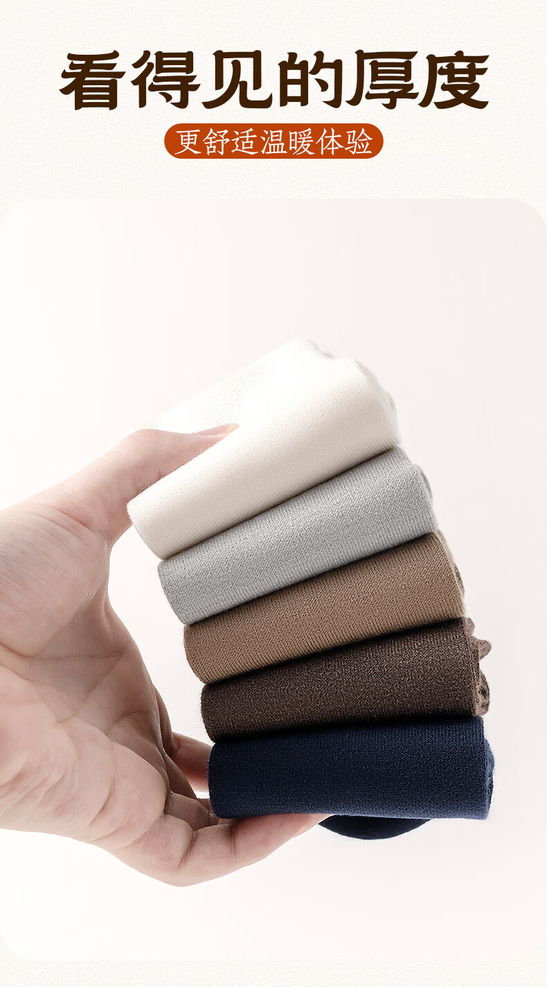罗蒙羊毛袜子男款秋冬季中筒防寒加绒加厚保暖毛绒长筒袜男士高筒长袜 LM-1262平板羊毛袜-雪粉米 10双 均码 (适合38-44码)