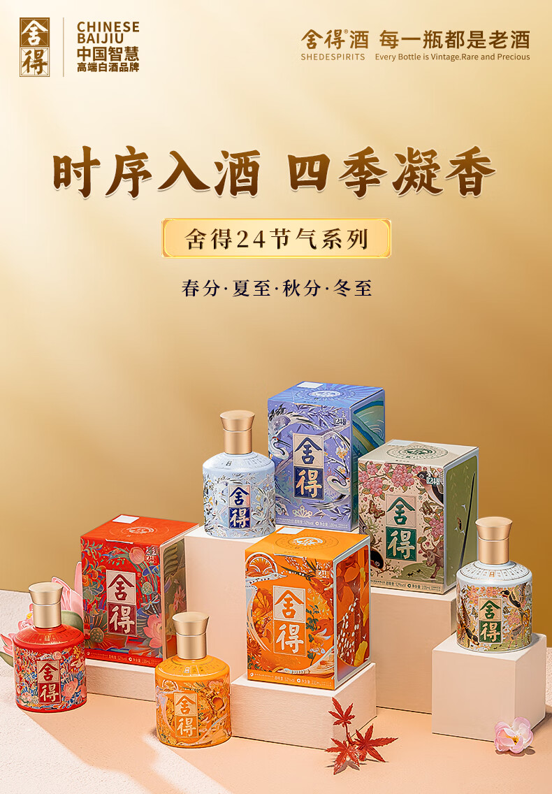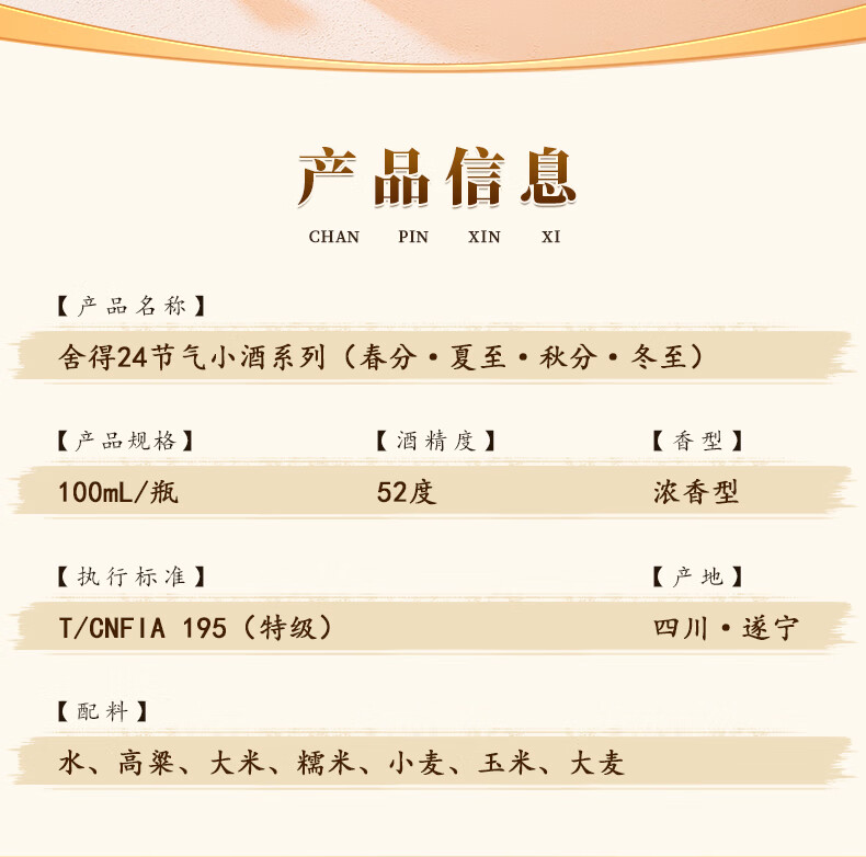 舍得 24节气系列小酒 浓香型白酒 52度 100ml 52度 100mL 4瓶 组合装