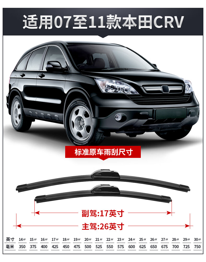 适用于东风本田CRV雨刮器原装10老款2010原厂胶条09年08-07车11汽车前后窗雨刷器片 04-05-06款 CR-V【前雨刮+后雨刮】