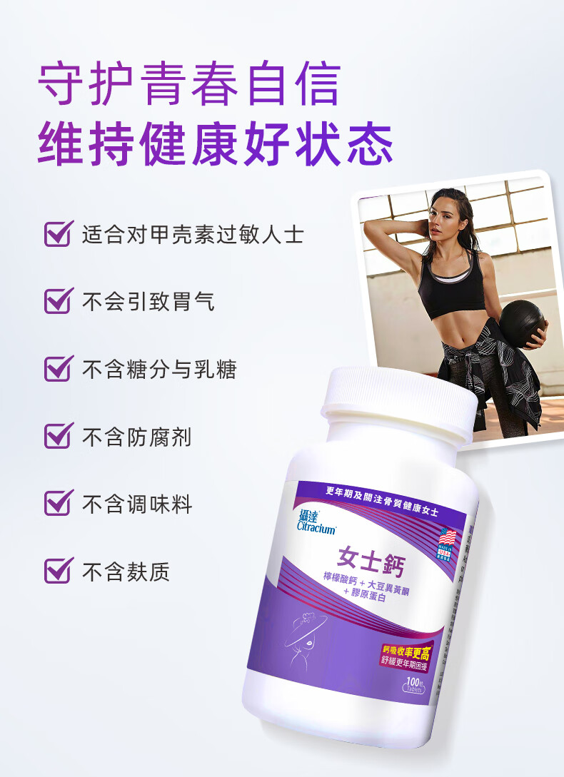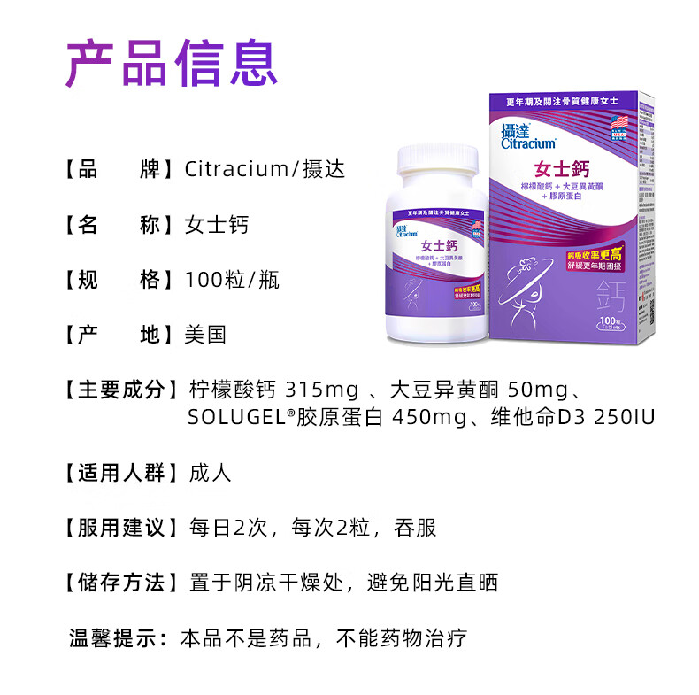 摄达摄达女士钙舒缓更年期困扰骨质疏松润滑关节补充营养美国进口钙片 摄达女士钙 100粒/盒