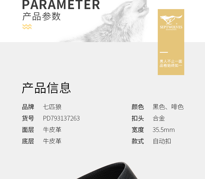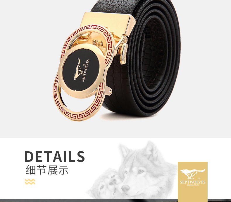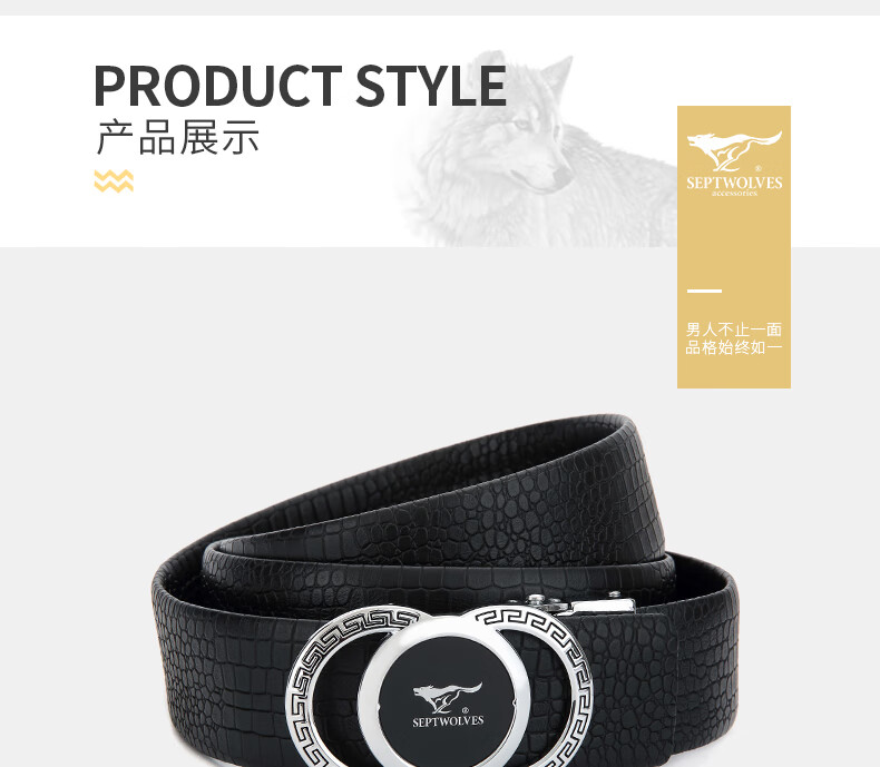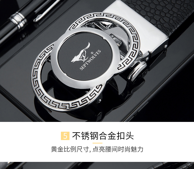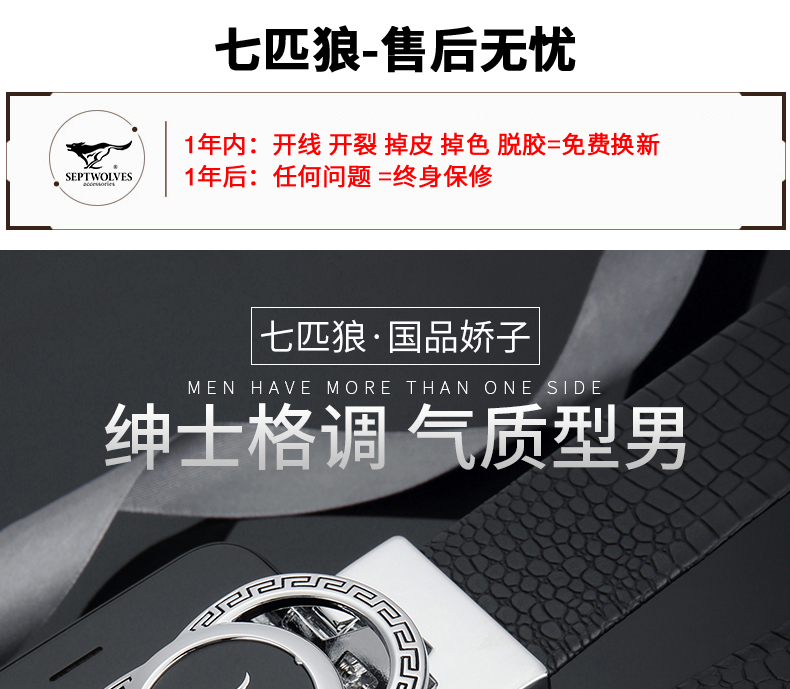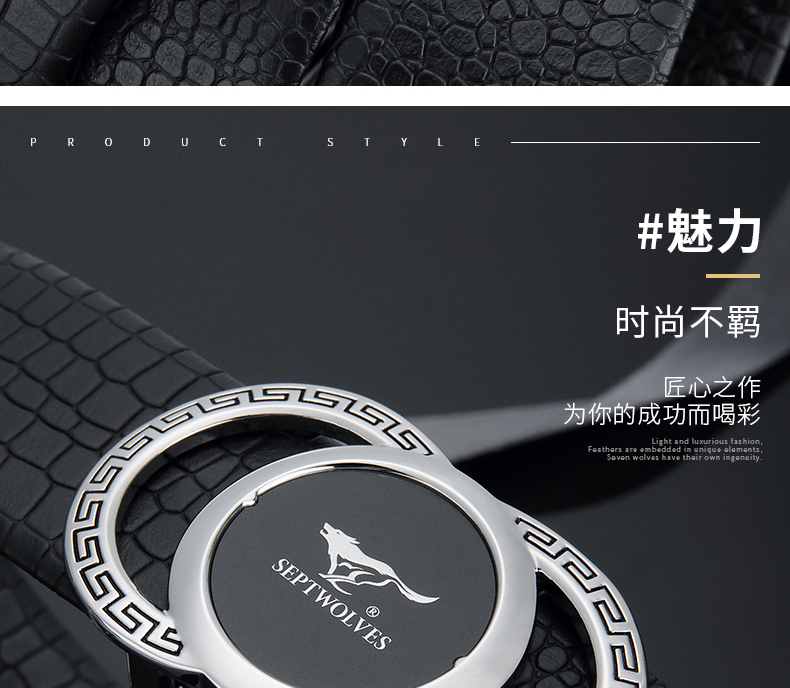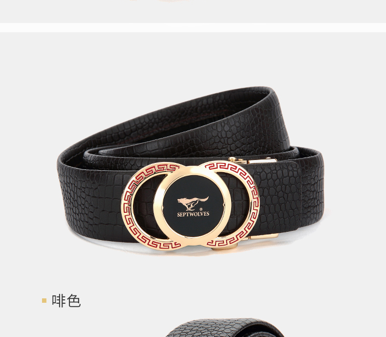 七匹狼男士皮带男潮纯牛皮年轻人真皮情人节鳄鱼2020新款腰带 啡色 125cm