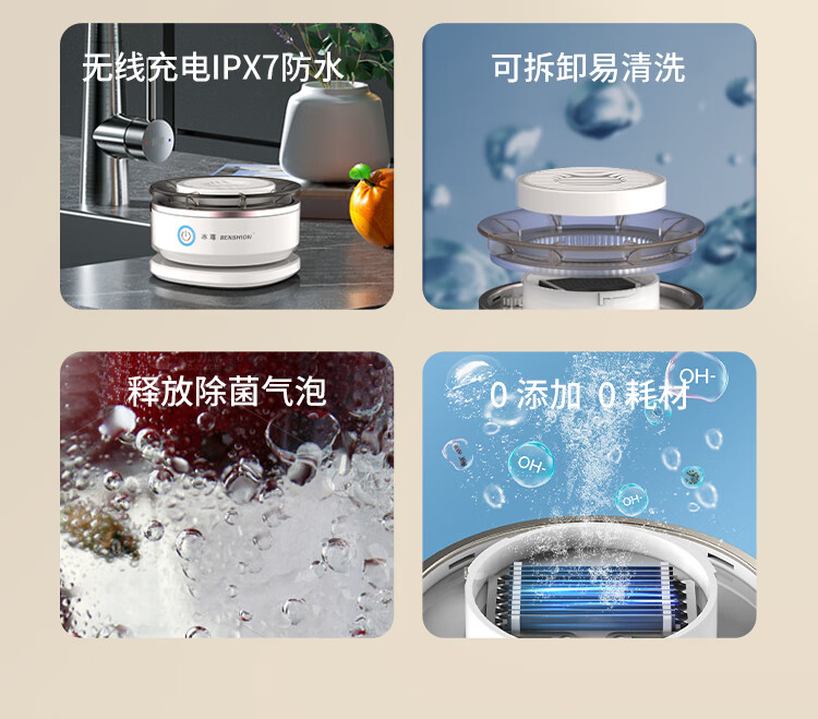 冰尊(BENSHION)果蔬清洗机家用无线旋转洗菜机除菌99%食材净化机果蔬解毒机净化器 机器标配