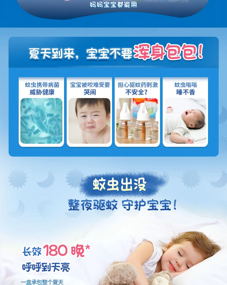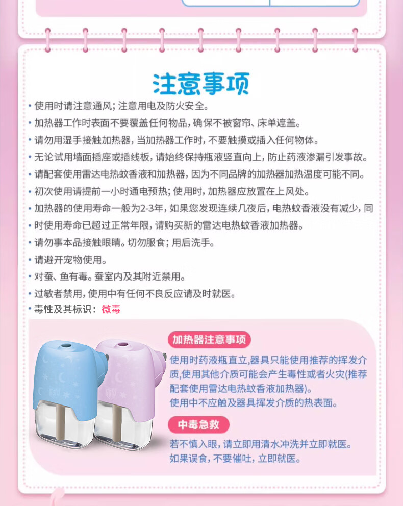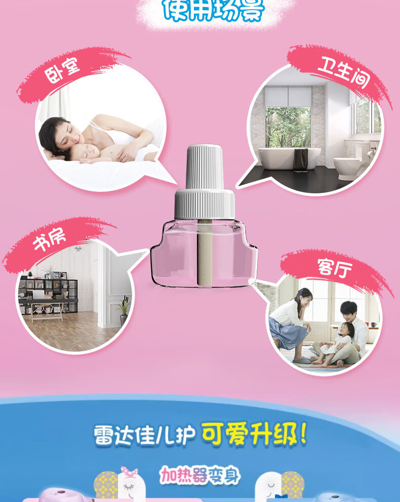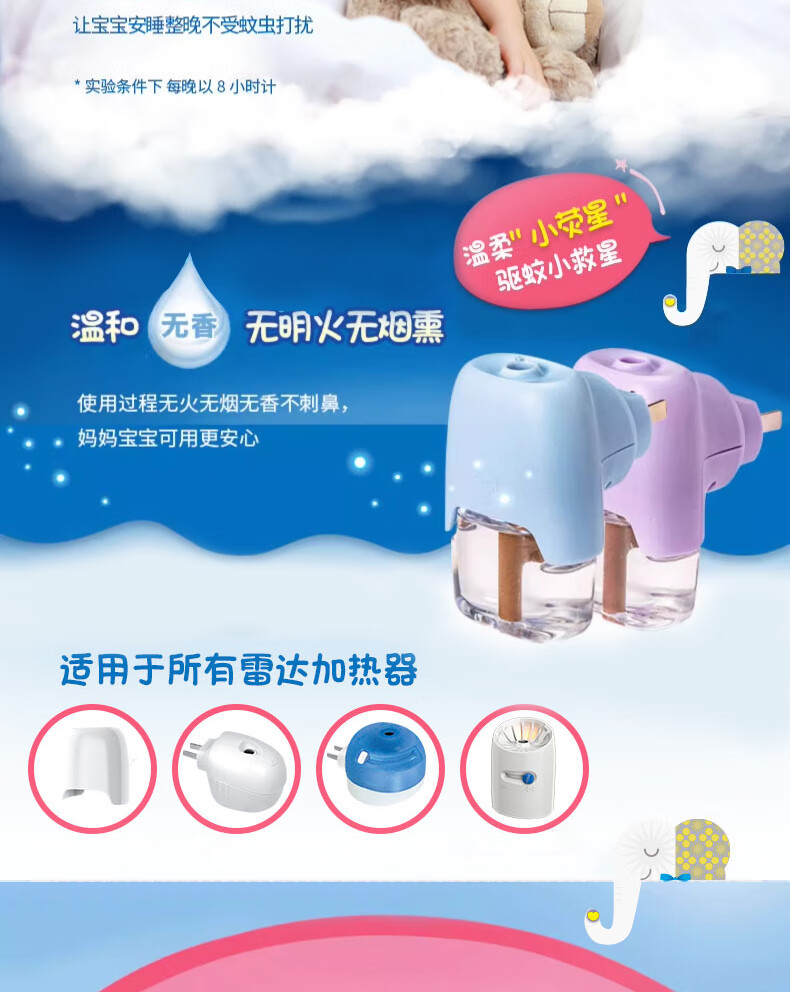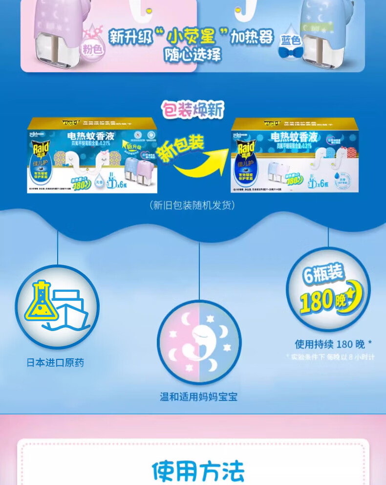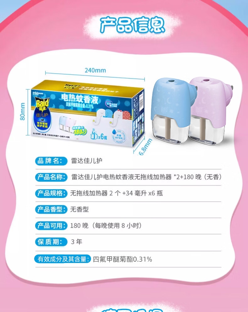雷达(Raid)佳儿护电热蚊香液240晚6瓶补充液+2加热器 无香型 驱蚊液驱蚊用品