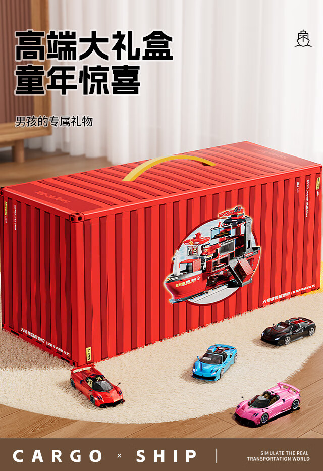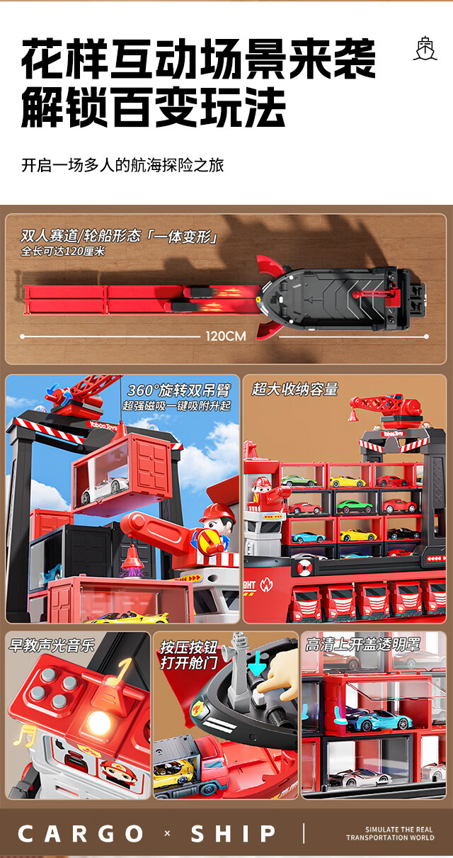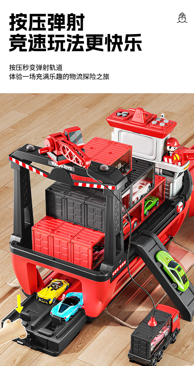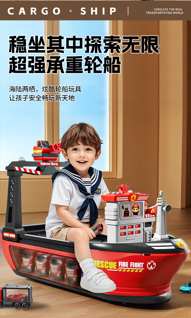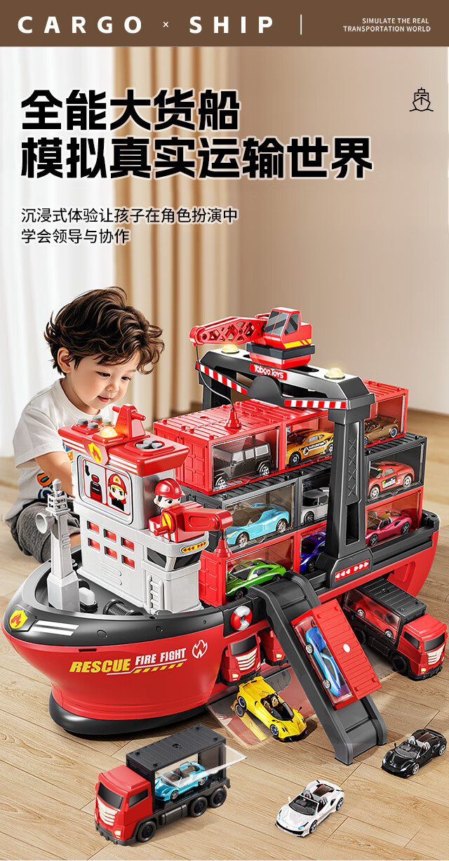 班迪萌(BANDIMENG)儿童男孩玩具车3-6岁消防车超大号轮船汽车集装箱轨道车生日礼物 消防船【14车+14集装箱+礼盒】 儿童玩具3-6-8-10岁生日礼物