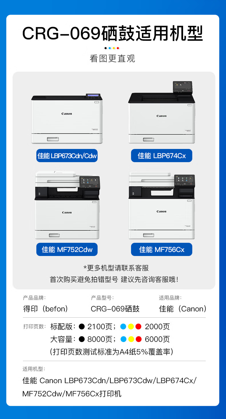 得印CRG-069硒鼓适用佳能mf752cdw硒鼓 LBP673Cdn LBP673Cdw 674Cx mf756Cx打印机硒鼓 四色套装标准版带芯片