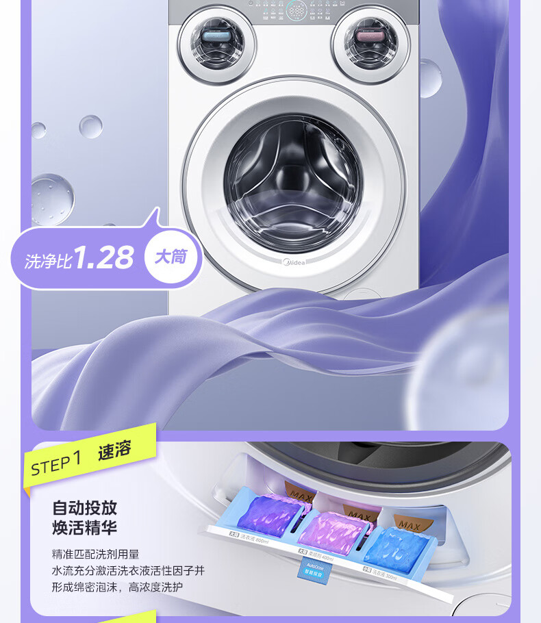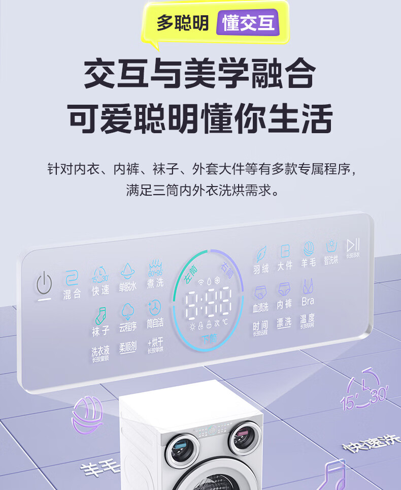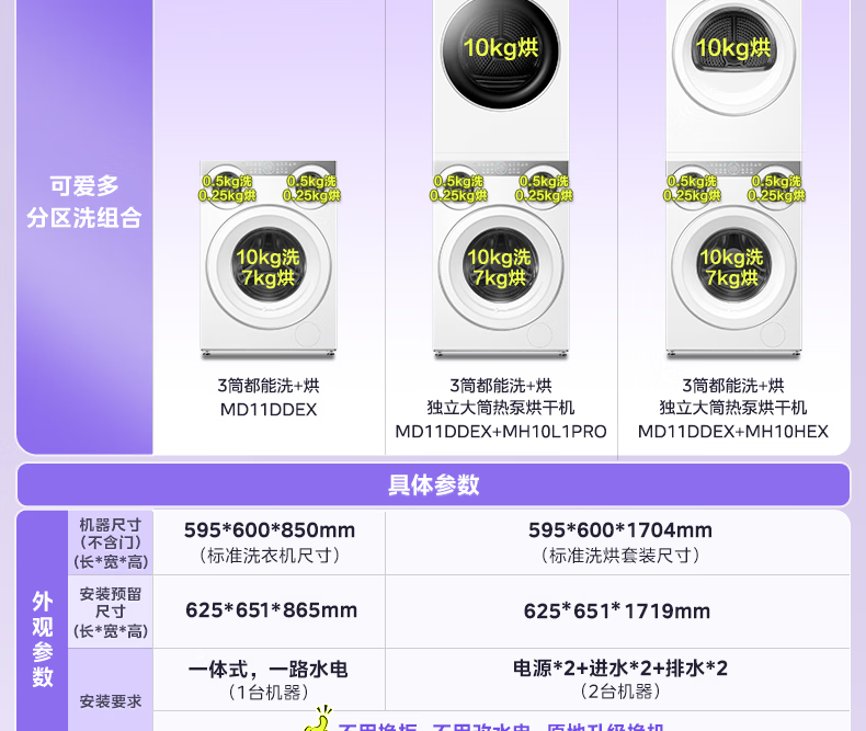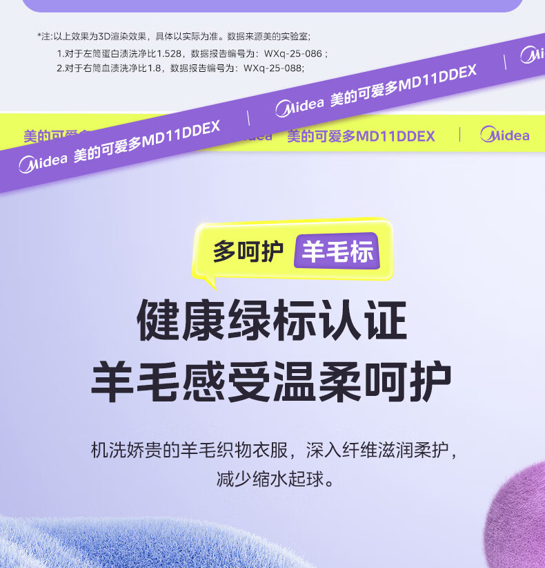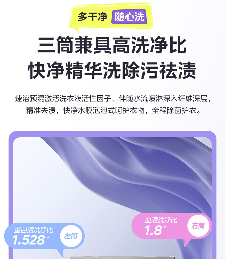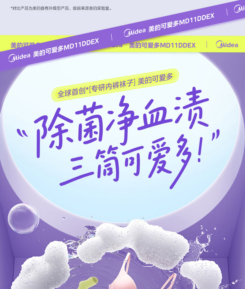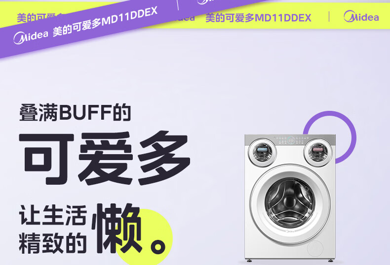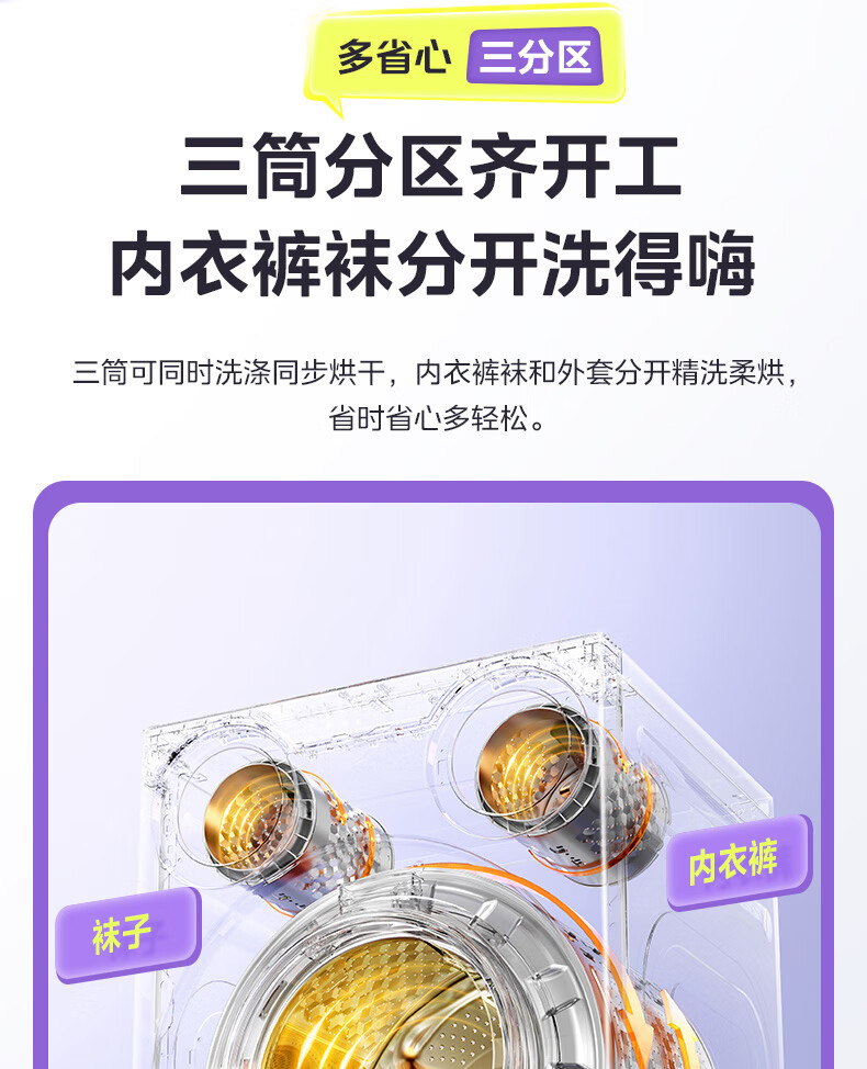 美的(Midea)三筒洗衣机洗烘一体全自动分区洗除菌净血渍三桶智能投放850mm标准高度国家补贴20% 【可爱多MD11DDEX】