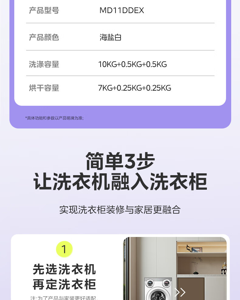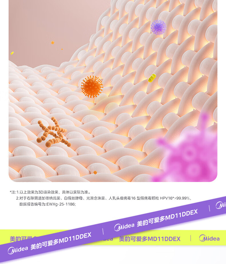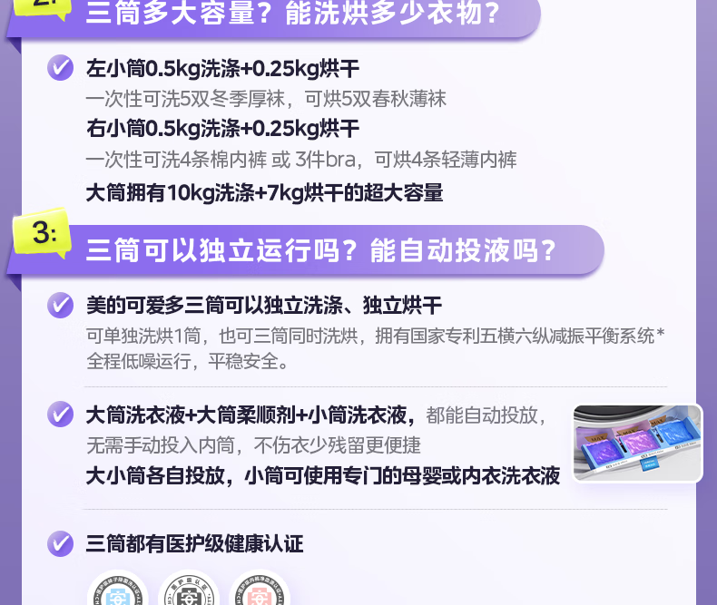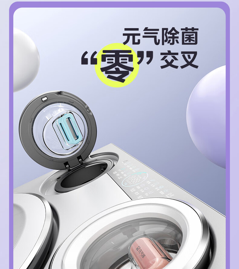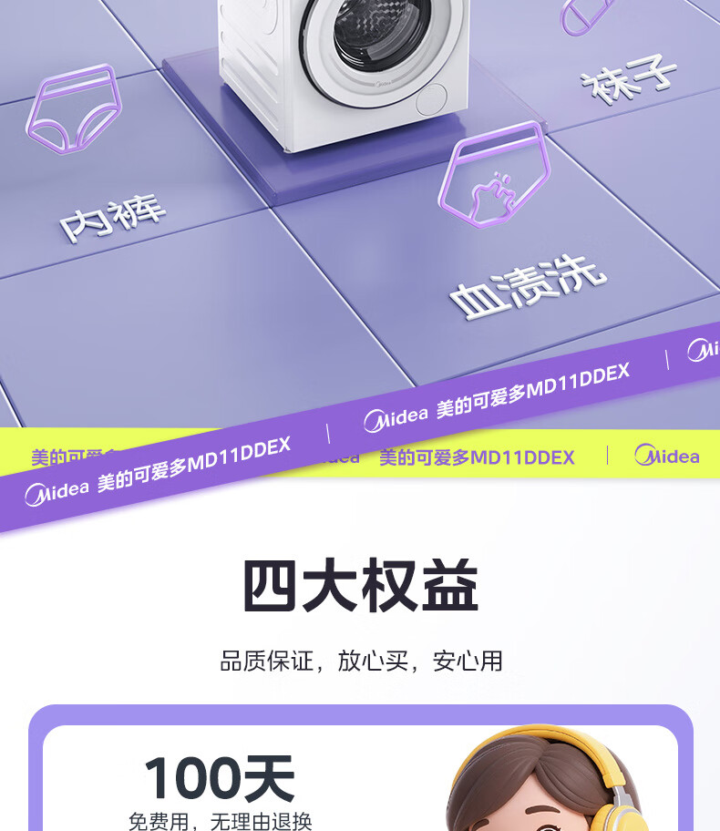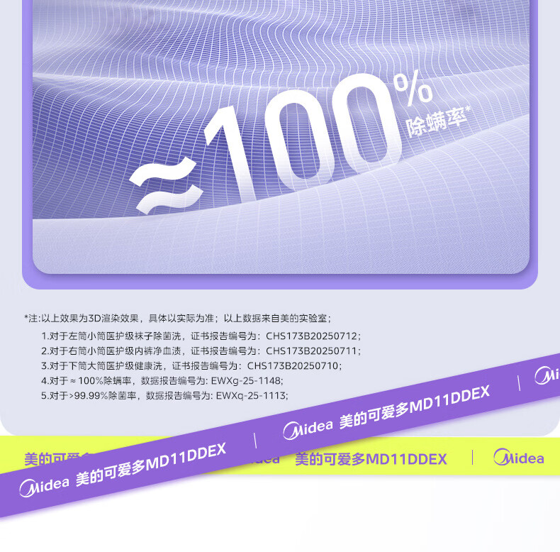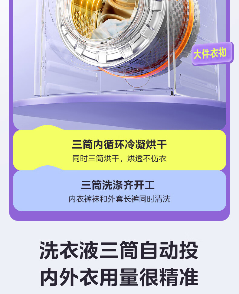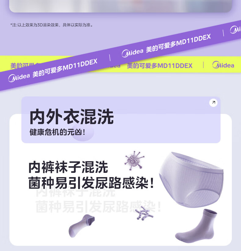 美的(Midea)三筒洗衣机洗烘一体全自动分区洗除菌净血渍三桶智能投放850mm标准高度国家补贴20% 【可爱多MD11DDEX】