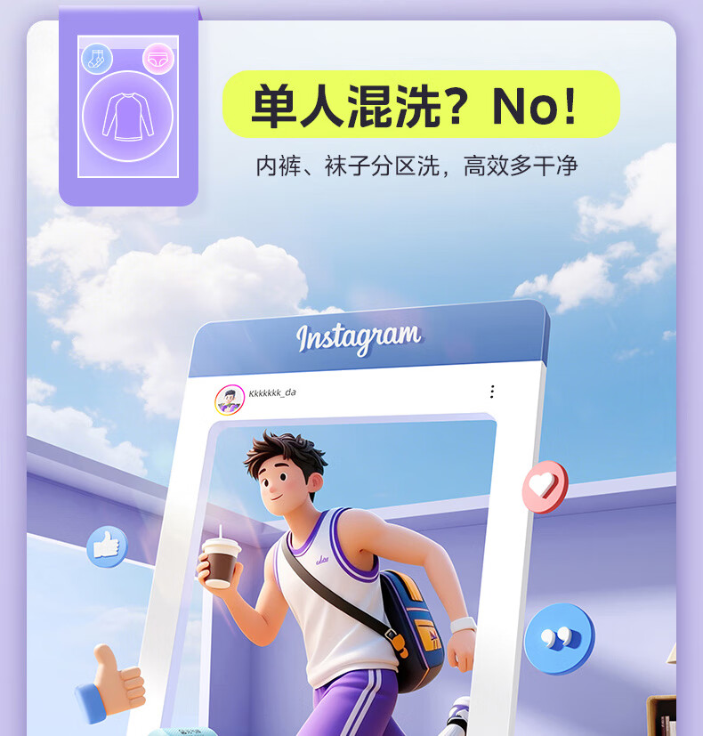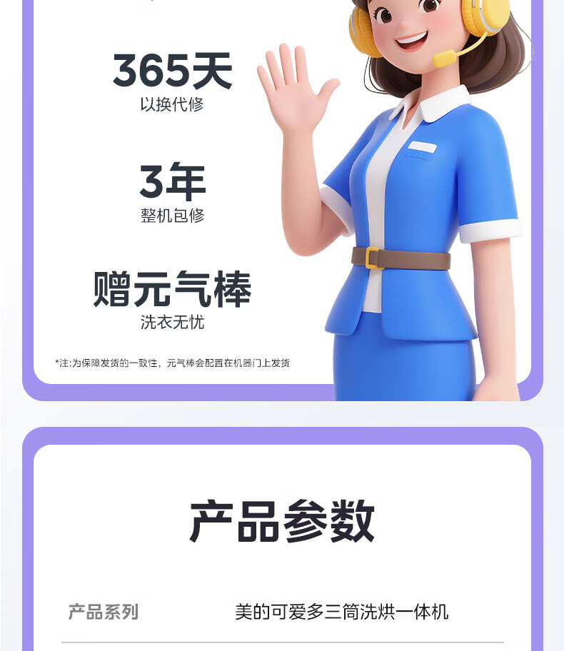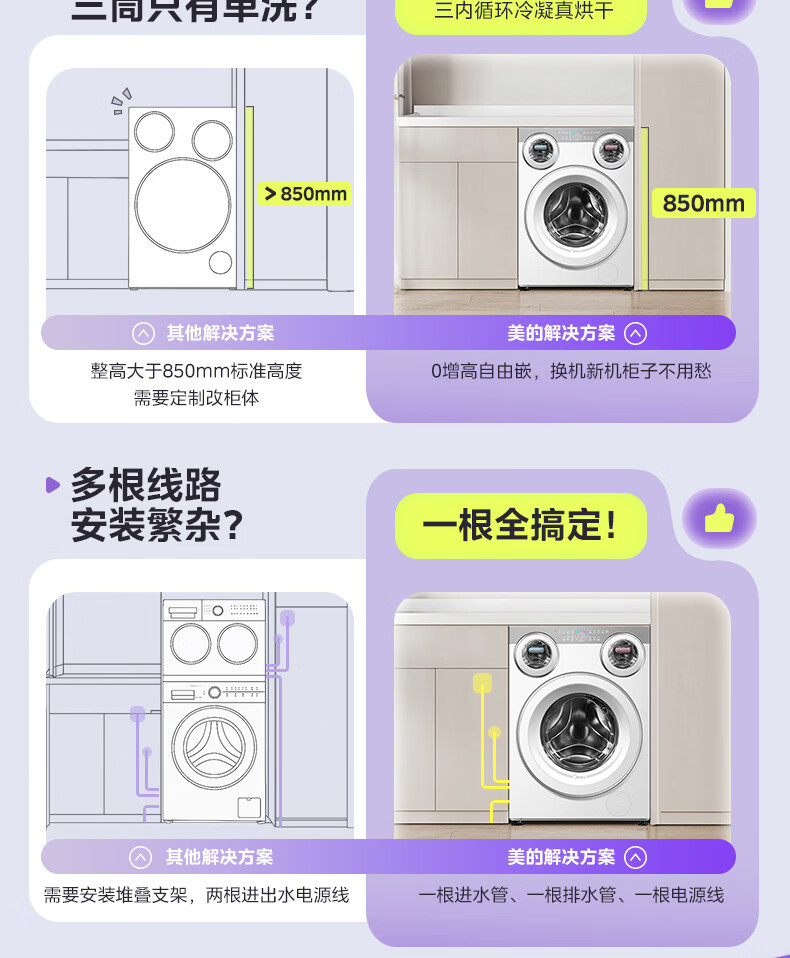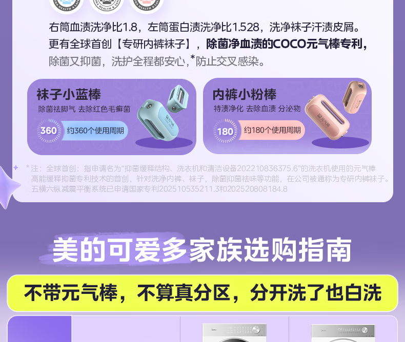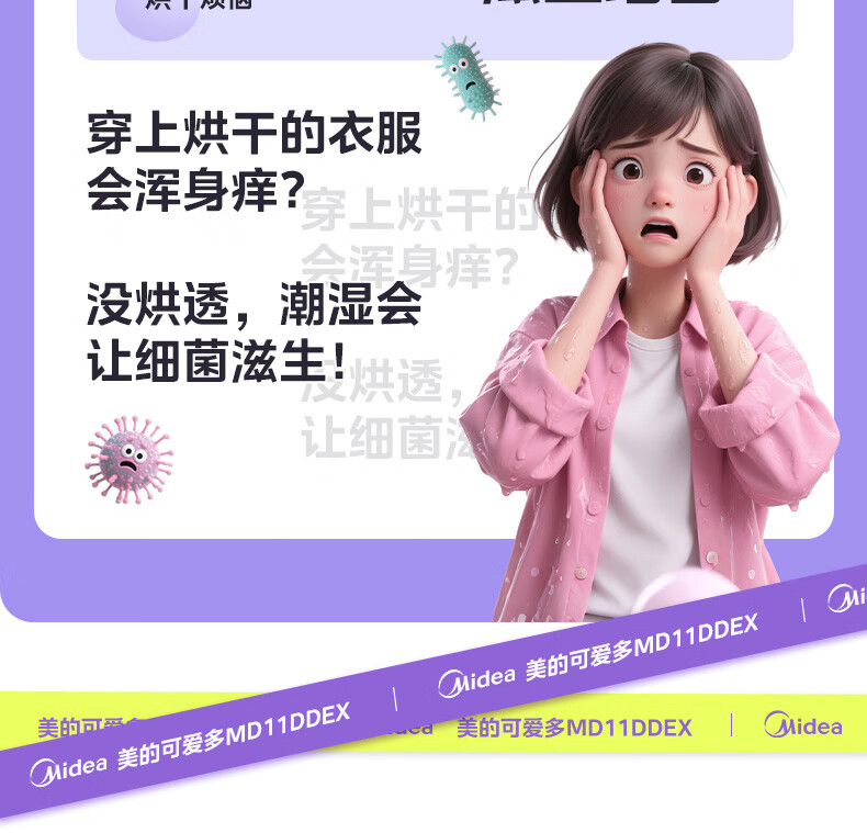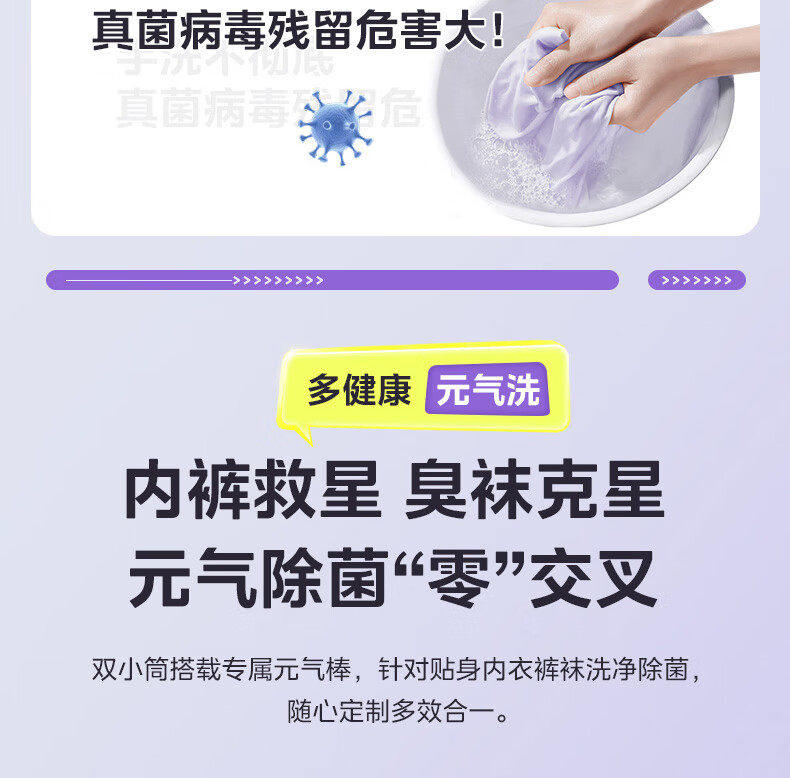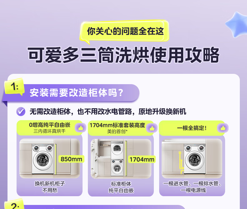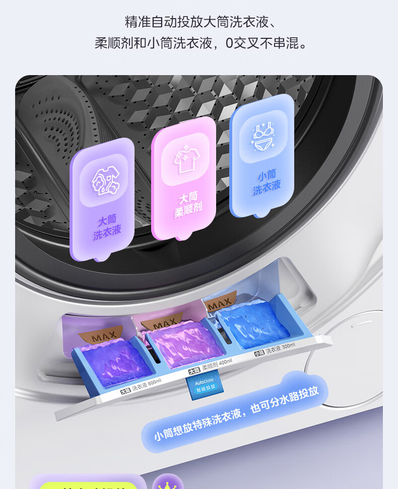 美的(Midea)三筒洗衣机洗烘一体全自动分区洗除菌净血渍三桶智能投放850mm标准高度国家补贴20% 【可爱多MD11DDEX】