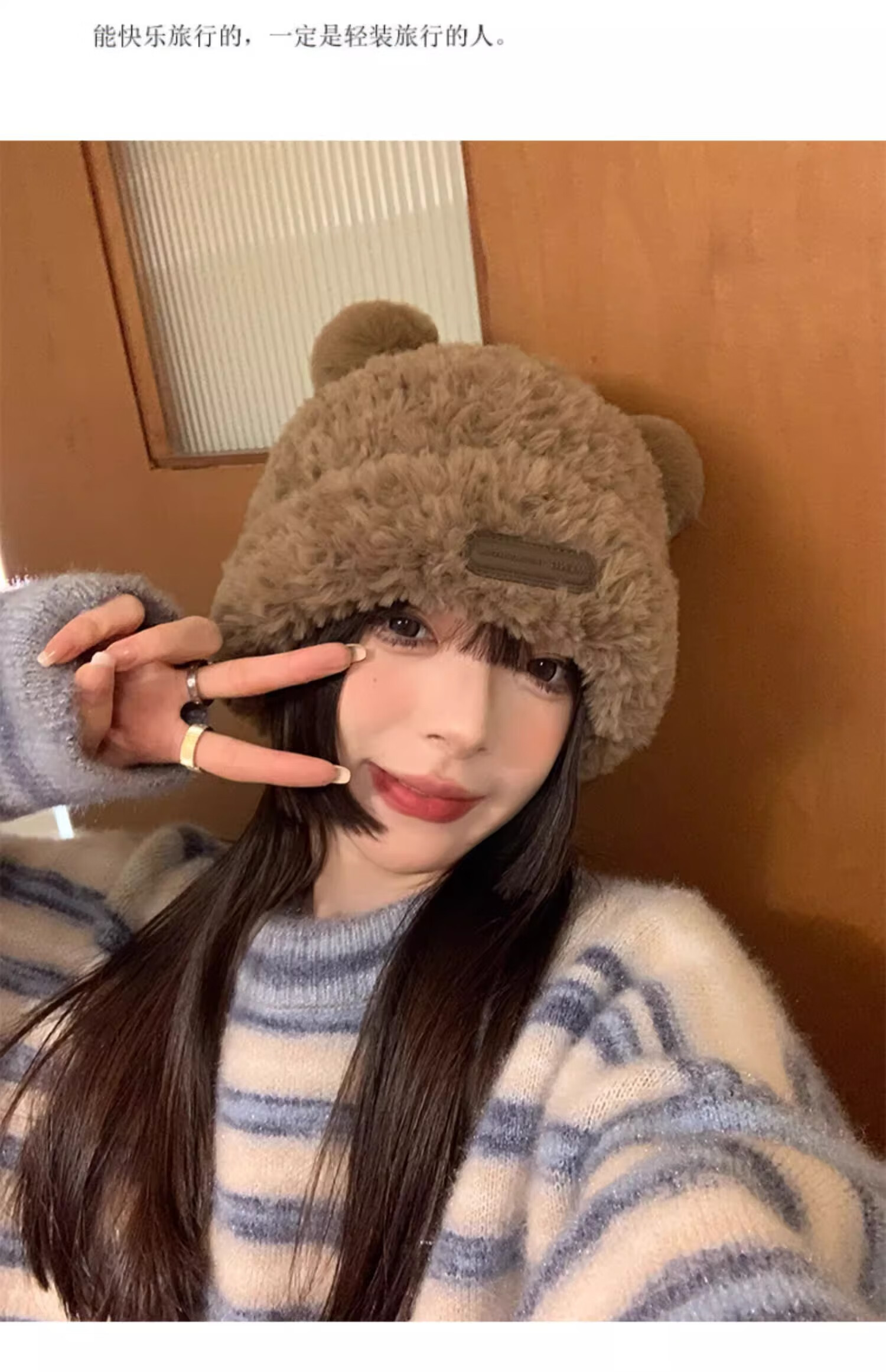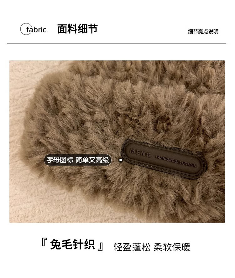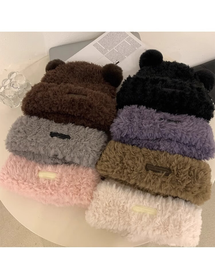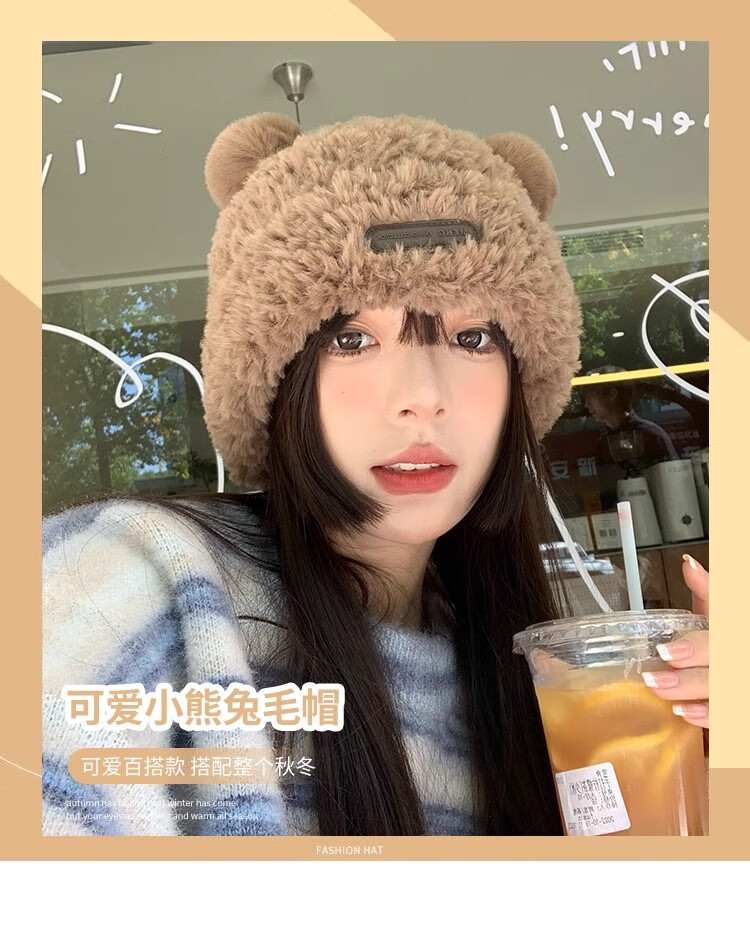 朋意可爱小熊毛线帽子女冬季爆款毛绒保暖毛毛秋冬大头围针织帽 小熊毛线帽-卡其 无规格