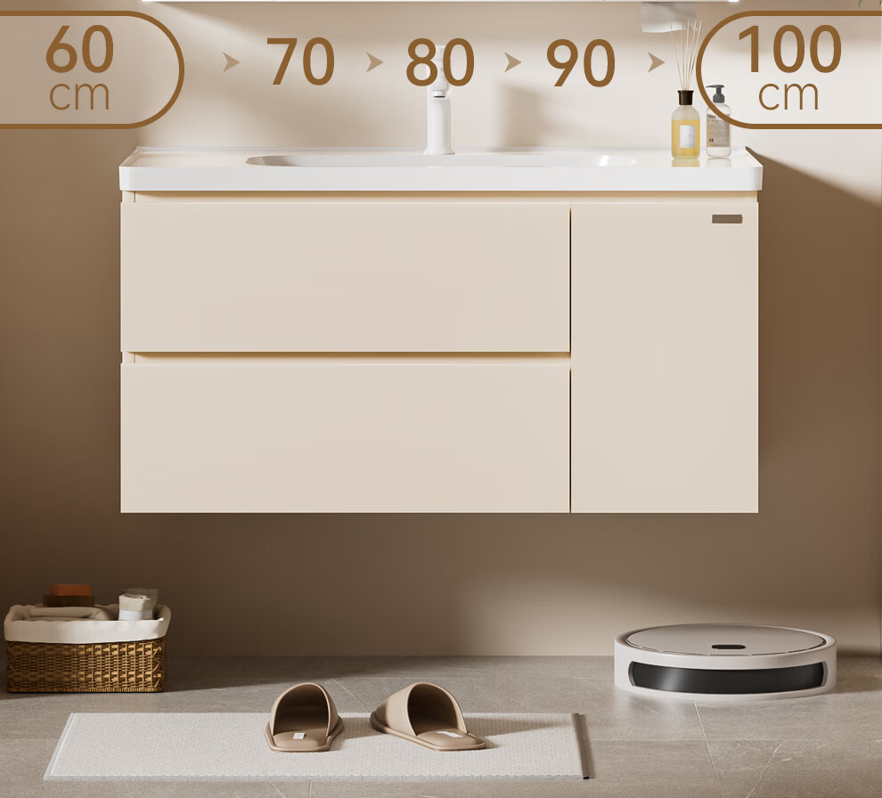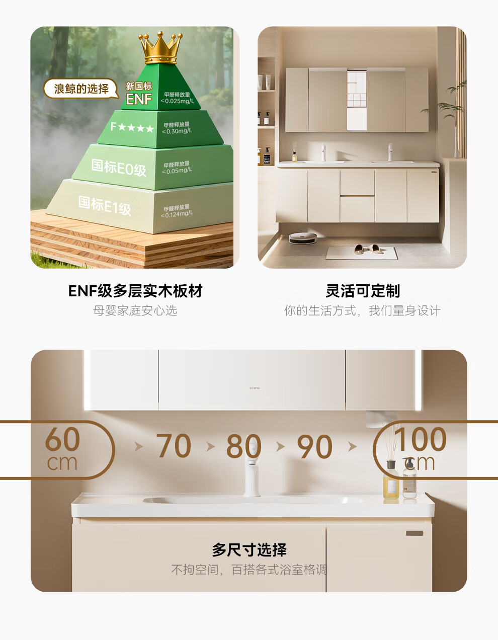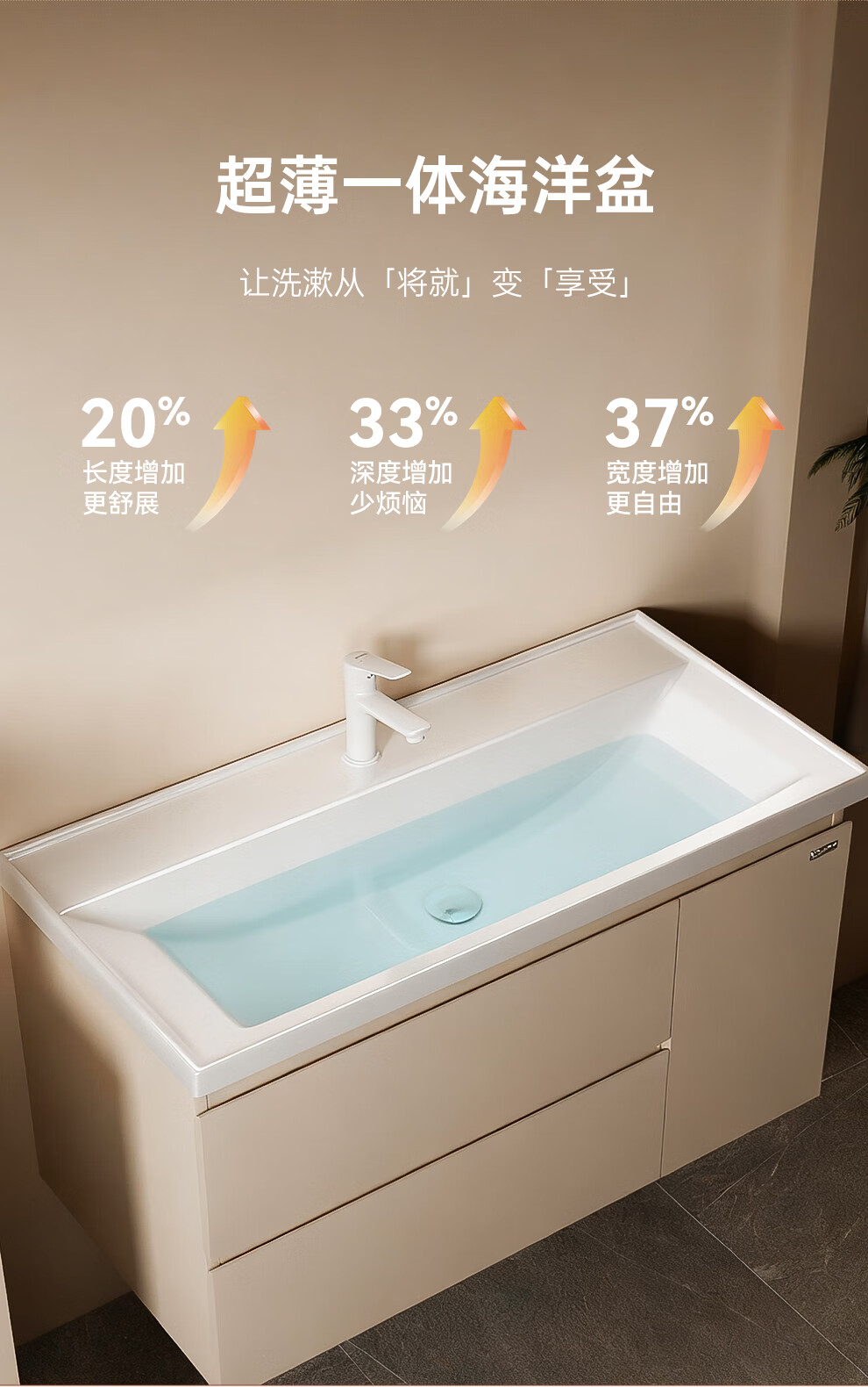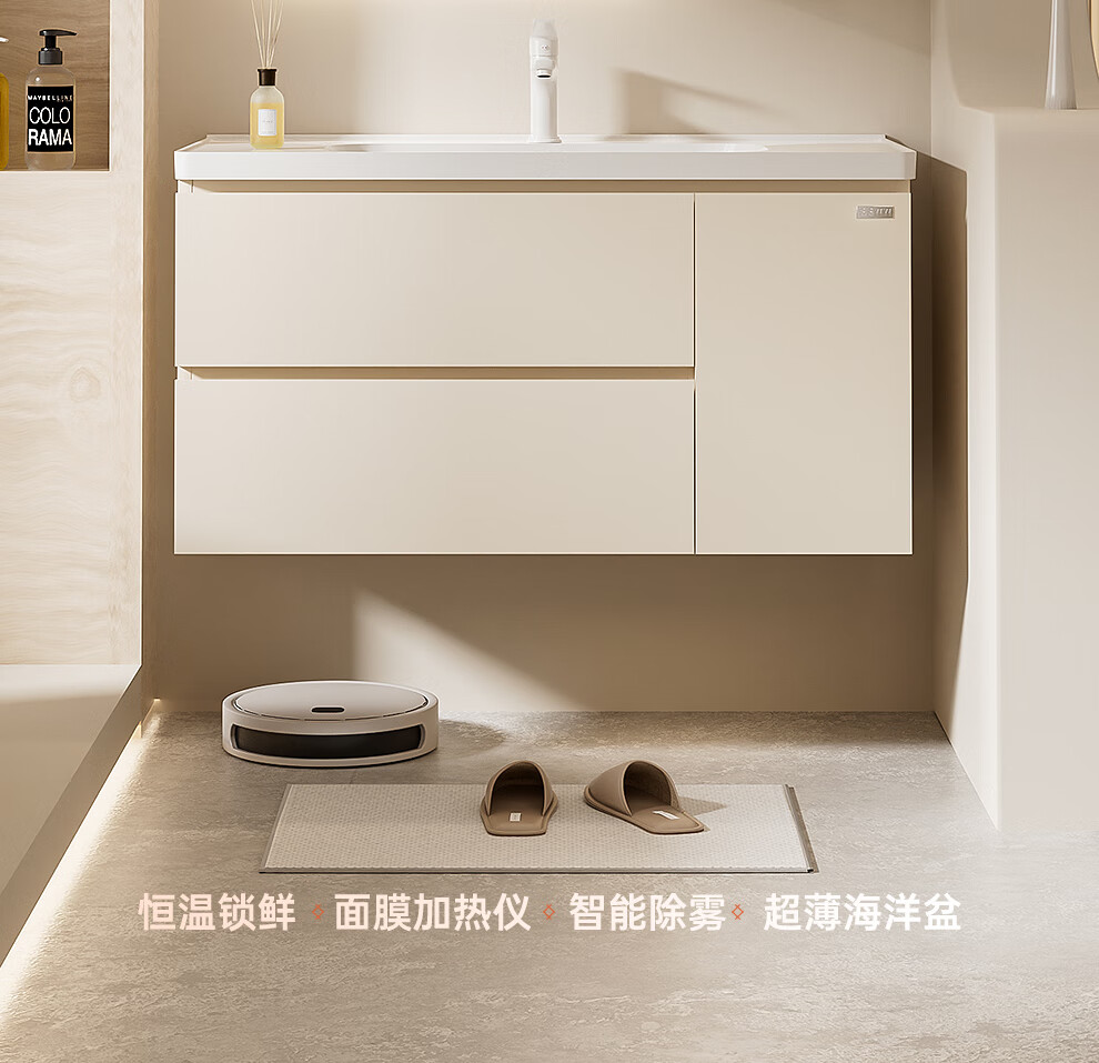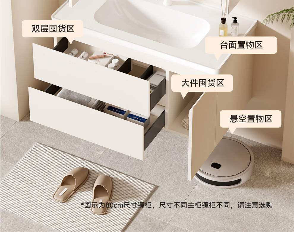 浪鲸(SSWW)卫浴新款浴室柜奶油风海洋盆卫生间洗手盆柜组合一体盆智能浴室柜 【环绕灯智能美妆除雾镜柜+陶瓷盆】80cm 【不含龙头】