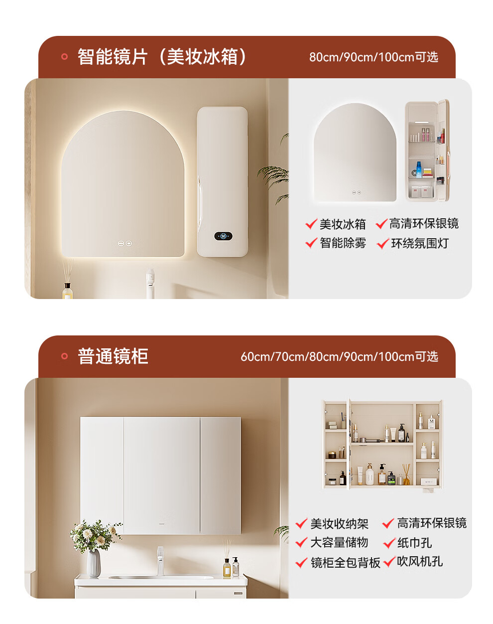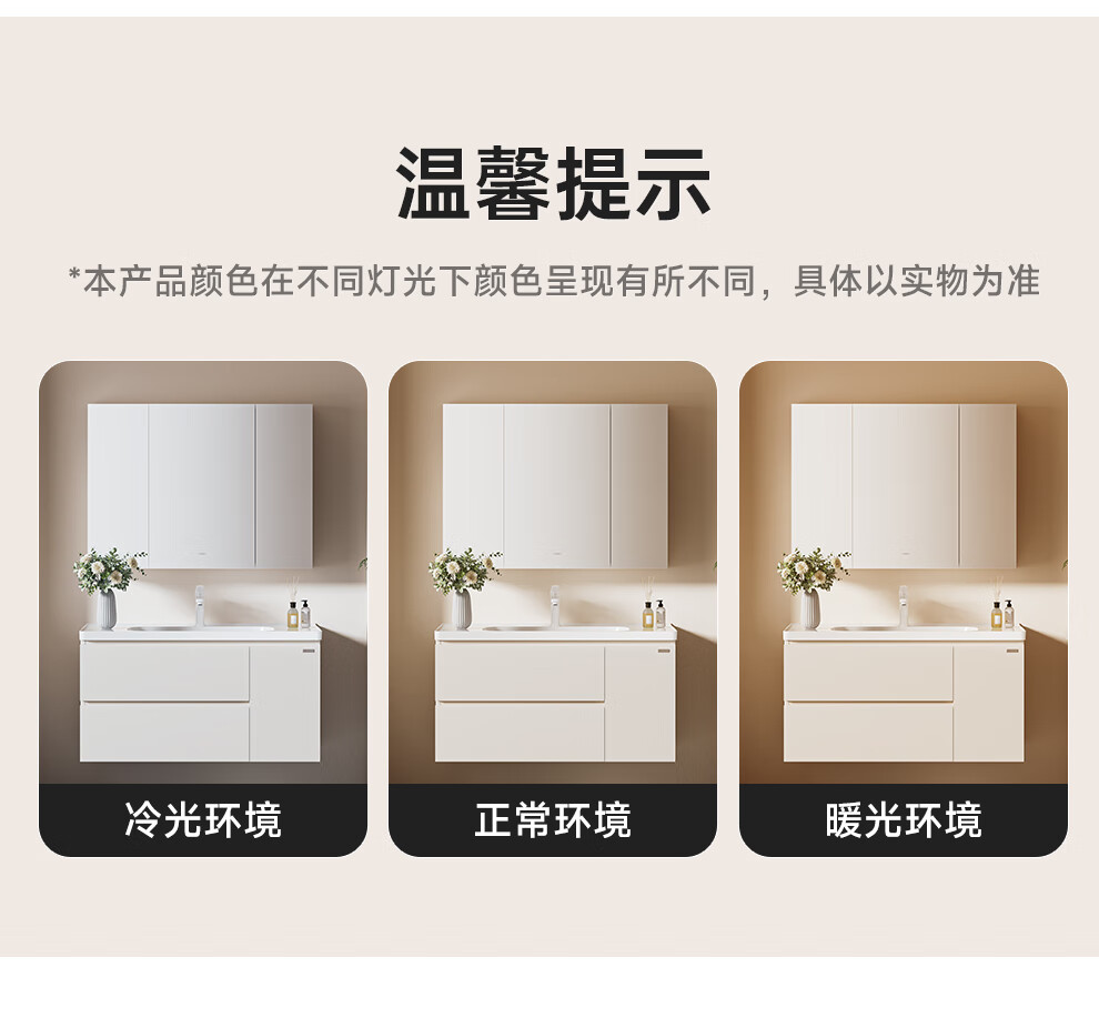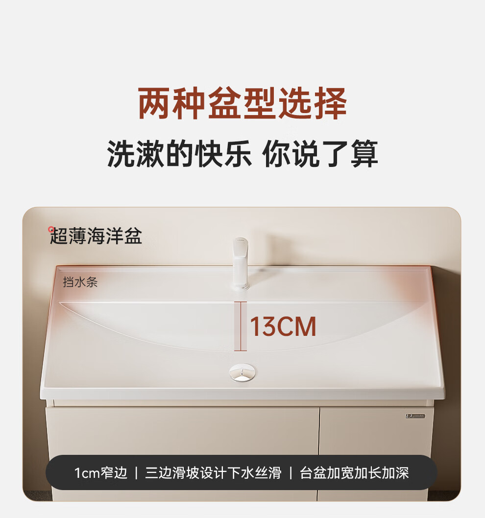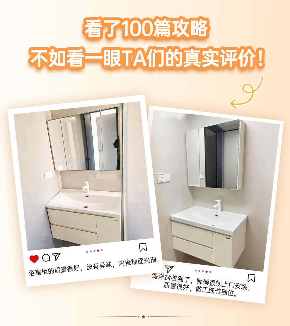 浪鲸(SSWW)卫浴新款浴室柜奶油风海洋盆卫生间洗手盆柜组合一体盆智能浴室柜 【环绕灯智能美妆除雾镜柜+陶瓷盆】80cm 【不含龙头】