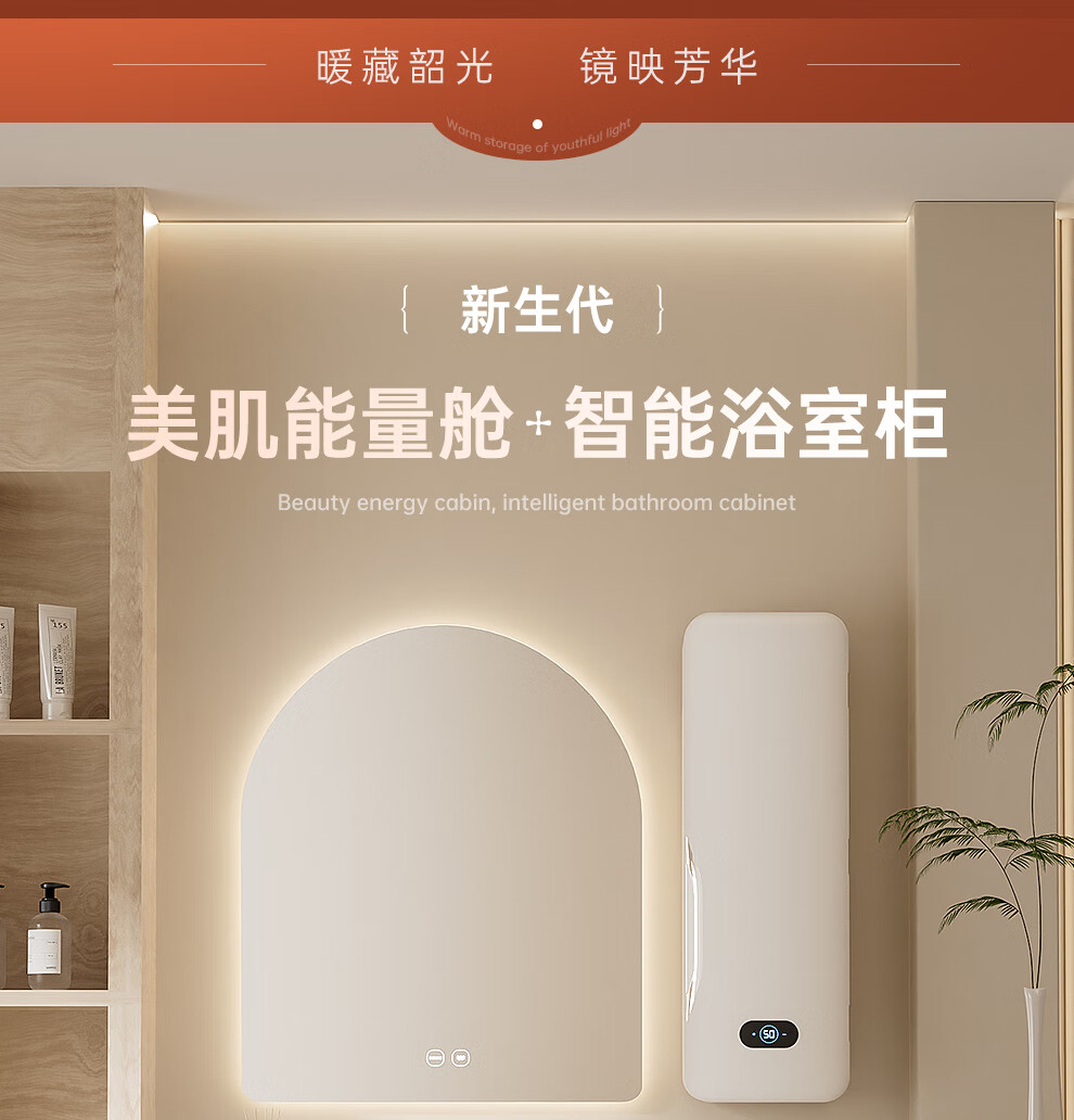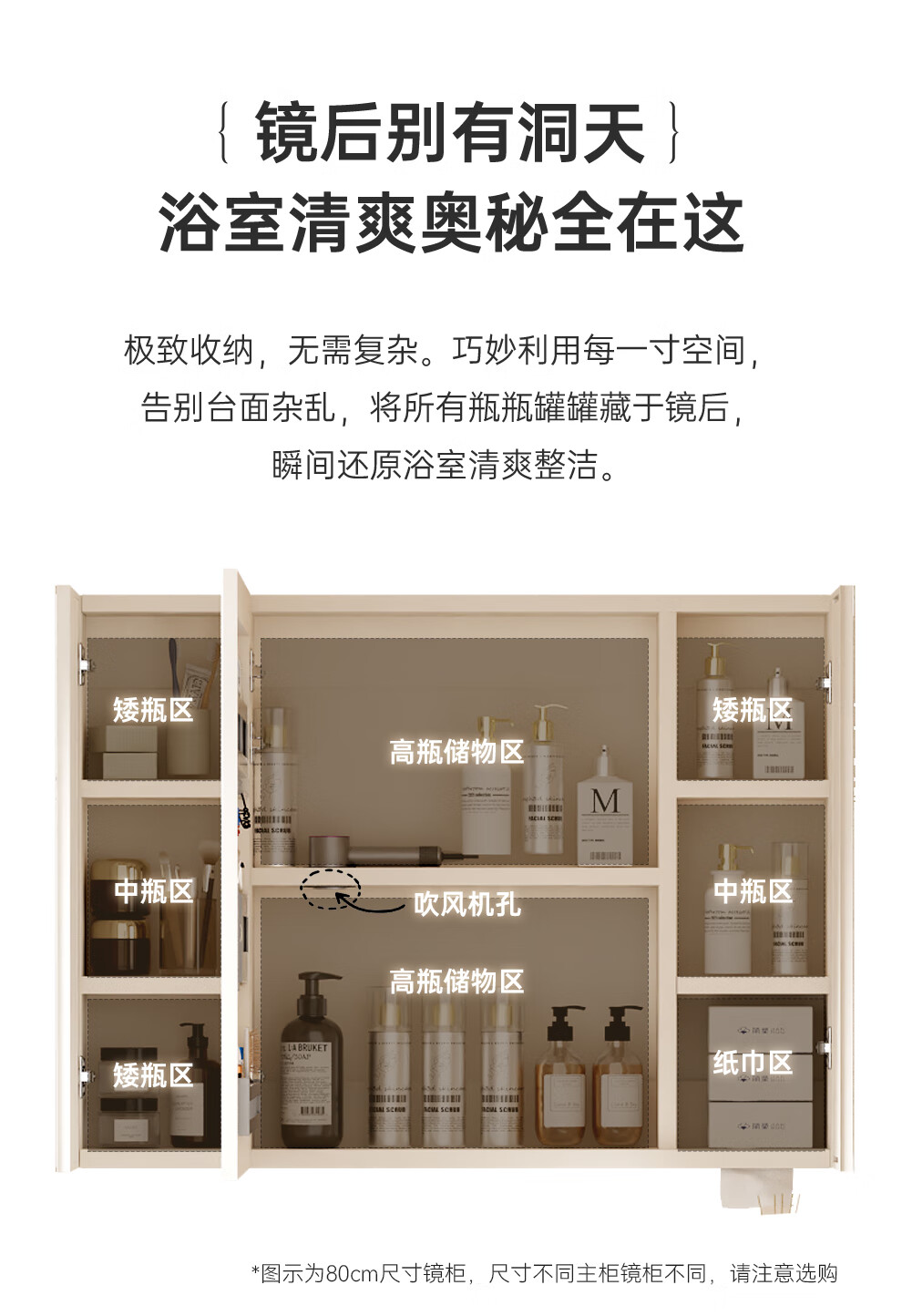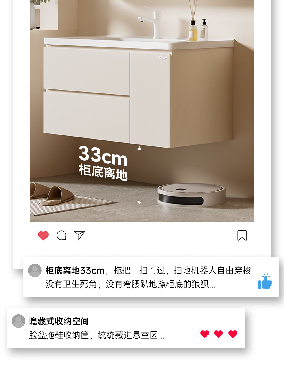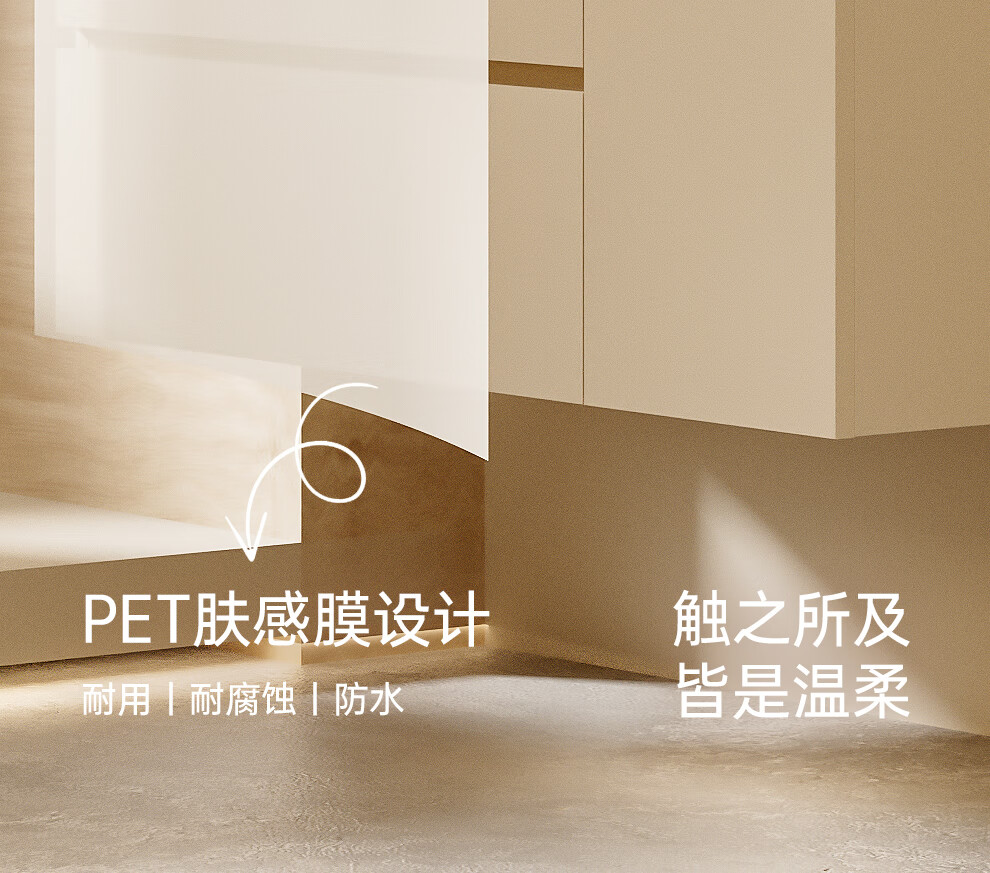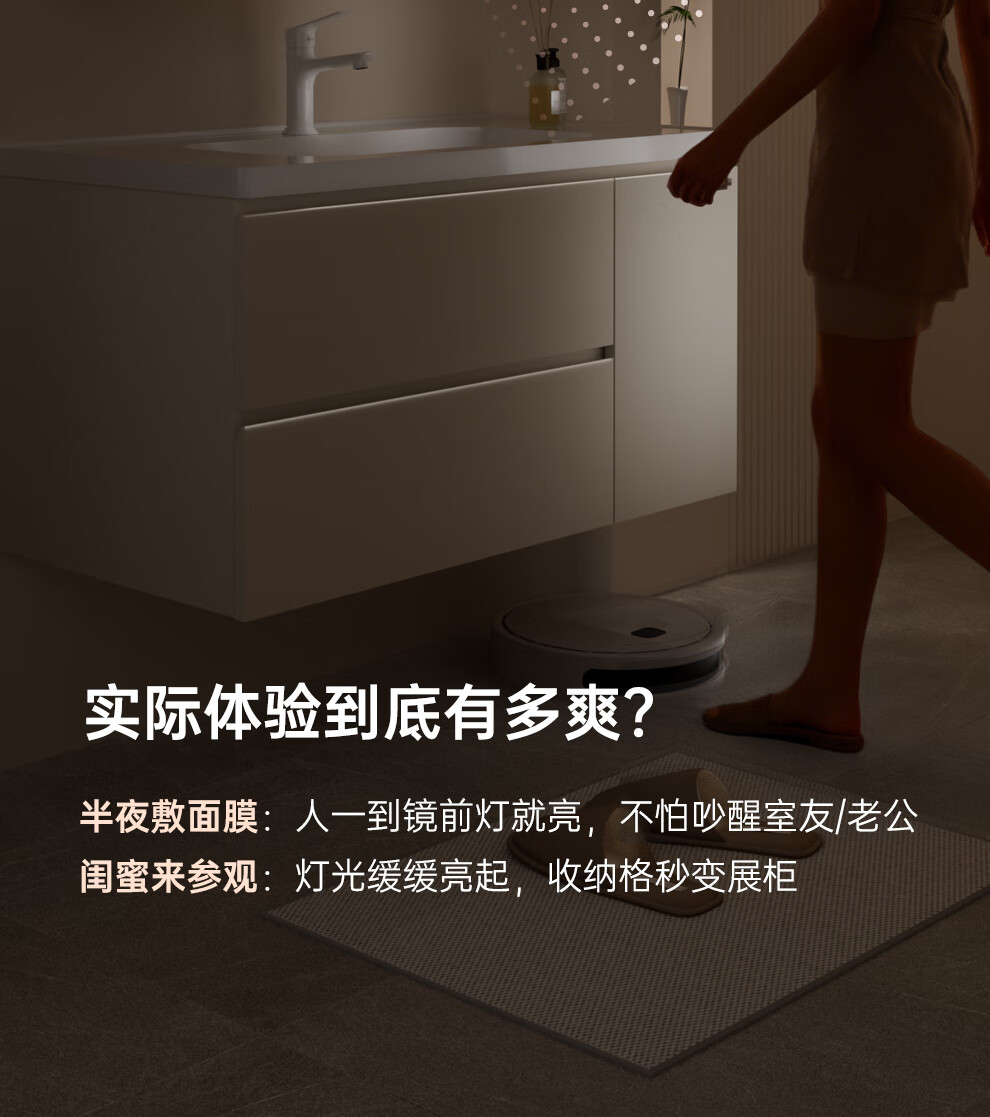 浪鲸(SSWW)卫浴新款浴室柜奶油风海洋盆卫生间洗手盆柜组合一体盆智能浴室柜 【环绕灯智能美妆除雾镜柜+陶瓷盆】80cm 【不含龙头】