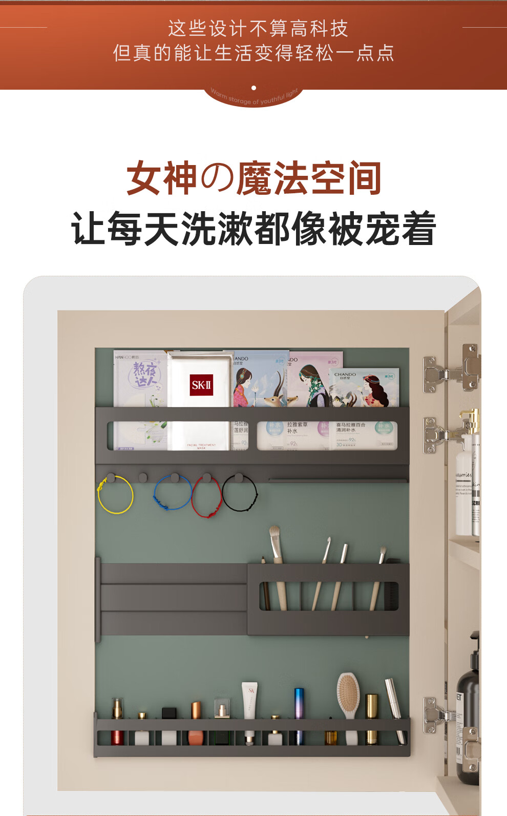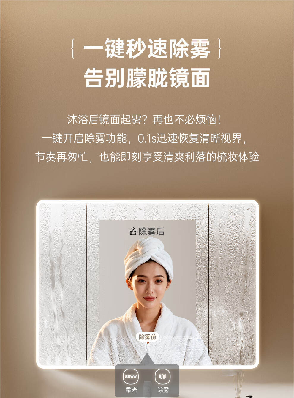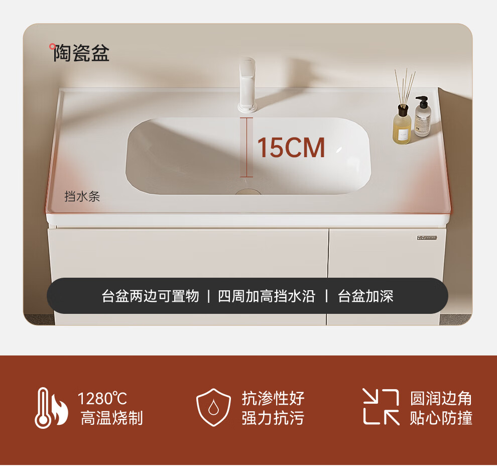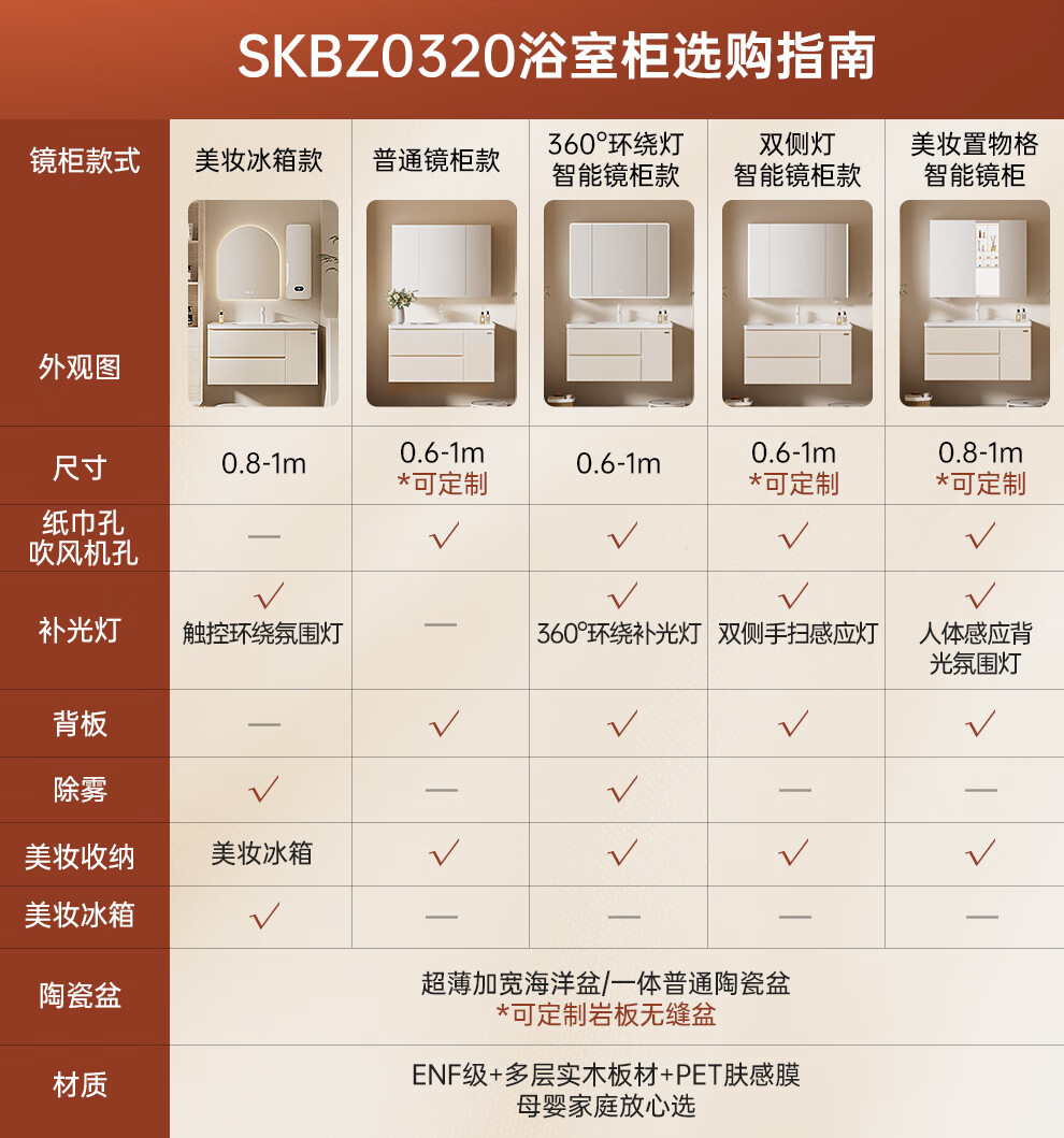 浪鲸(SSWW)卫浴新款浴室柜奶油风海洋盆卫生间洗手盆柜组合一体盆智能浴室柜 【环绕灯智能美妆除雾镜柜+陶瓷盆】80cm 【不含龙头】