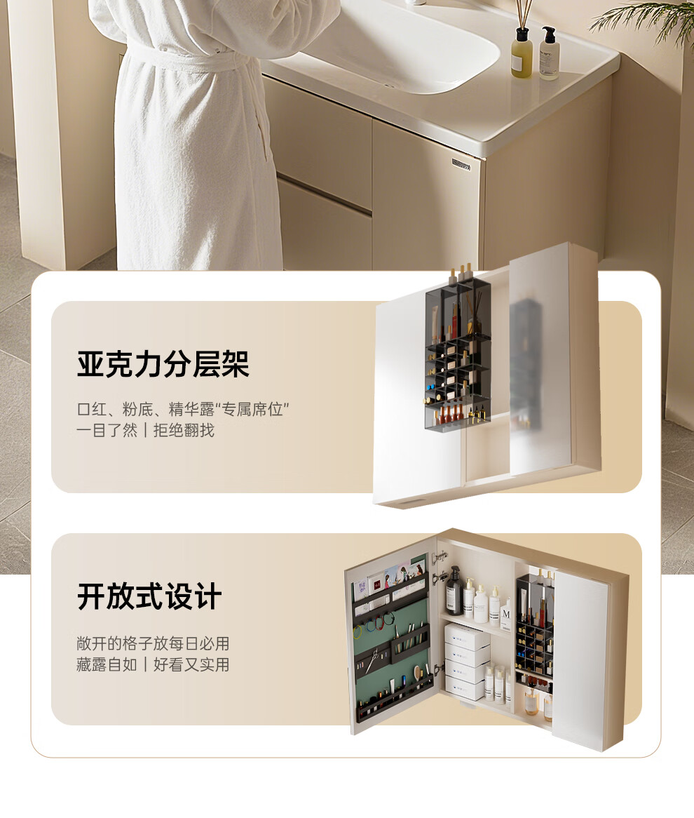 恒洁(HEGII)浴室柜E0级陶瓷一体盆折叠镜柜双抽BC2522(BM2201-75Q卡其灰智能