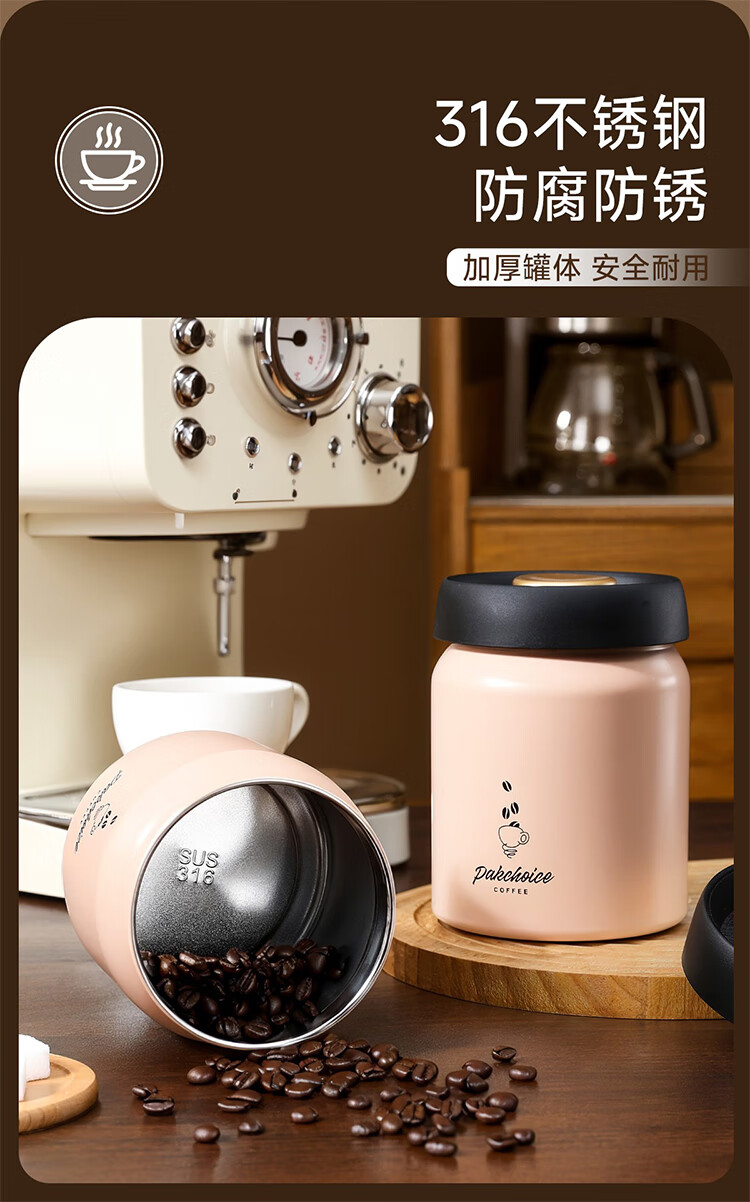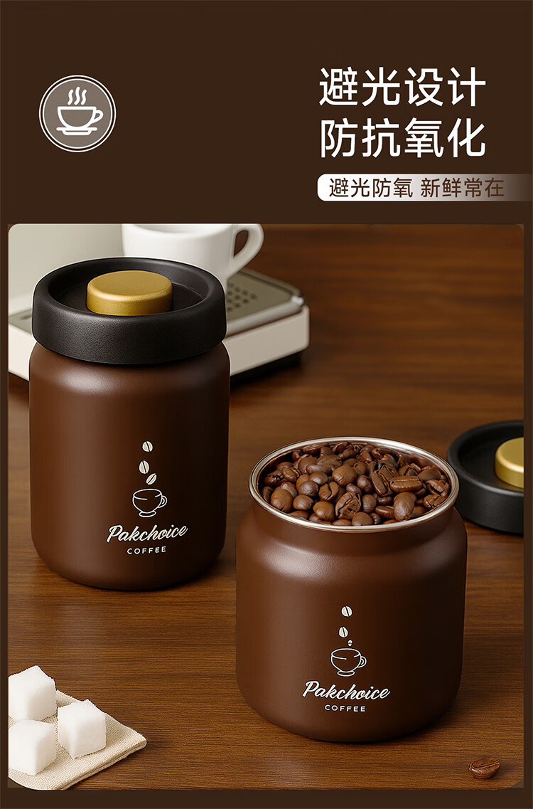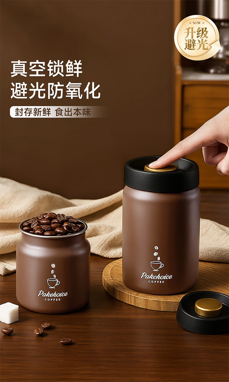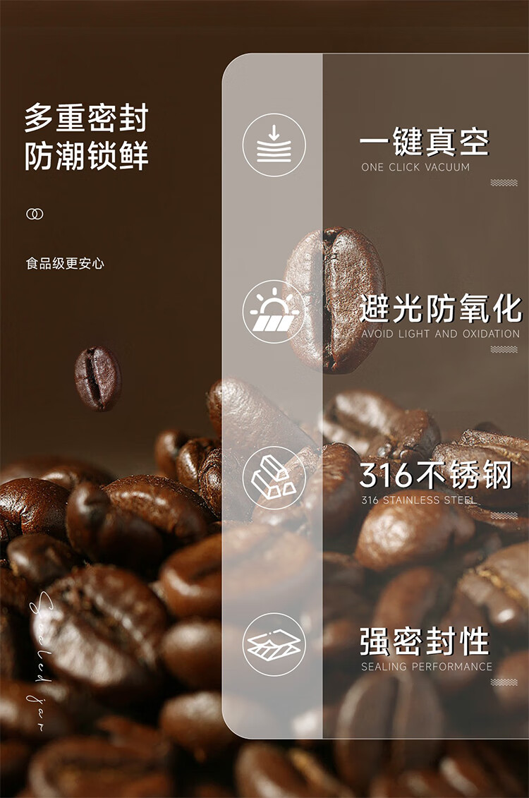 筏芯德国咖啡豆密封罐316不锈钢茶叶咖啡粉专用保存罐避光抽真空储物 【316避光真空】500ml棕色
