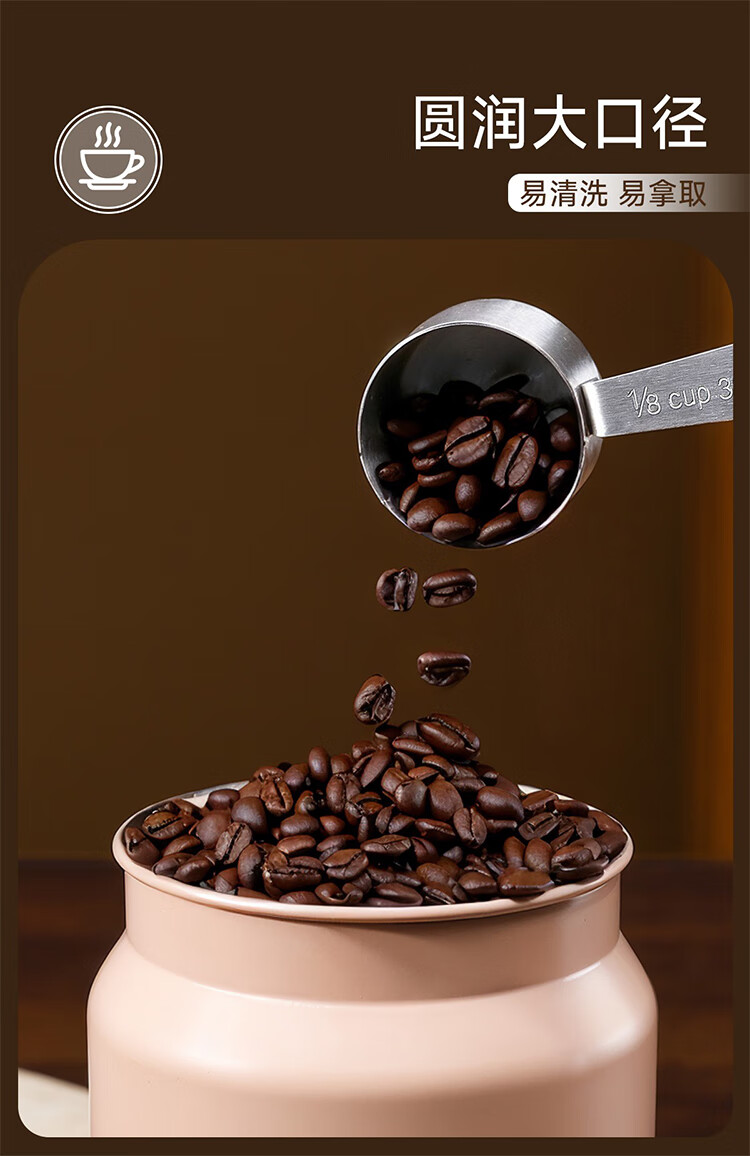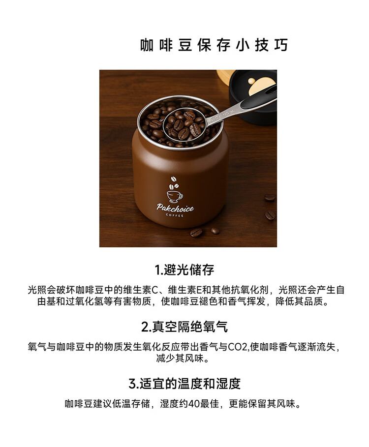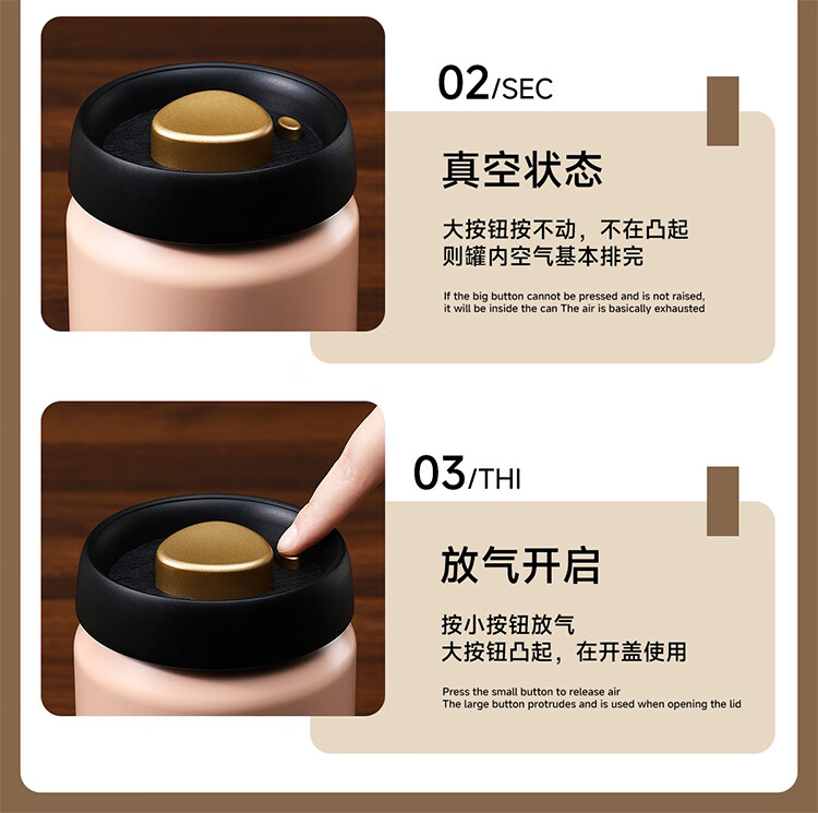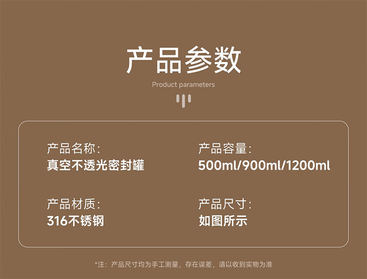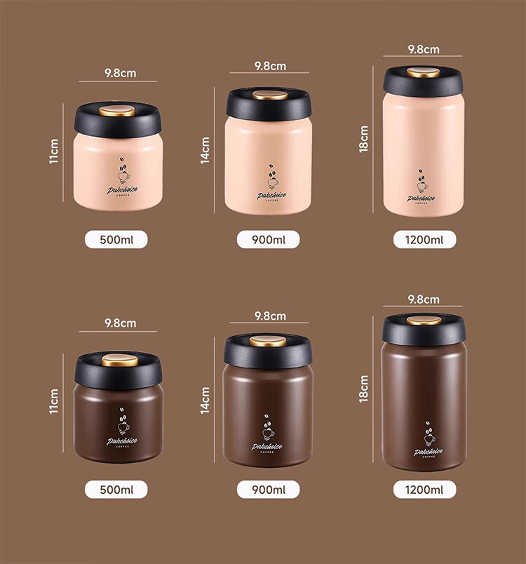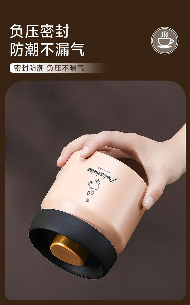 筏芯德国咖啡豆密封罐316不锈钢茶叶咖啡粉专用保存罐避光抽真空储物 【316避光真空】500ml棕色