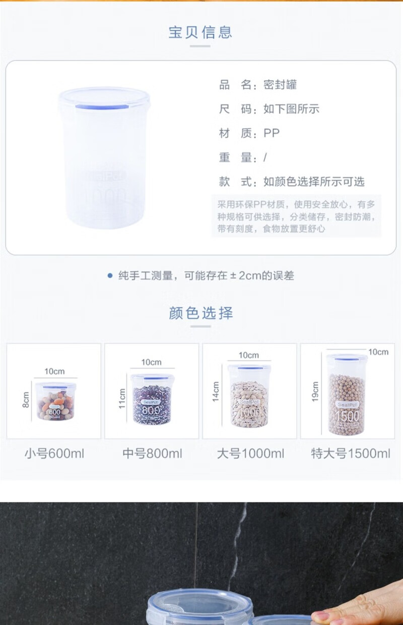 简漾家用防潮防虫密封罐五谷杂粮储物盒食品级透明塑料储存罐收纳盒子 【1个】小号