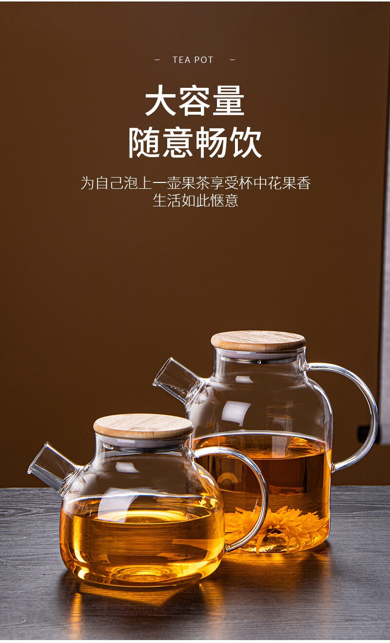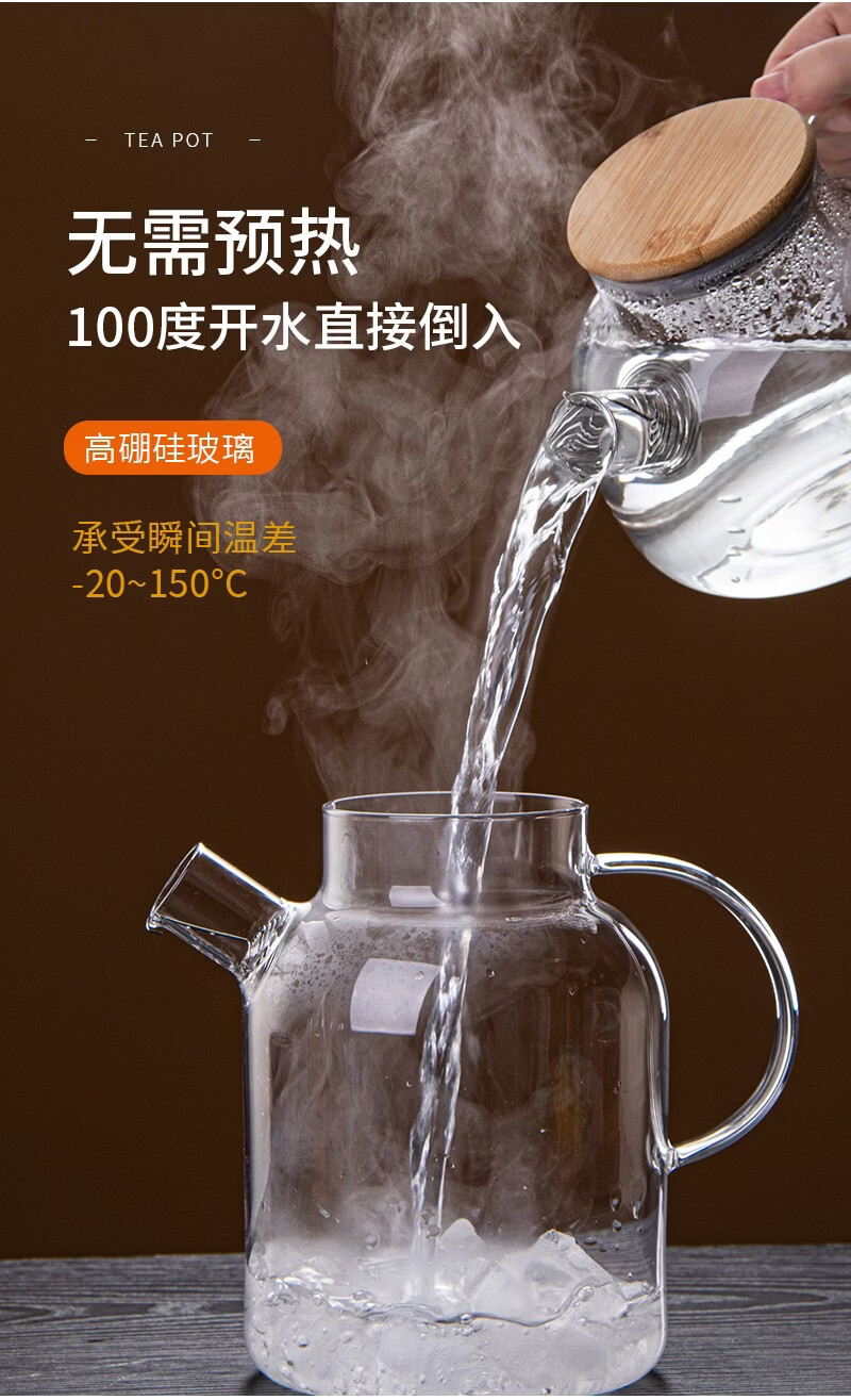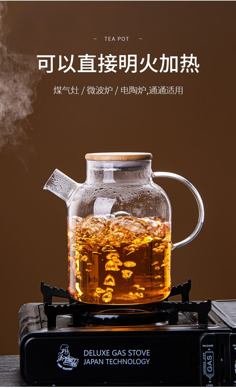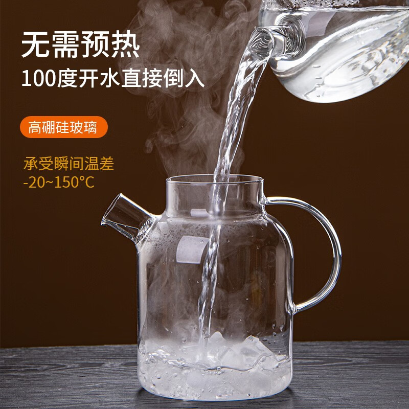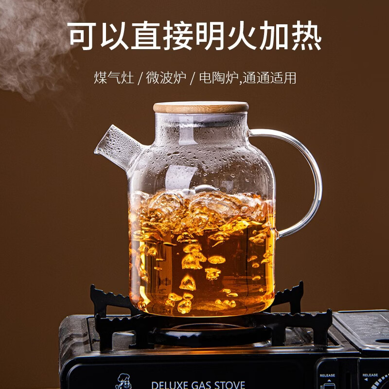 简漾冬天围炉煮茶玻璃壶泡茶专用壶家用炭烧水壶明火电陶炉煮茶花茶壶 耐热玻璃冷水壶1803毫升