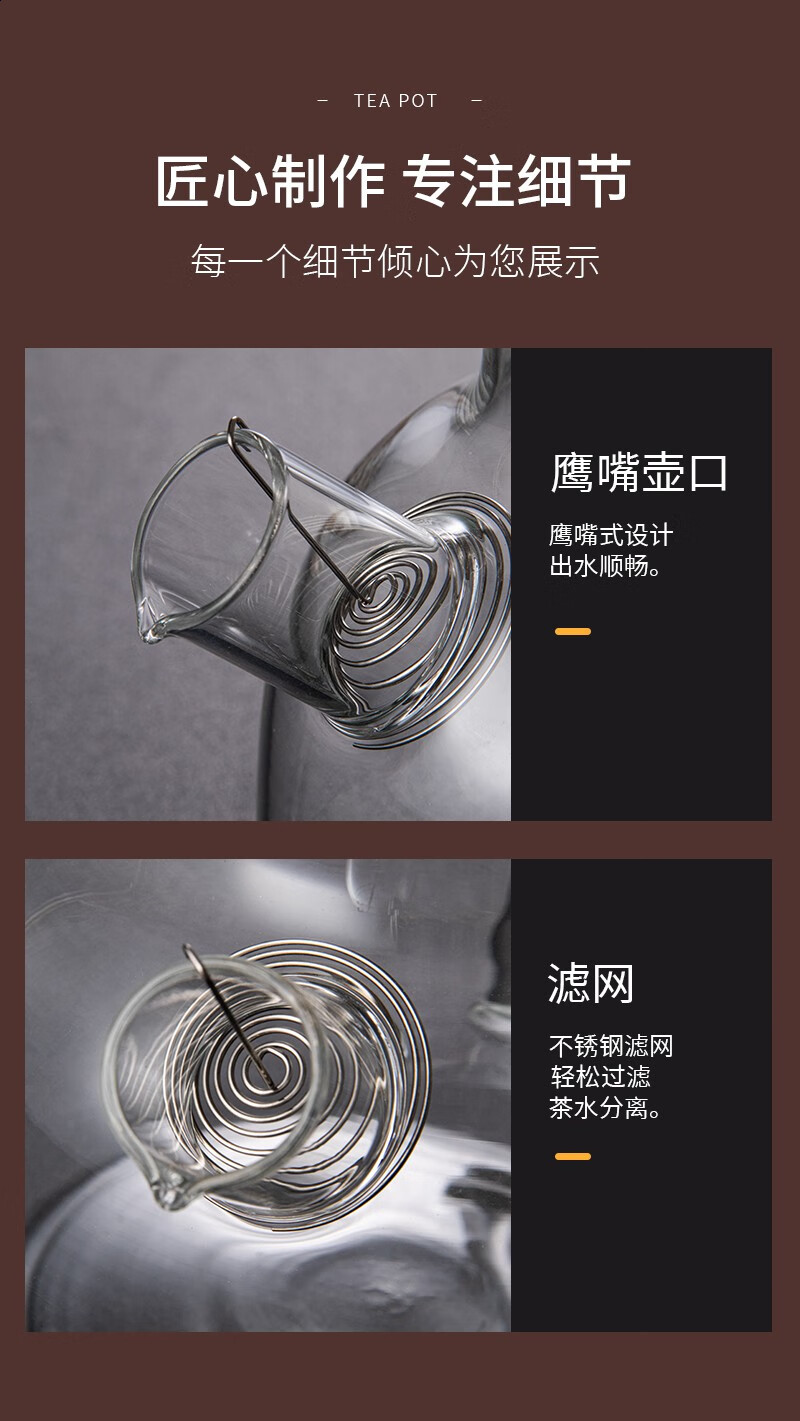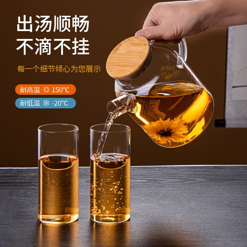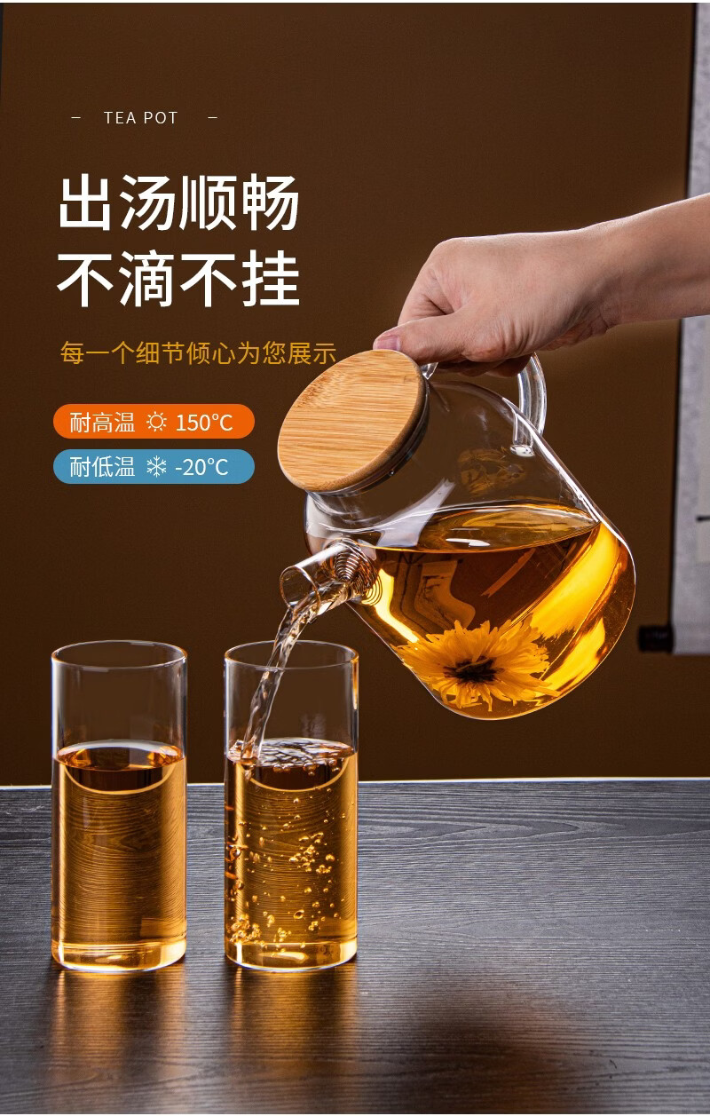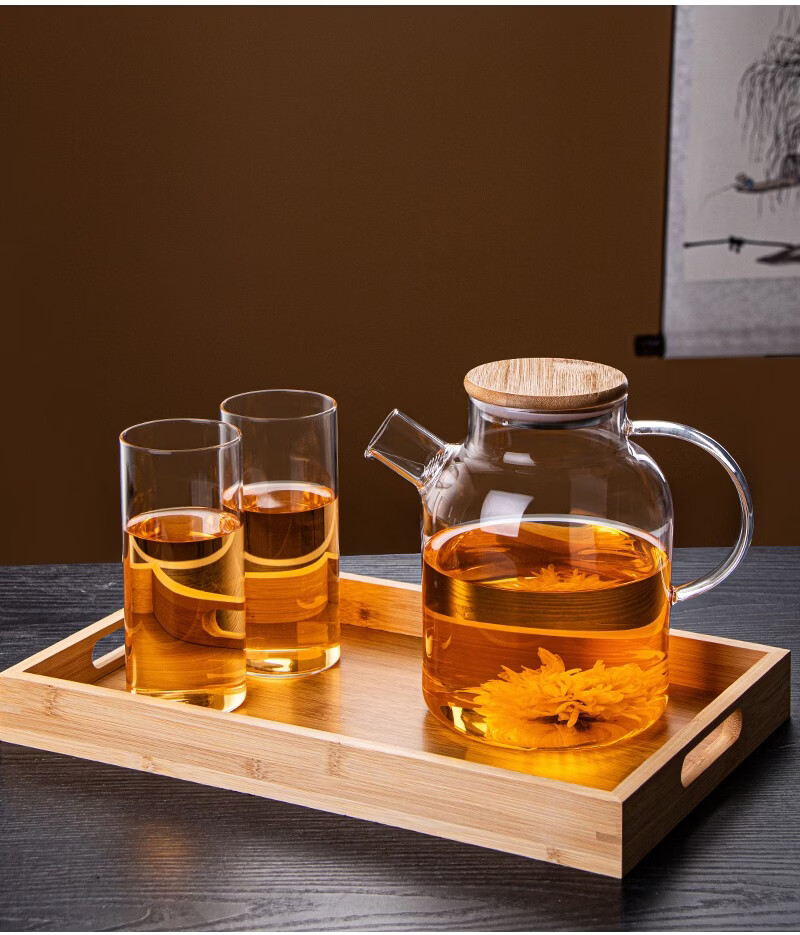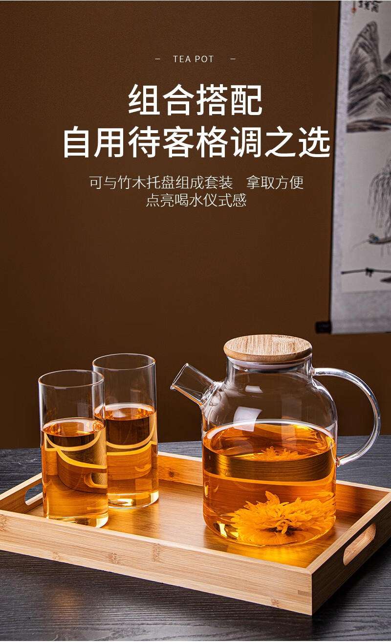 简漾冬天围炉煮茶玻璃壶泡茶专用壶家用炭烧水壶明火电陶炉煮茶花茶壶 耐热玻璃冷水壶1803毫升
