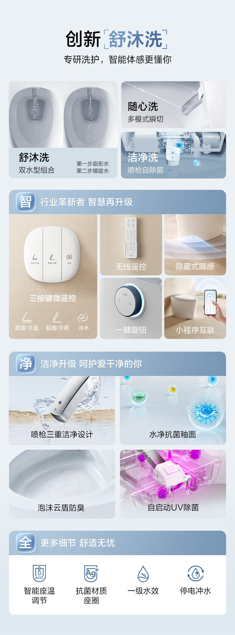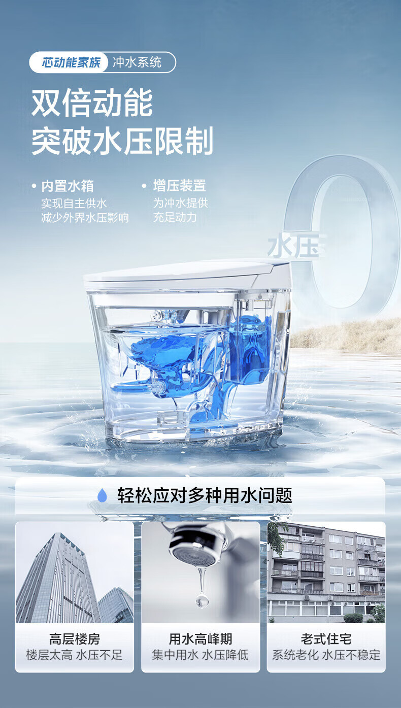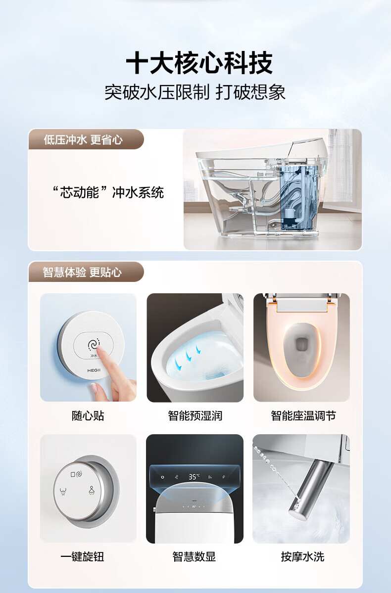 恒洁落地智能马桶一体机全自动无水压带水箱即热式坐便器翻盖翻圈系列 【泡沫盾+翻盖翻圈/大小冲】H35Pro 305/300mm