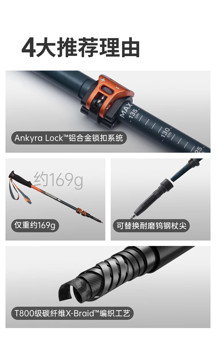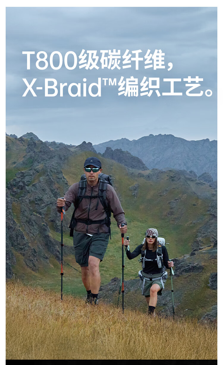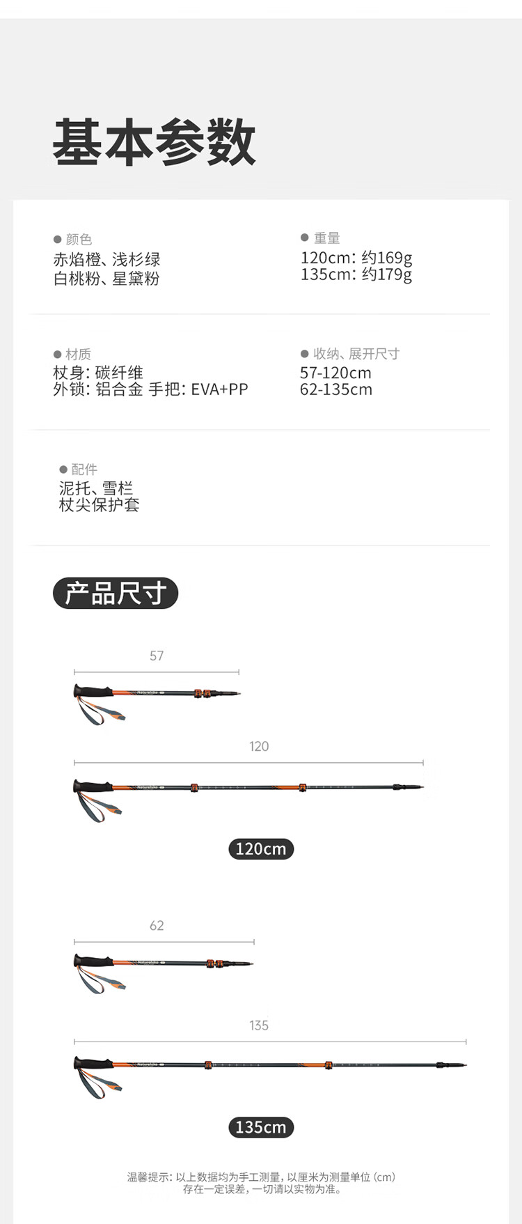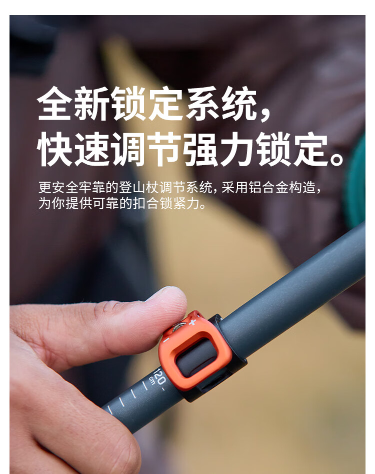 Naturehike挪客光迹3EXT三节碳纤维伸缩登山杖轻量男户外专业徒步手杖女超轻 单根/推荐身高1.9m以下/赤焰橙/62-135cm