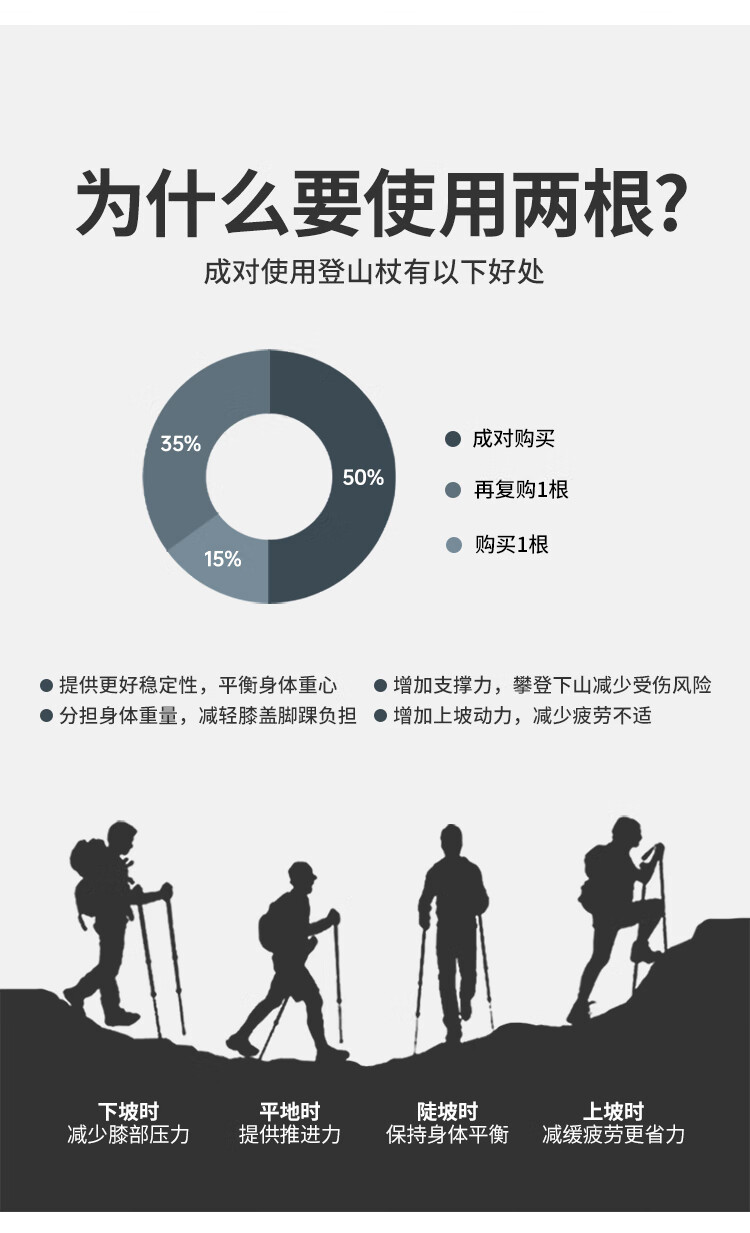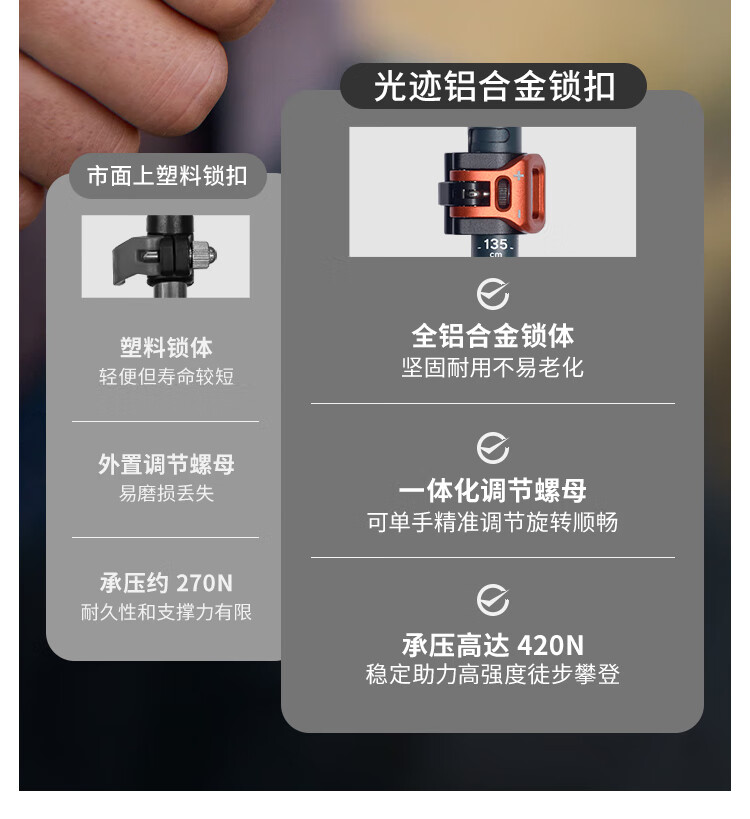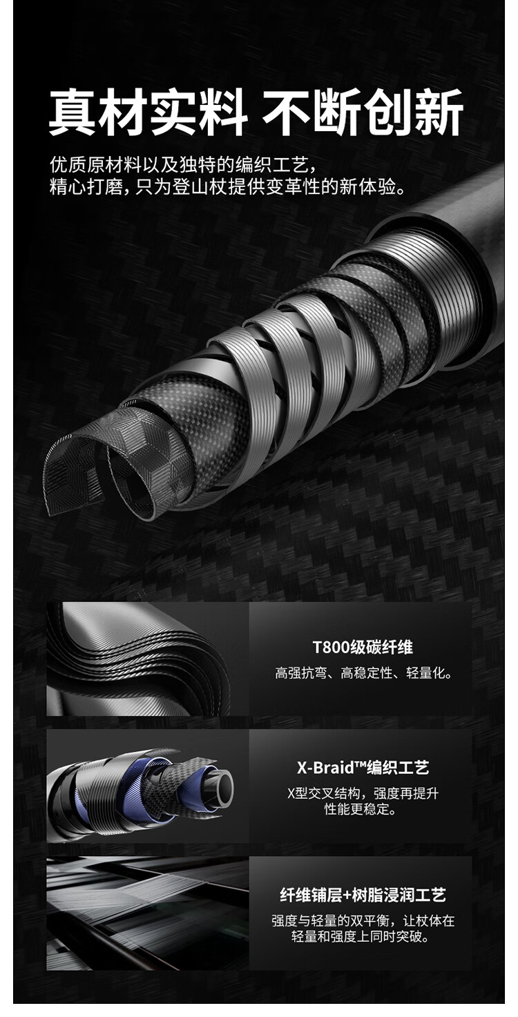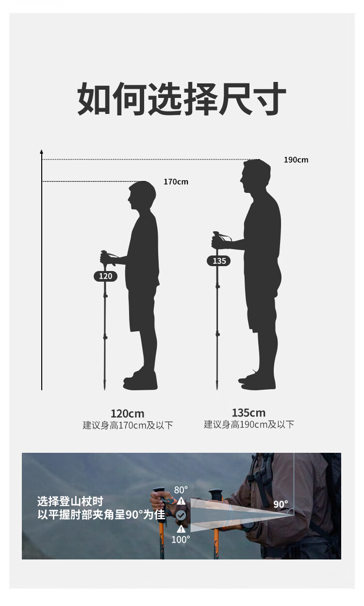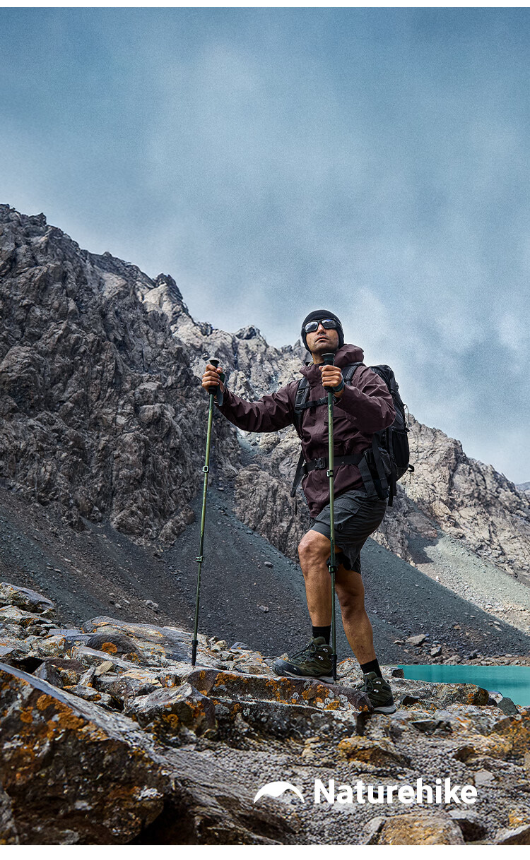 Naturehike挪客光迹3EXT三节碳纤维伸缩登山杖轻量男户外专业徒步手杖女超轻 单根/推荐身高1.9m以下/赤焰橙/62-135cm