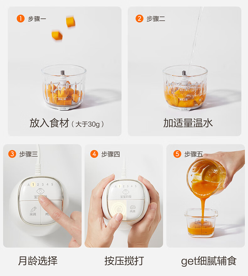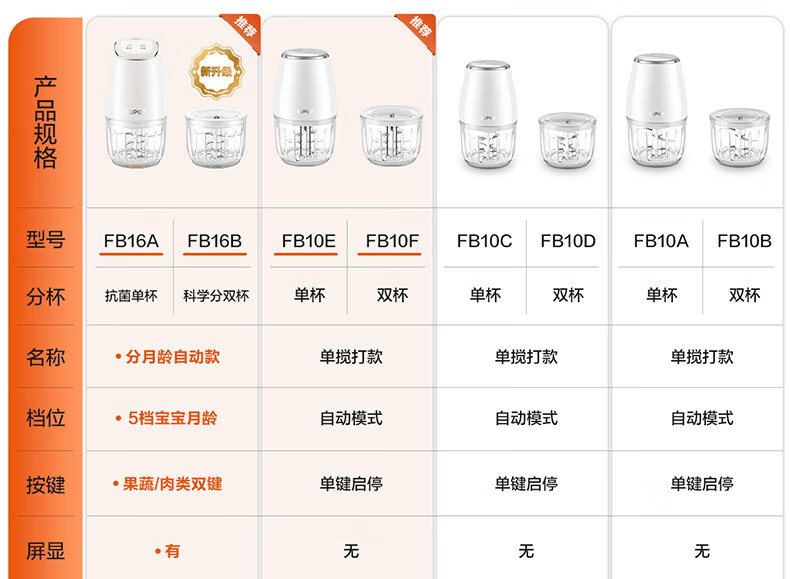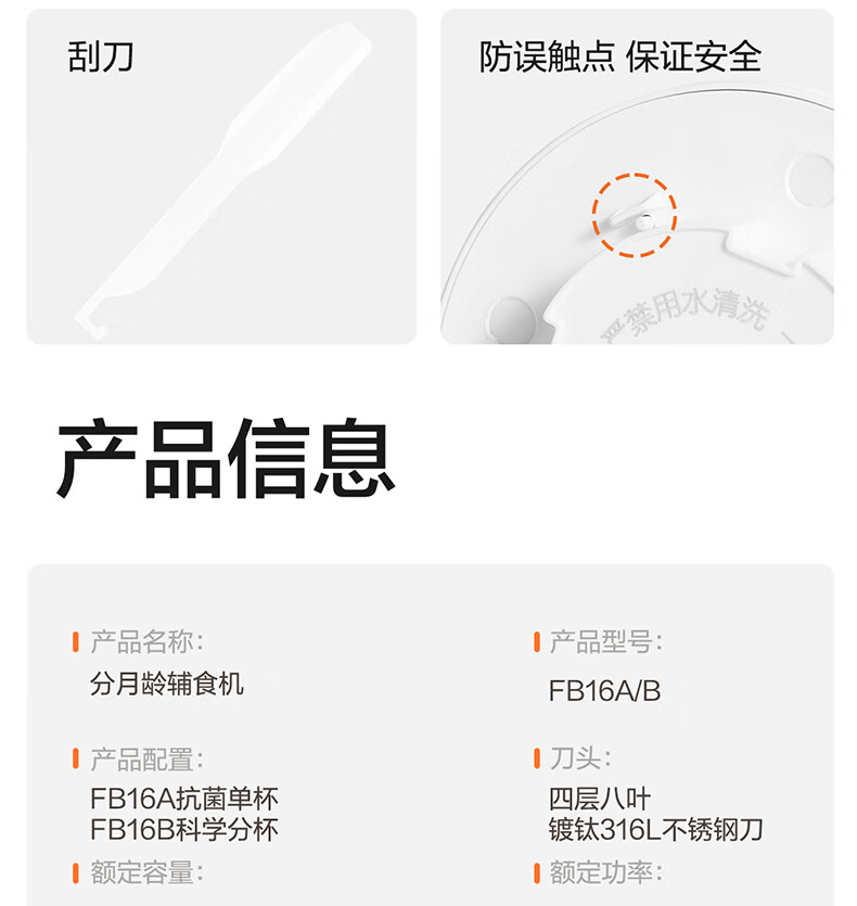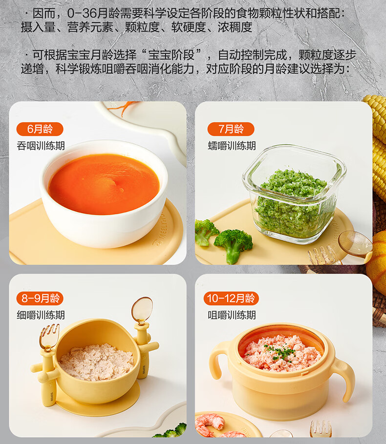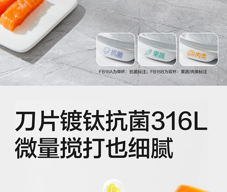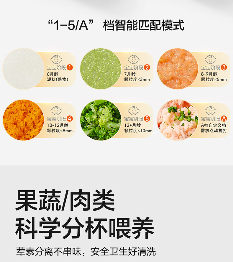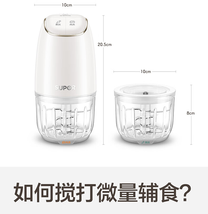 苏泊尔(SUPOR)分月龄辅食机 多功能宝宝辅食工具 婴儿料理机 8叶双杯双刀 FB16B