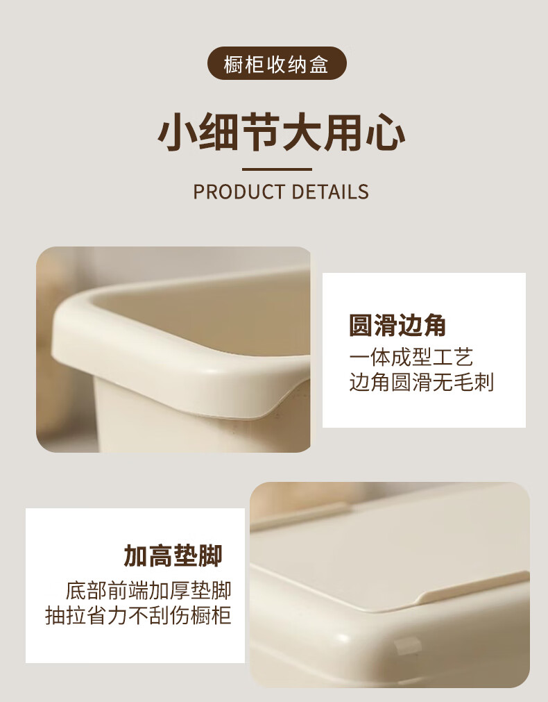 四万公里抽屉收纳盒长方形塑料盒子厨房桌上化妆品零食杂物袜子长条整理盒