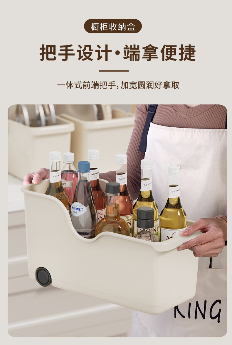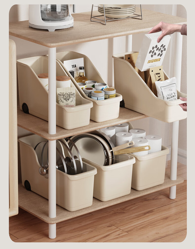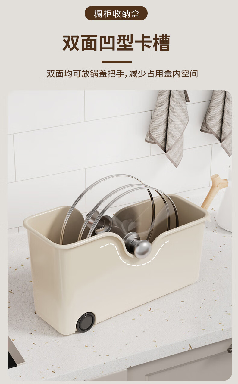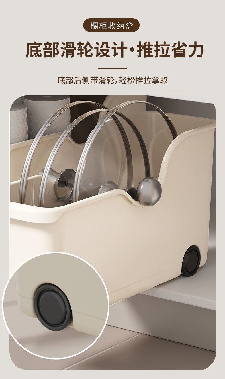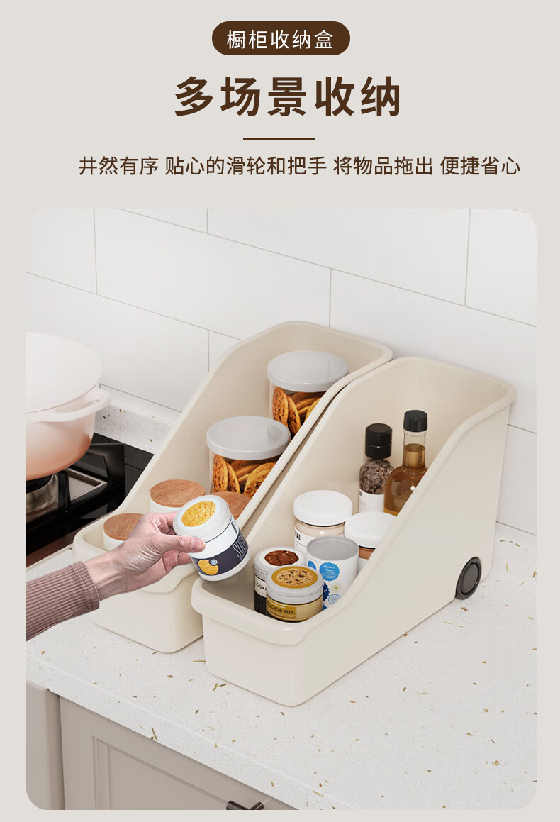 四万公里橱柜收纳盒带滑轮厨房冰箱杂物桌面收纳架层架柜子收纳盒 加宽款