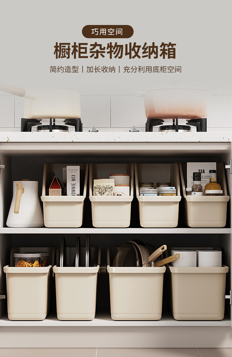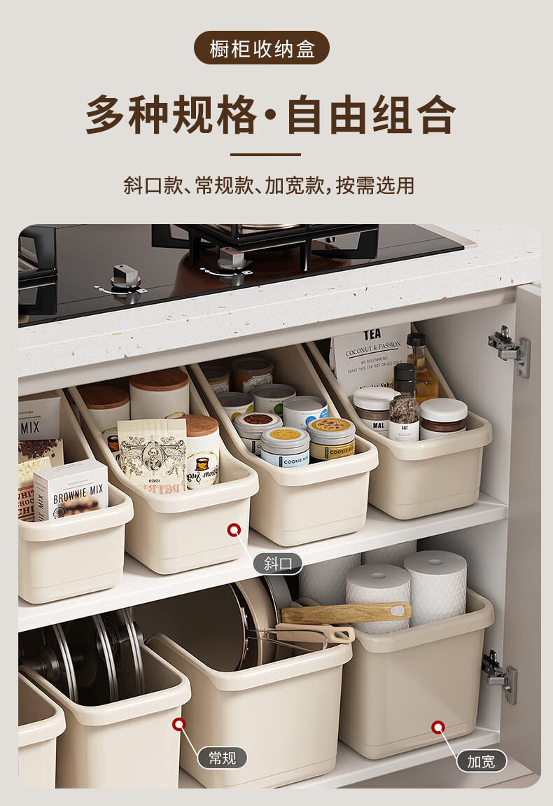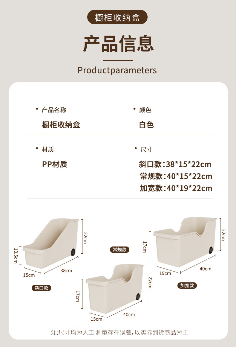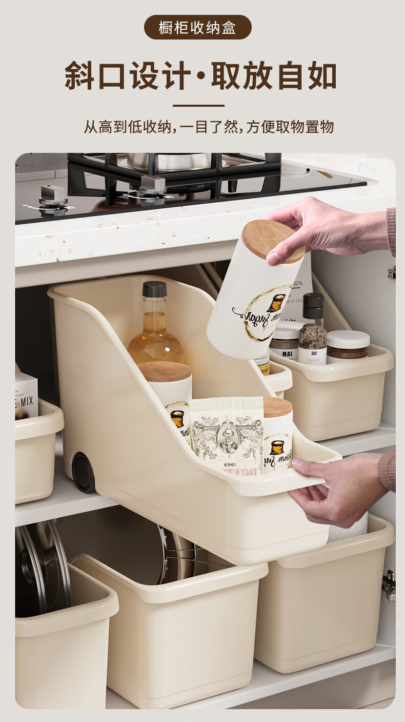四万公里橱柜收纳盒带滑轮厨房冰箱杂物桌面收纳架层架柜子收纳盒 加宽款