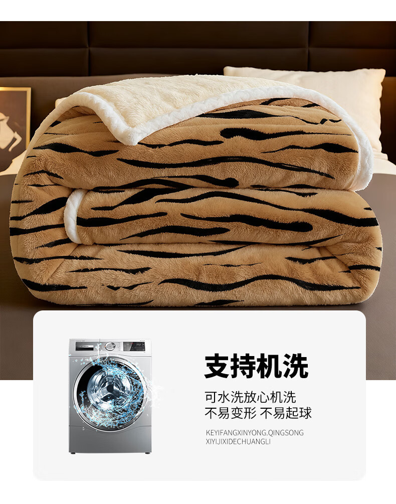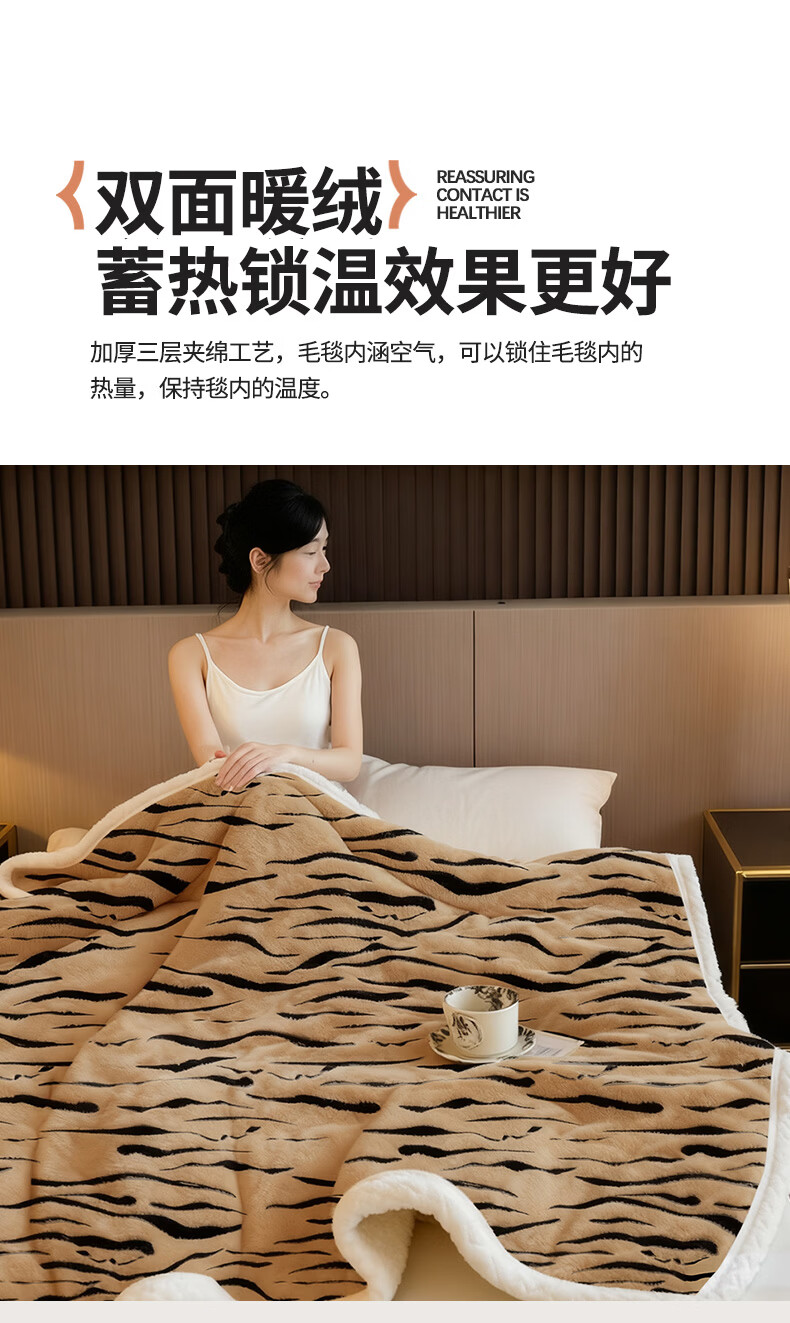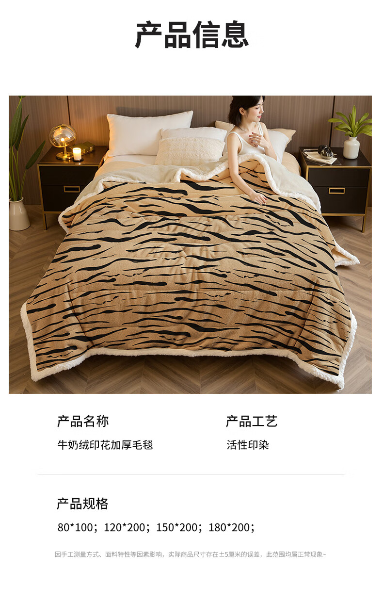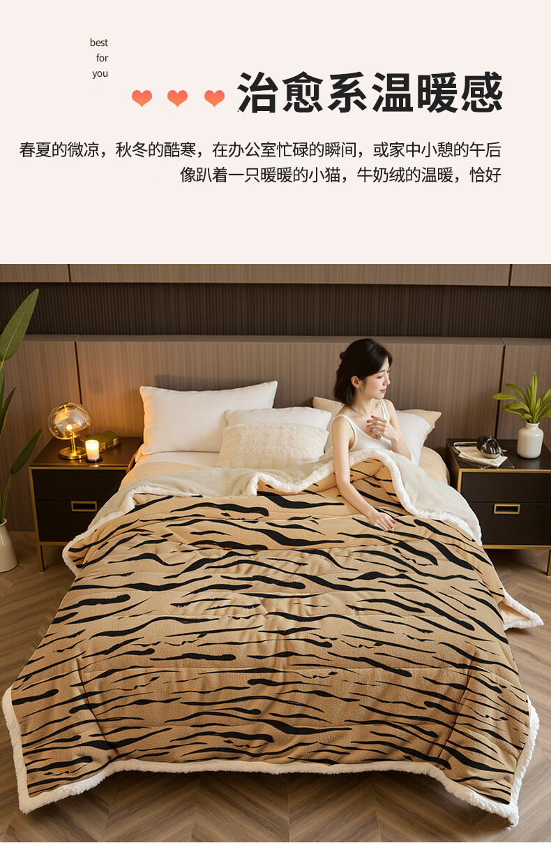 高睿冬季加厚牛奶绒午睡盖毯办公室空调毯学生宿舍被子保暖毛毯单人 斑马纹 80*100cm