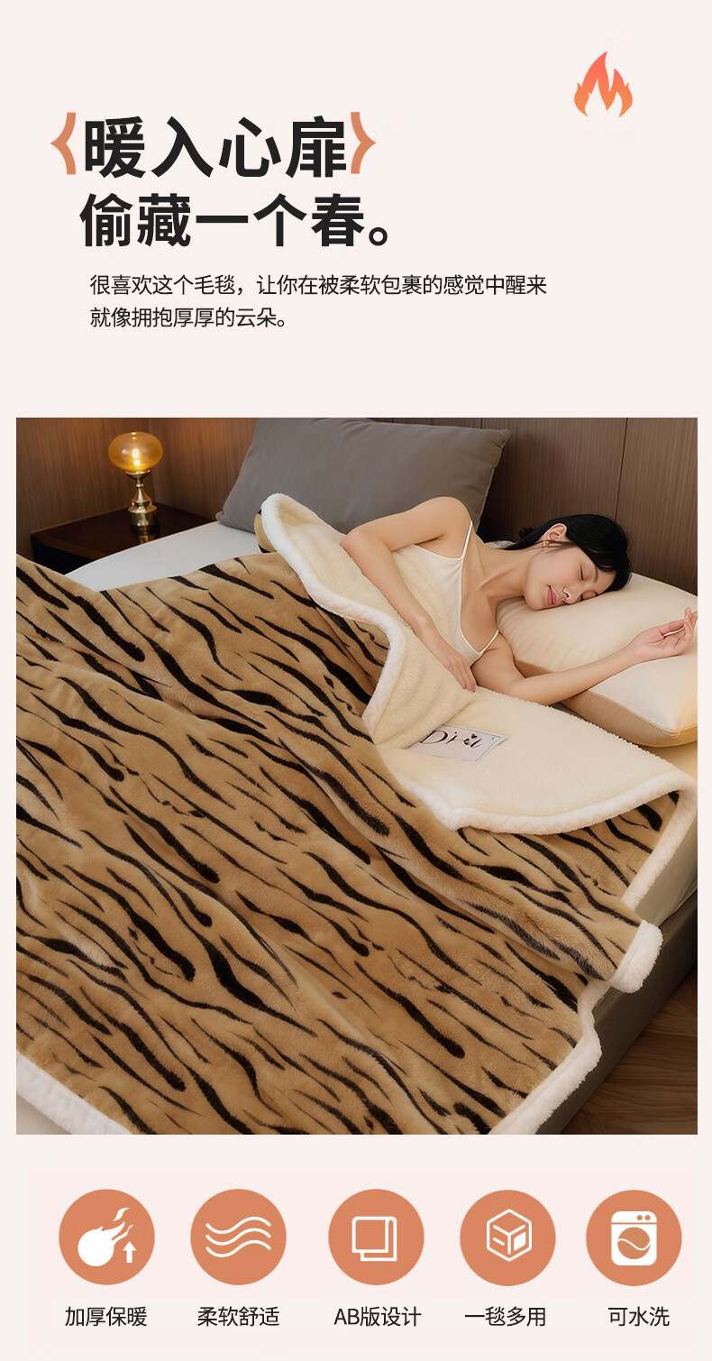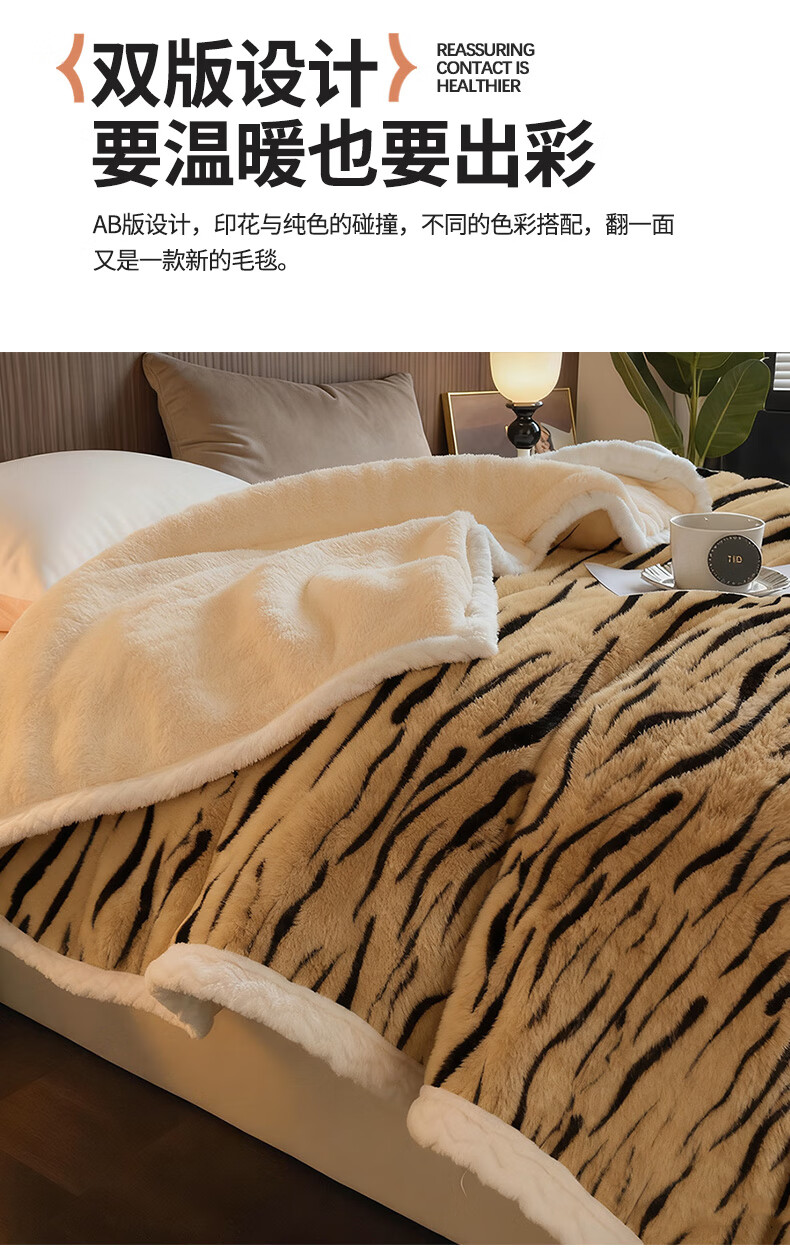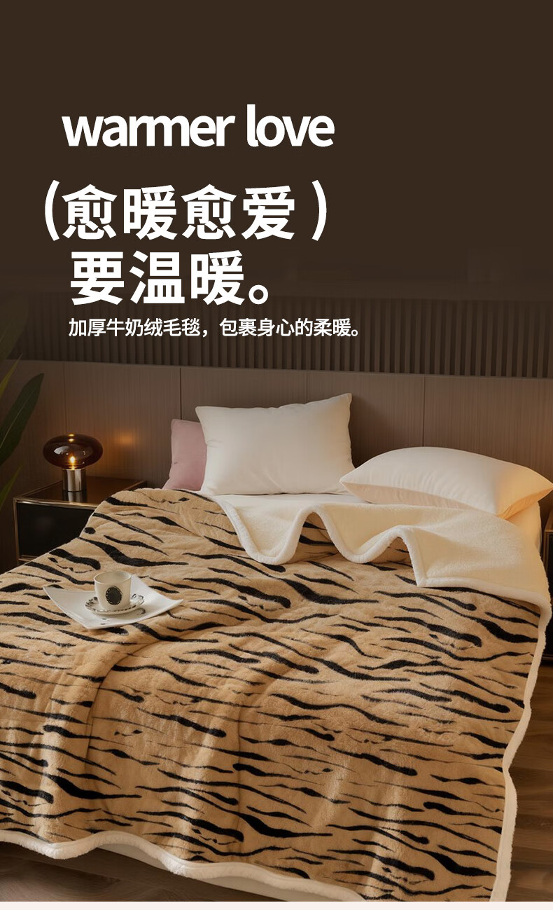 高睿冬季加厚牛奶绒午睡盖毯办公室空调毯学生宿舍被子保暖毛毯单人 斑马纹 80*100cm