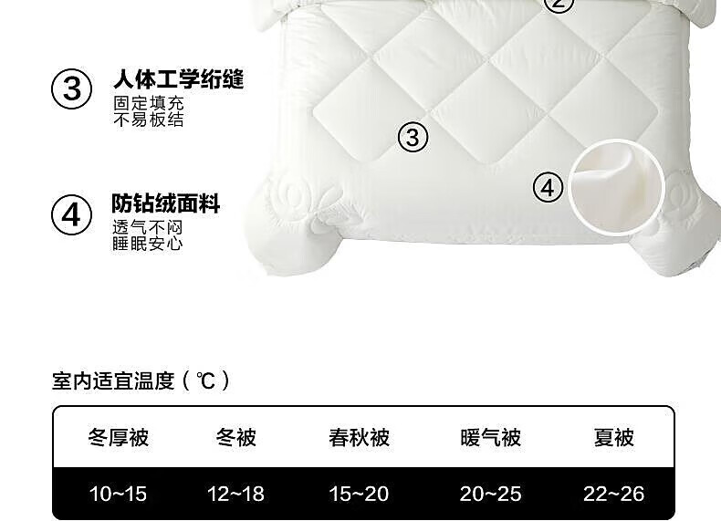 恒源祥澳洲羊毛被春秋被冬被芯加厚保暖羊毛单人被子10斤厚棉被褥 白色 150x200cm【4斤夏被】
