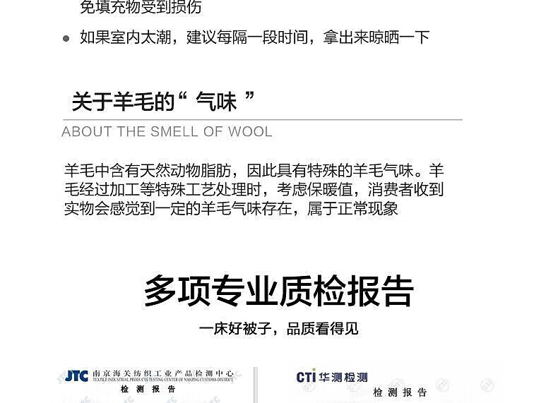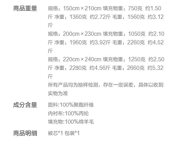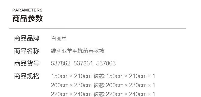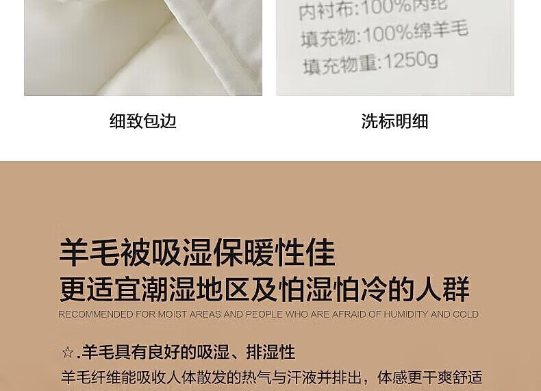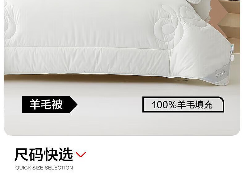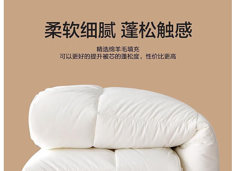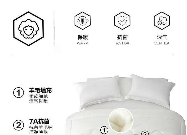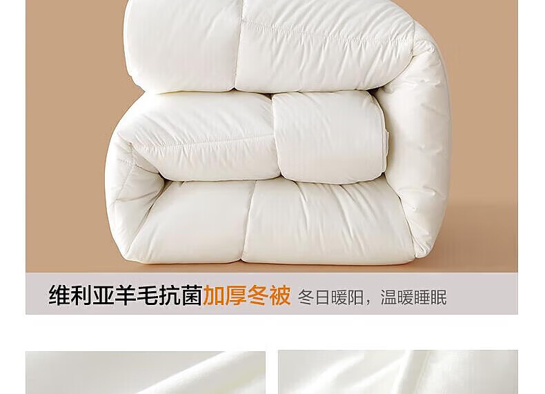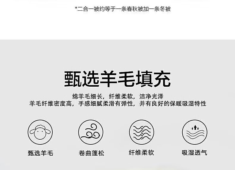 百丽丝出品被子羊毛7A抗菌防钻绒保暖透气春秋被冬季被子被芯宿舍家用 羊毛抗菌春秋被 200cm×230cm