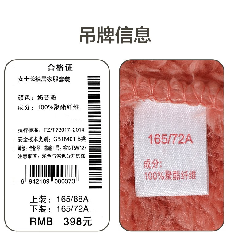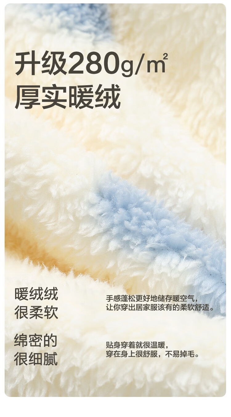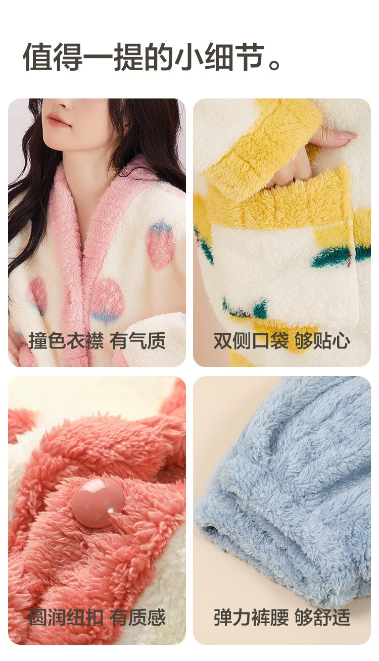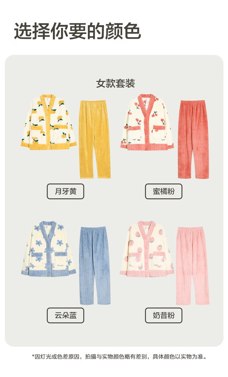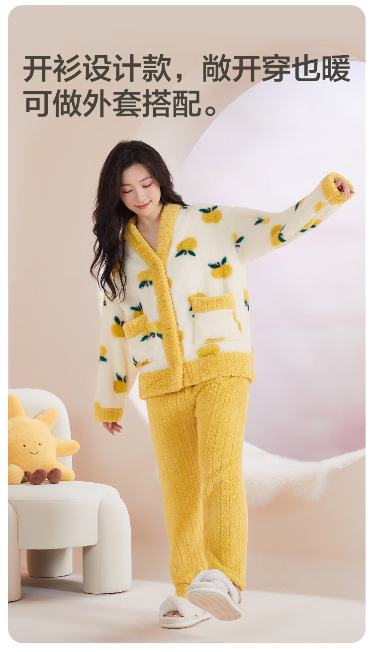 红豆居家(Hodohome)【加绒加厚】秋冬保暖印花女士开衫长袖睡衣套装甜美居家服可外穿 蜜橘粉 M 女士165