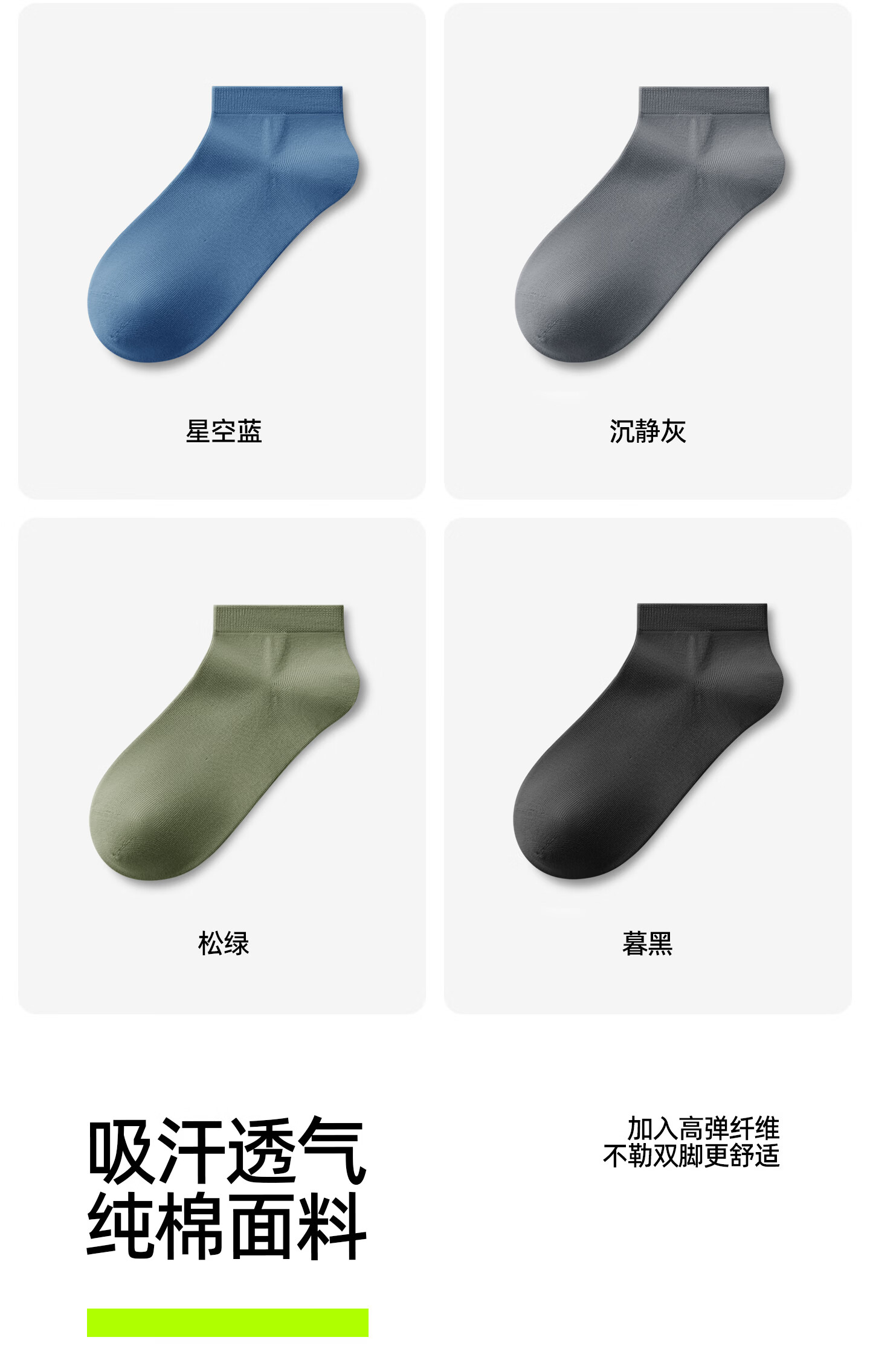 有棵树男士袜子男夏季纯棉7A抗菌消臭吸汗透气运动基础百搭商务休闲短袜
