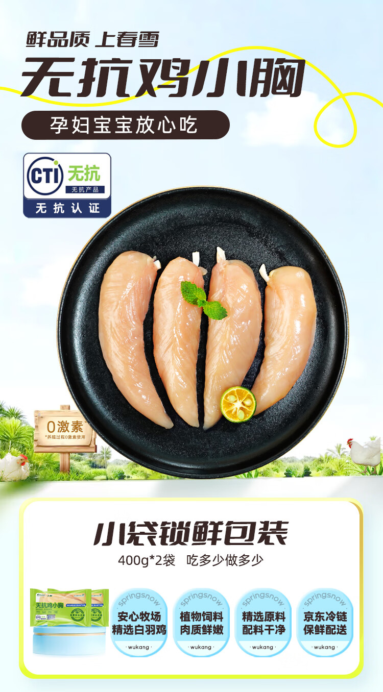 上鲜无抗鸡小胸 净重1.6斤 更安心鸡小胸 生鲜低脂鸡胸肉炸鸡烧烤食材