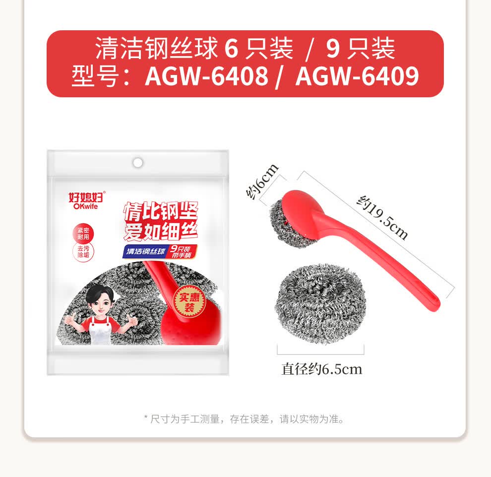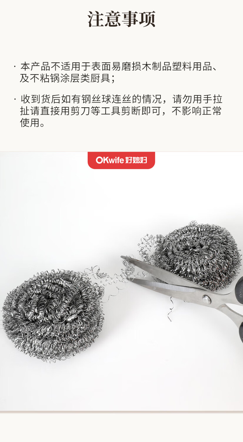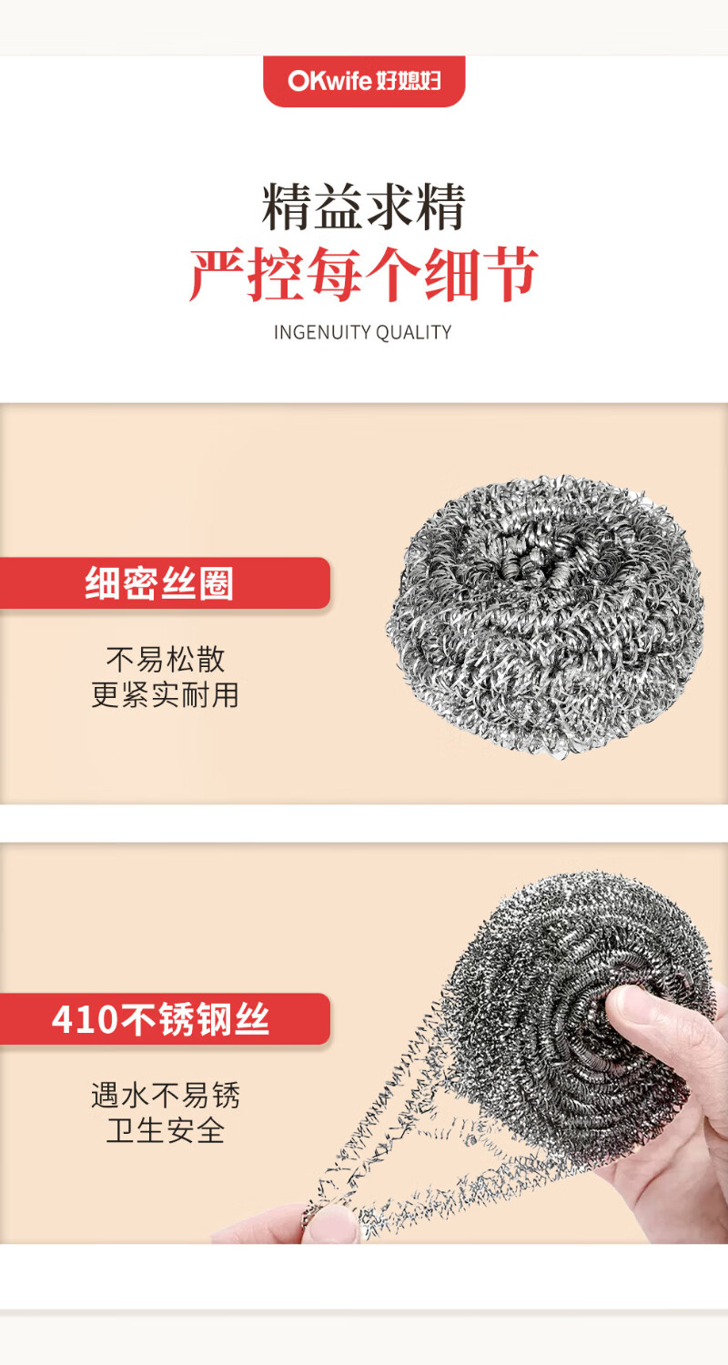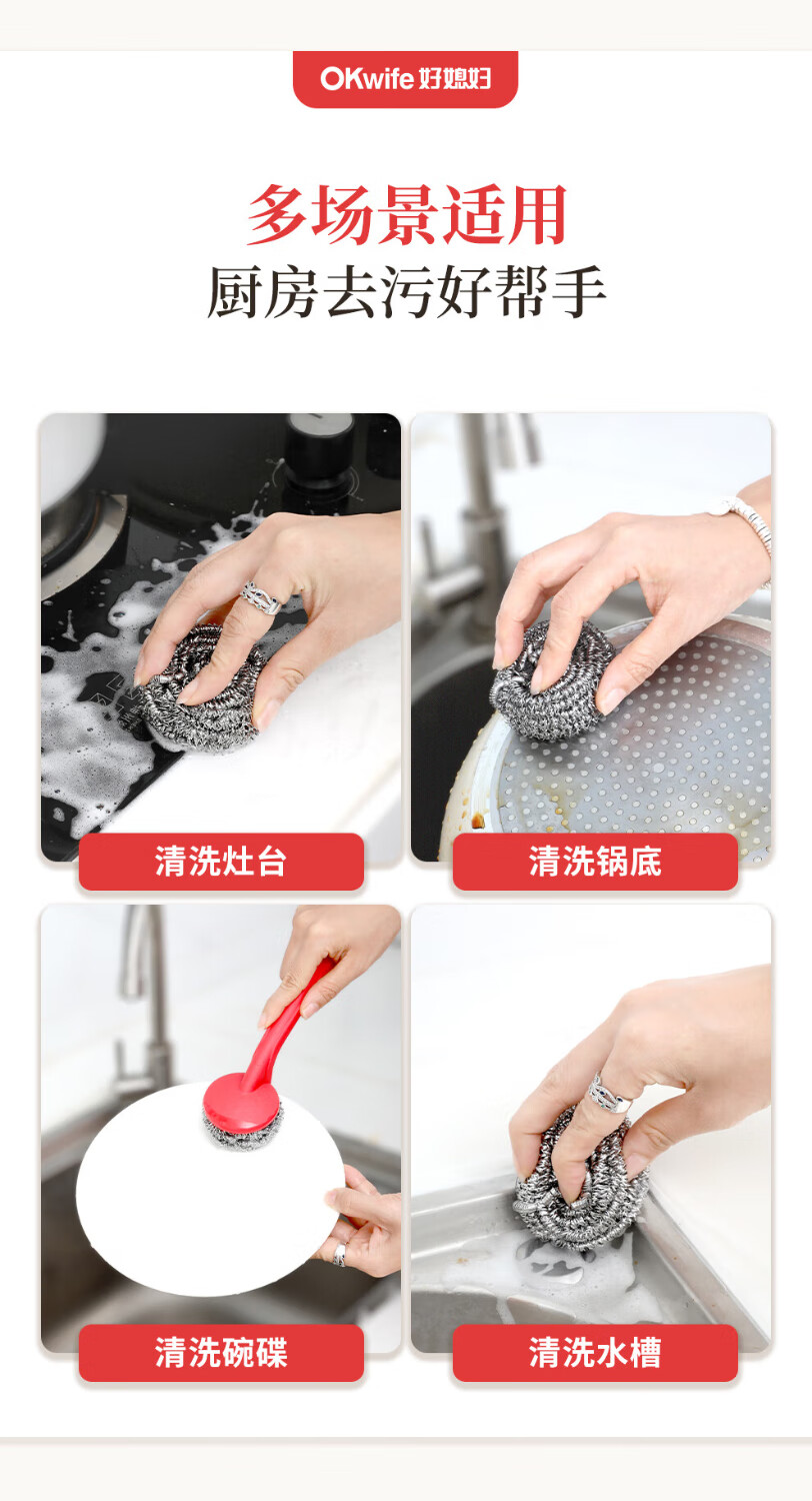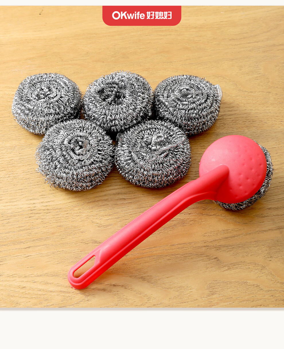 好媳妇410不锈钢钢丝球带柄清洁球去油污去渍家用厨房多功能刷碗洗锅刷 410不锈钢带手柄钢丝球【9个装】